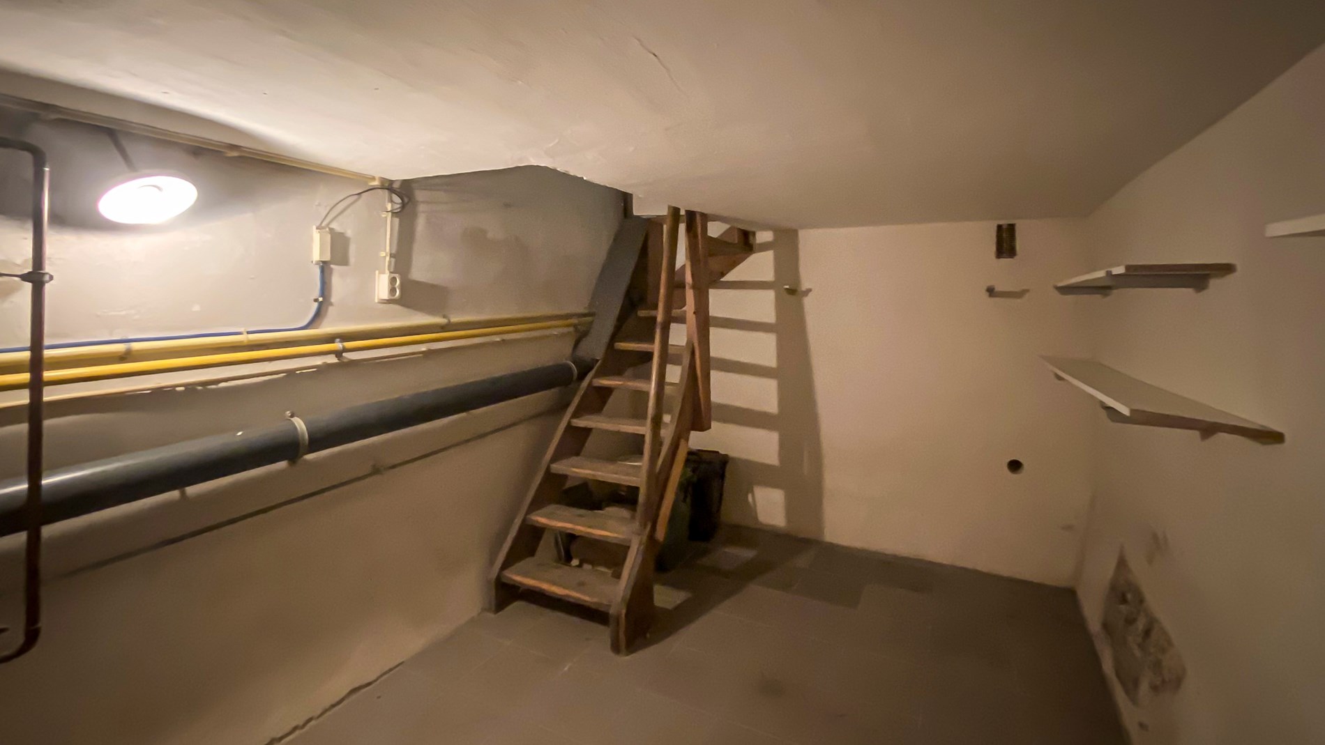 Kelder met opbergmogelijkheden.