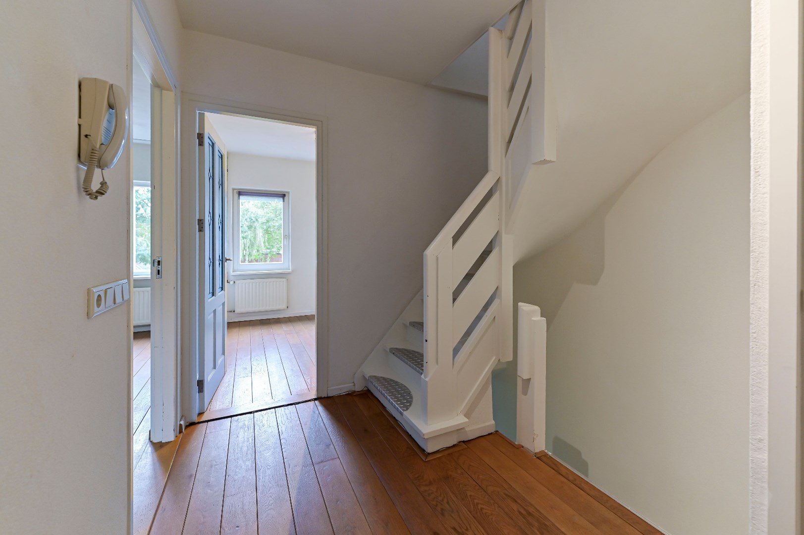 Begane grond: ruime entree met mooie tegelvloer en mogelijkheid tot het plaatsen van de fiets(en).
