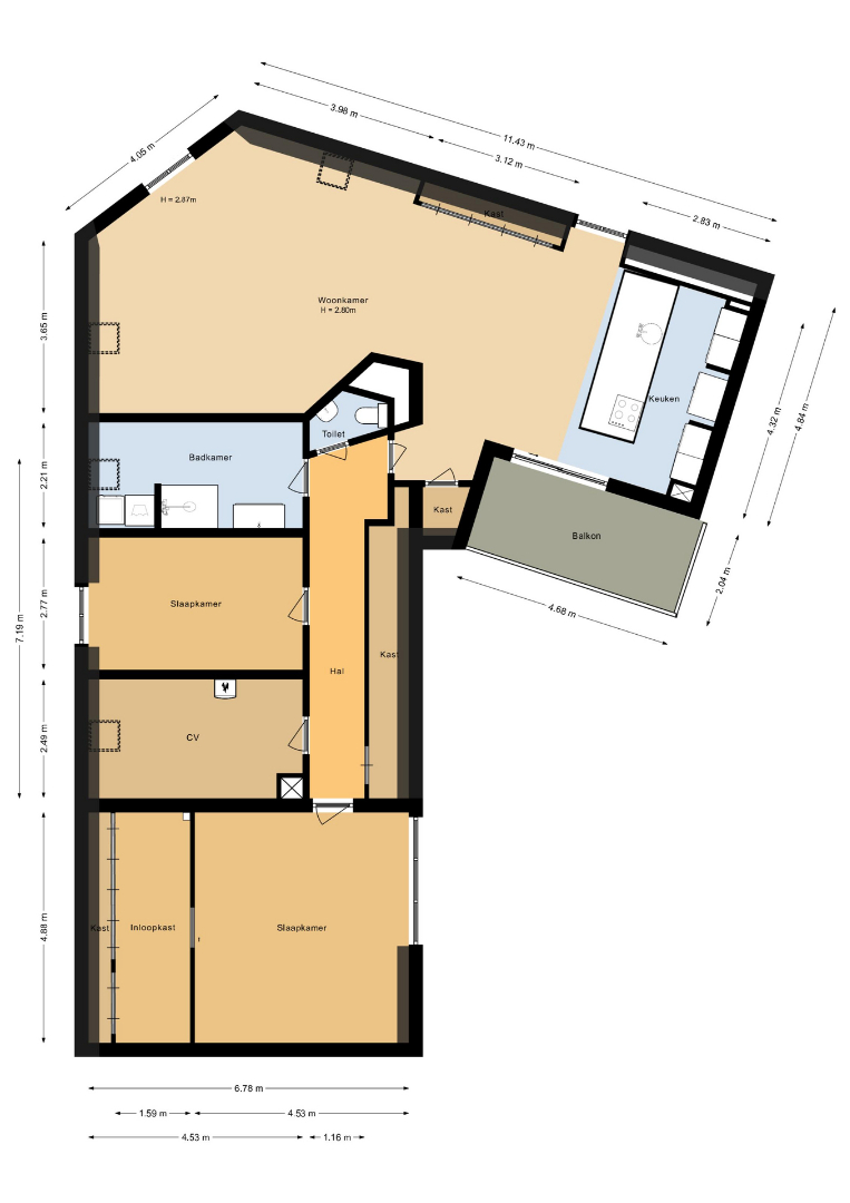 Ruime entree met eiken planken vloer. Zwevend toilet met fonteintje. De woonkamer beschikt over een eiken plankenvloer, hoge plafonds en biedt zicht op het Mgr. Nolensplein. De open leefkeuken beschikt over een kookeiland, spoelbak en apparatuur zoals: Amerikaanse koelkast met ijsmachine en diepvries, 4-pits inductie kookplaat (2022), magnetron, oven, keukenboiler en vaatwasser (2020). Twee slaapkamers beschikken beide over een laminaatvloer. Een van de twee slaapkamers beschikt over een nieuwe dakkapel (2022) en ruime inloopkast. Technische ruimte met laminaatvloer, WTW-installatie en 120 liter boiler (deze technische ruimte kan eventueel ook als 3de slaapkamer gebruikt worden) De badkamer (2004) is voorzien van een douche, wastafel, designradiator en een witgoed aansluiting.