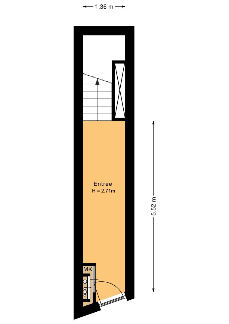 Entree met keramische tegelvloer, garderobe en meterkast.