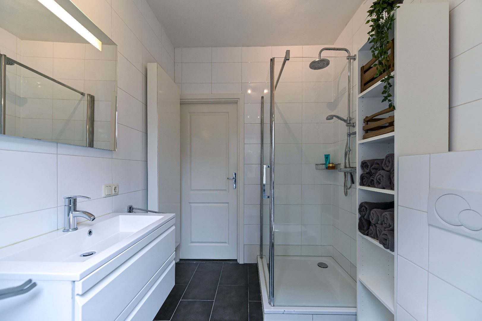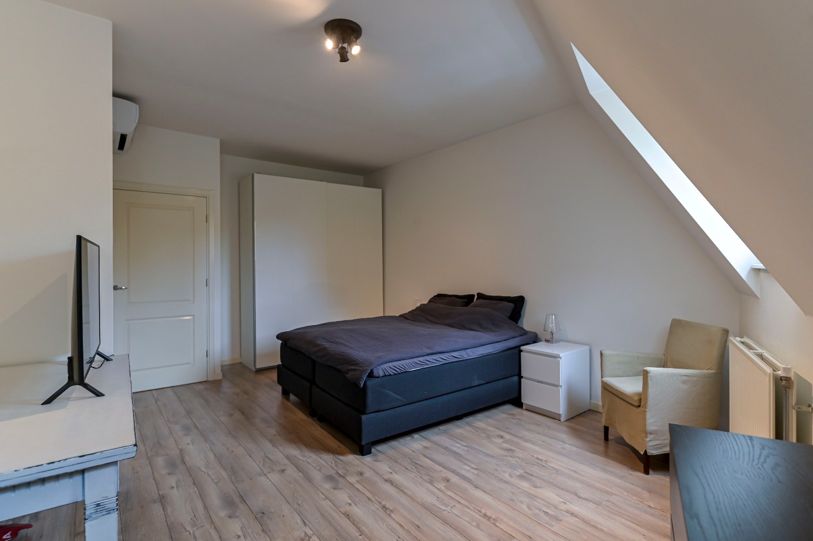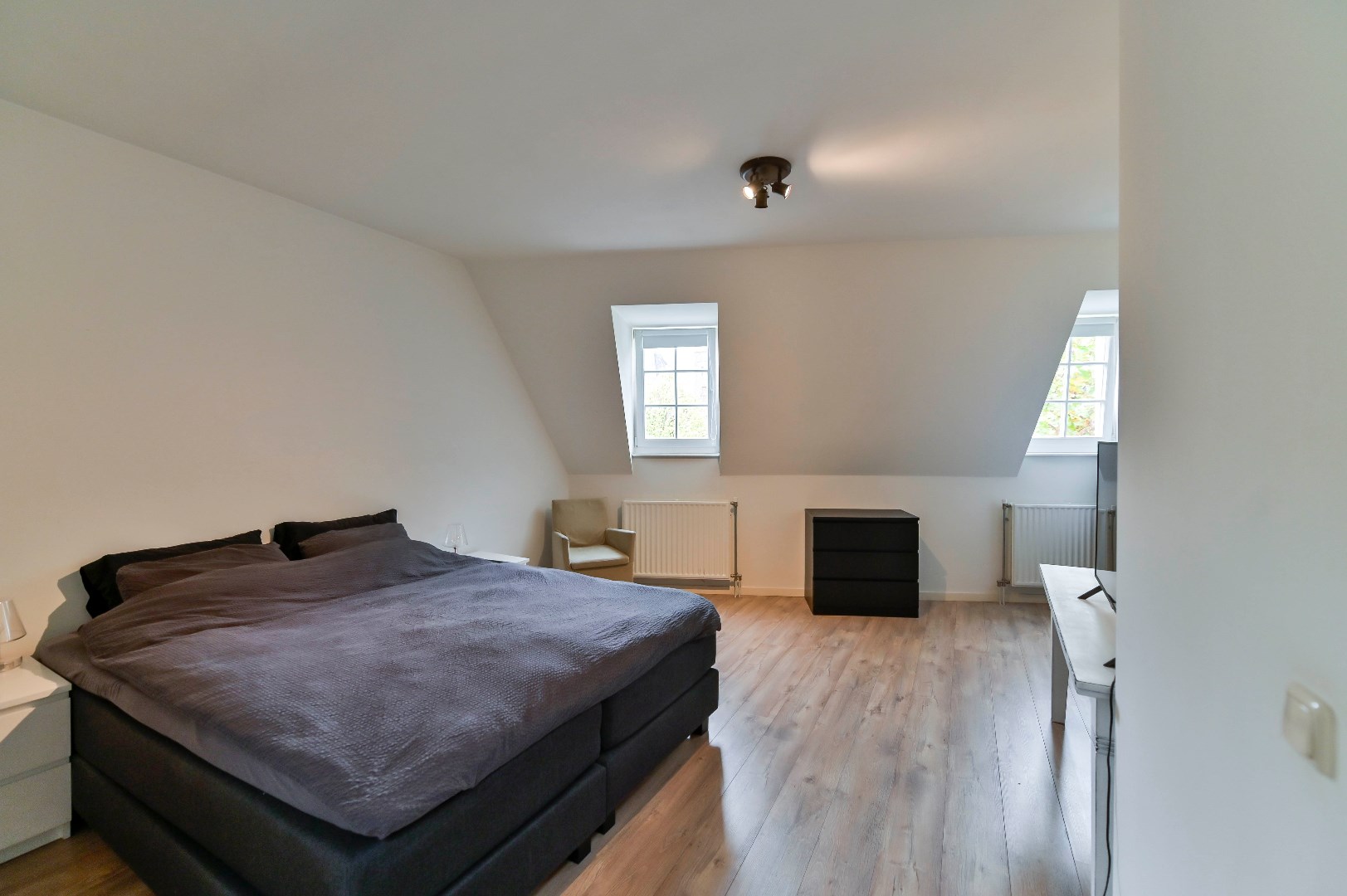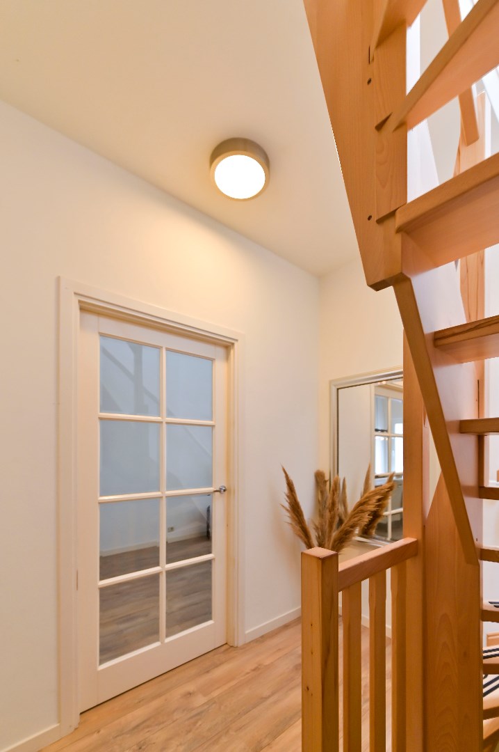 Overloop met laminaatvloer. 2 slaapkamers welke beide zijn voorzien van laminaat vloer en 1 slaapkamer met airco. Moderne badkamer (2010) beschikt over een douche, wastafel met meubel, 2de zwevend toilet en designradiator.
