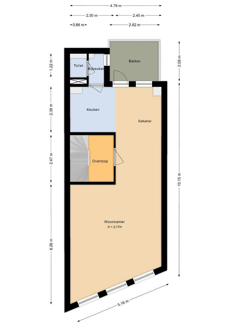 De ondergelegen winkelruimte wordt optioneel te koop aangeboden voor een vraagprijs van €135.000,- k.k.