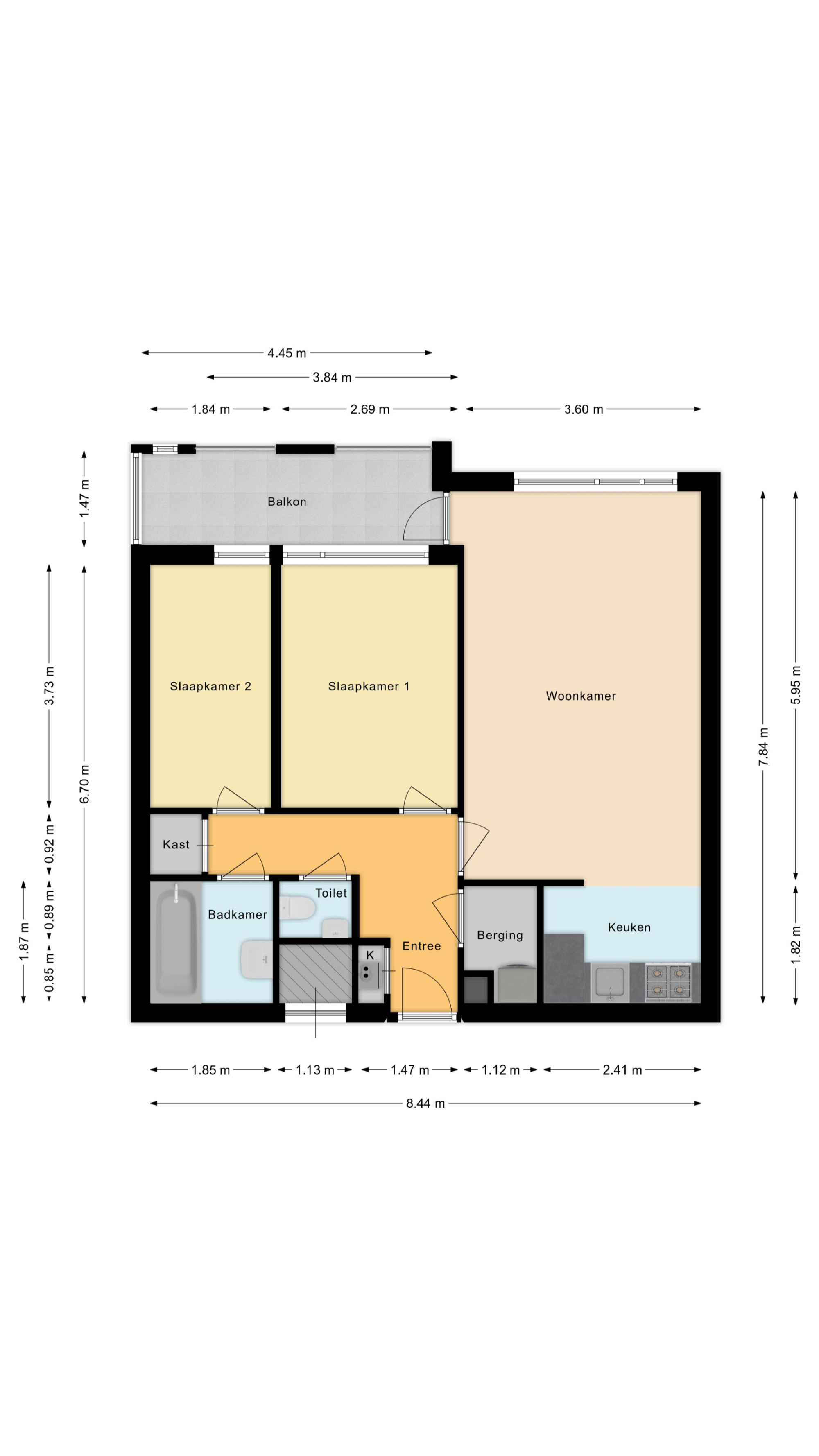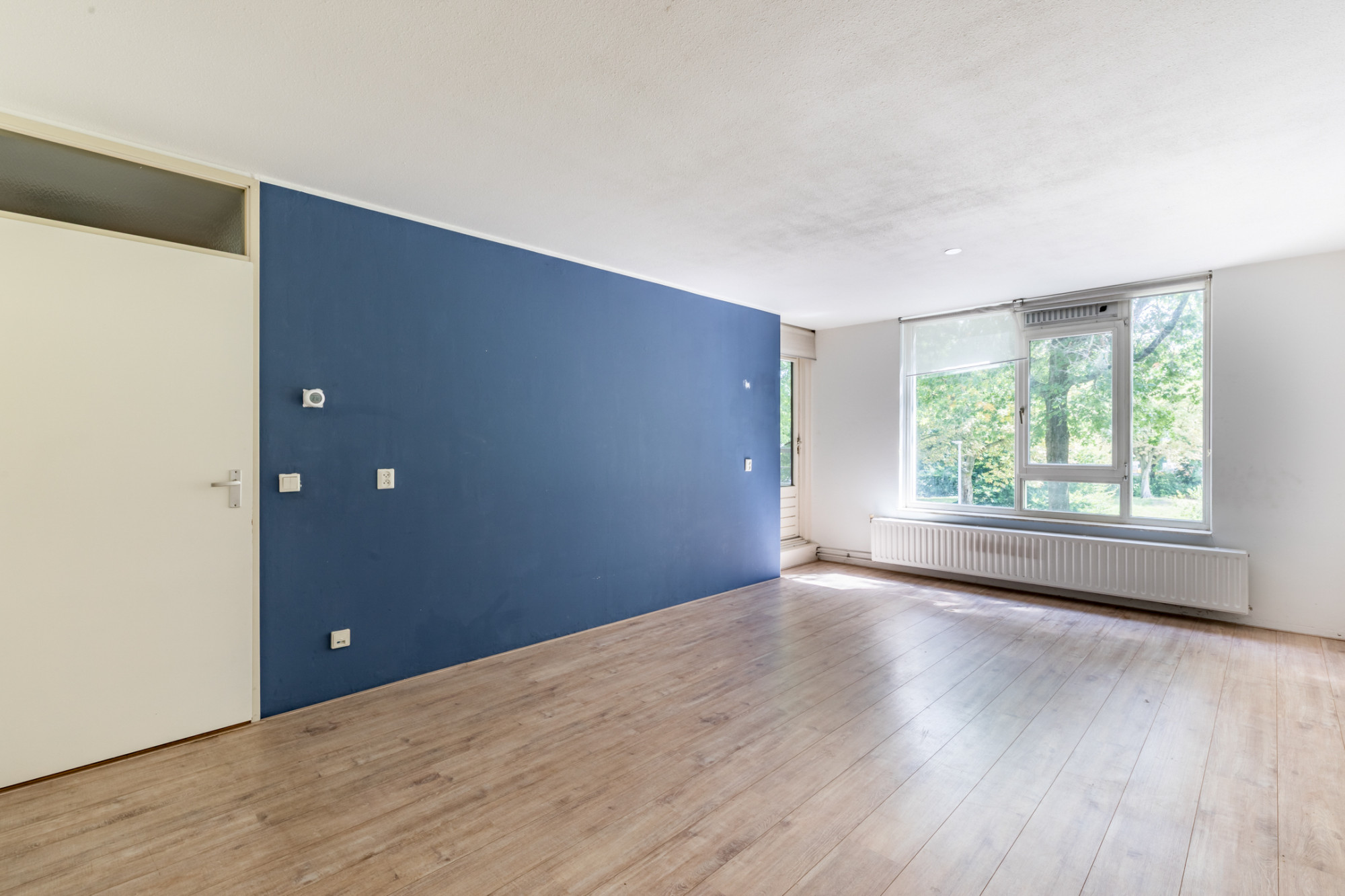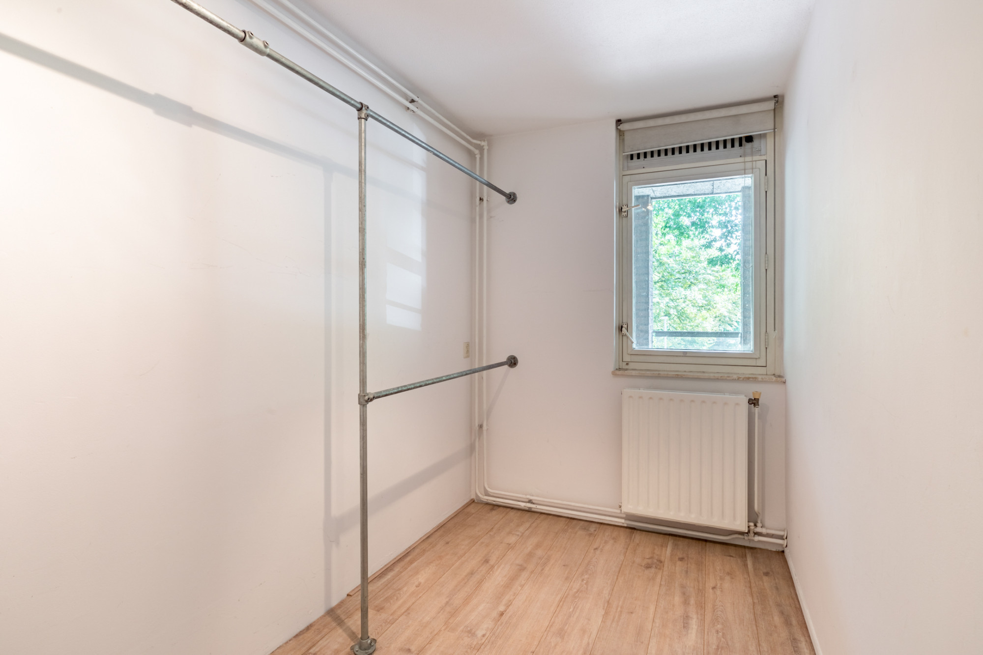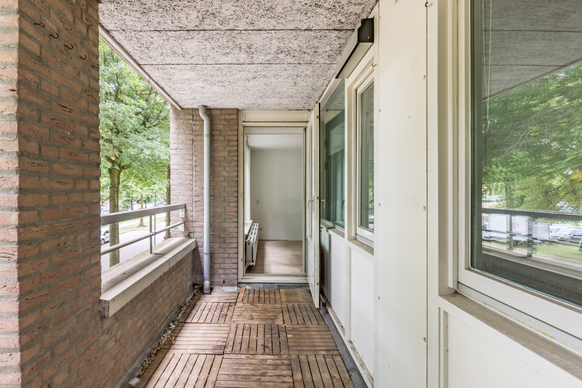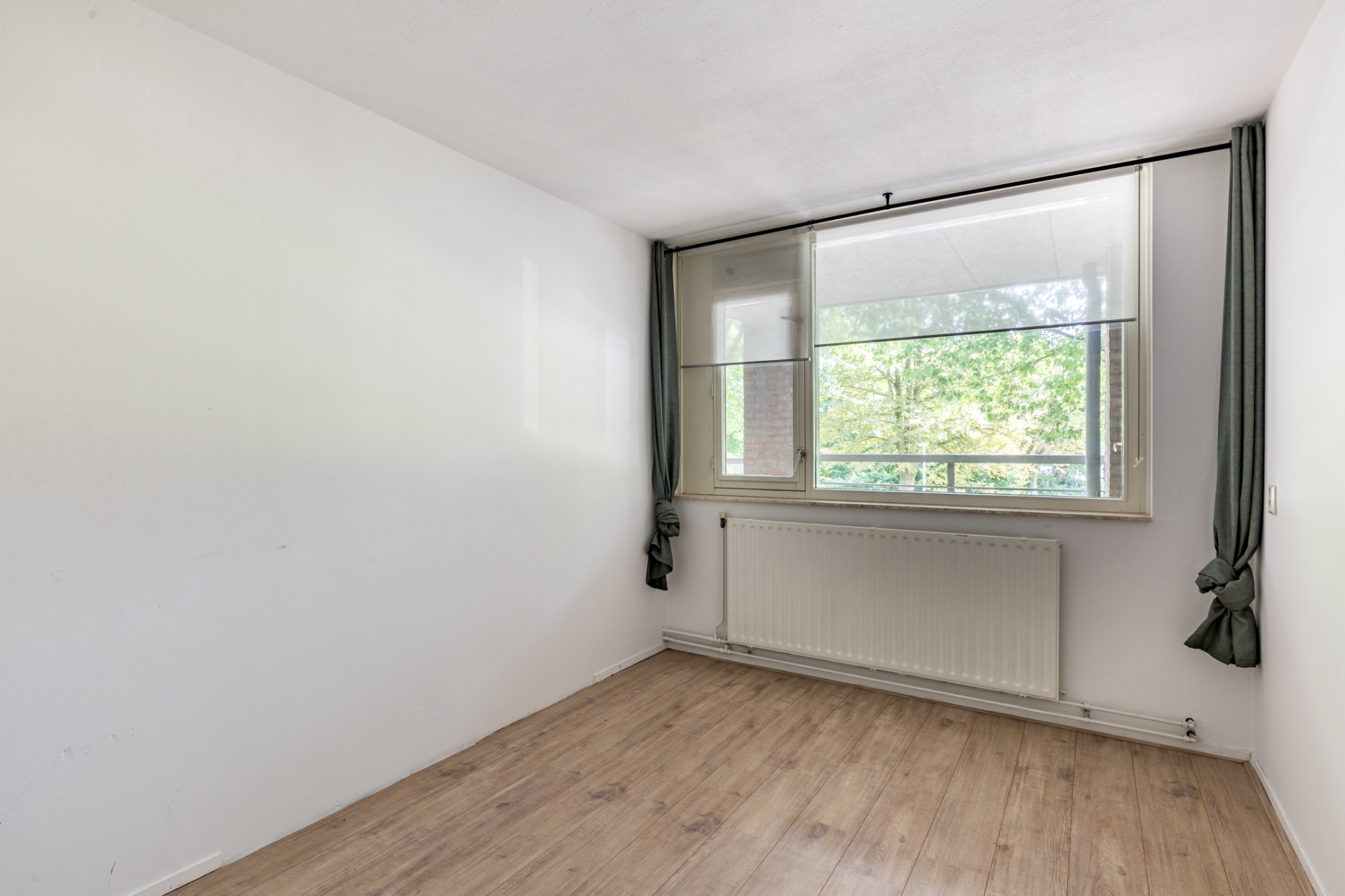 Aan de achterzijde van het appartement bevinden zich twee volwaardige slaapkamers. Beide kamers zijn rustig gelegen en hebben een prettig uitzicht, ideaal als slaap-, logeer- of werkkamer. De woonkamer is verrassend ruim en dankzij de grote raampartijen is er veel natuurlijke lichtinval. Vanuit de woonkamer is er directe toegang tot het balkon, dat op het oosten ligt. Dit is een heerlijke plek om in de middag of avond van de zon te genieten, met voldoende ruimte voor een zitje.