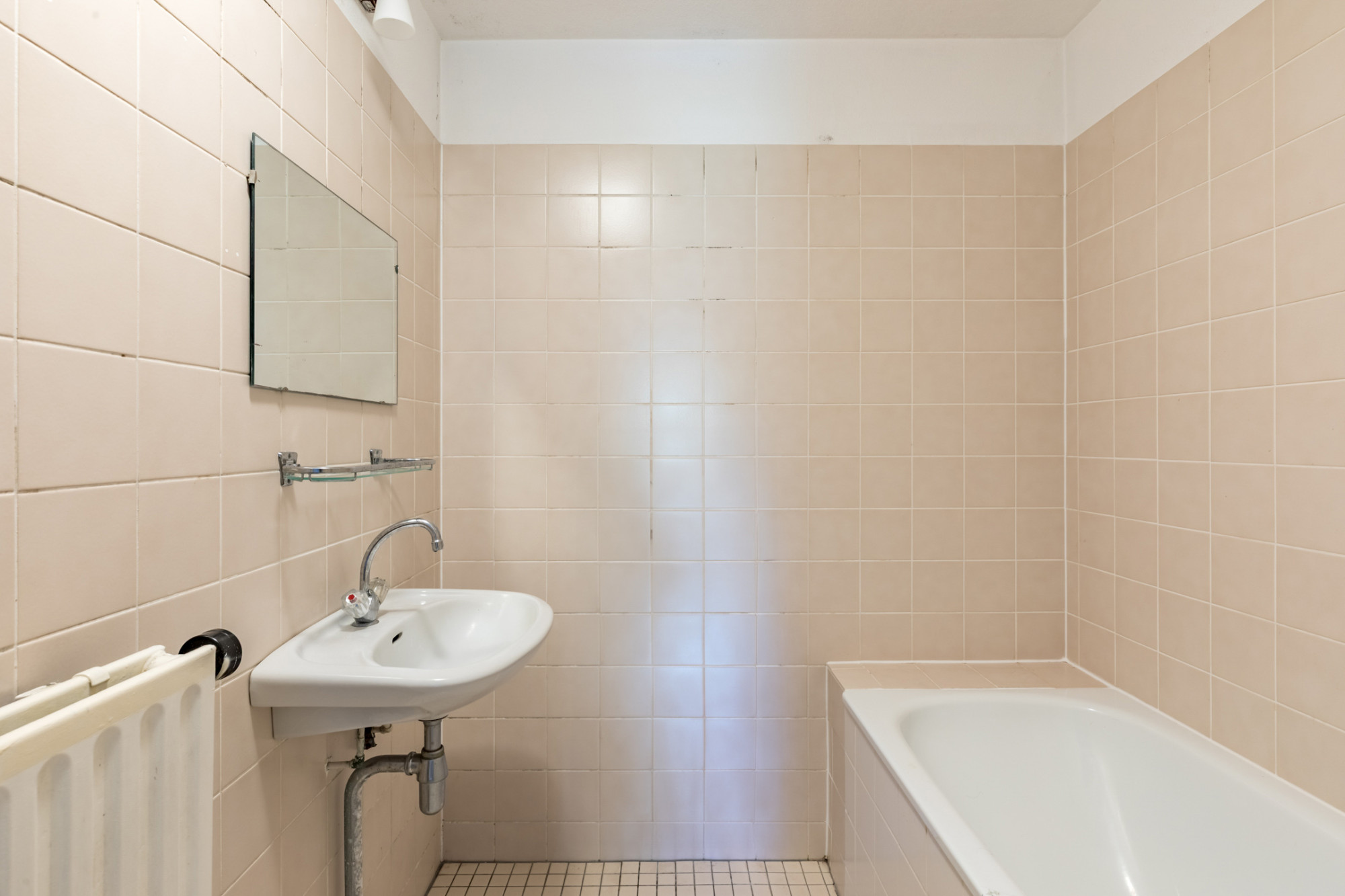 Via de centrale entree met intercom en lift kom je bij de woning, waar je binnenstapt in een ruime hal. Vanuit hier zijn vrijwel alle vertrekken bereikbaar, waaronder een separate toiletruimte en een handige inpandige berging voor de wasmachine of extra voorraad. De volledig betegelde badkamer is voorzien van een ligbad met douchecombinatie en een wastafel. Naastgelegen ruimte beschikt over een extra kast met bergruimte.