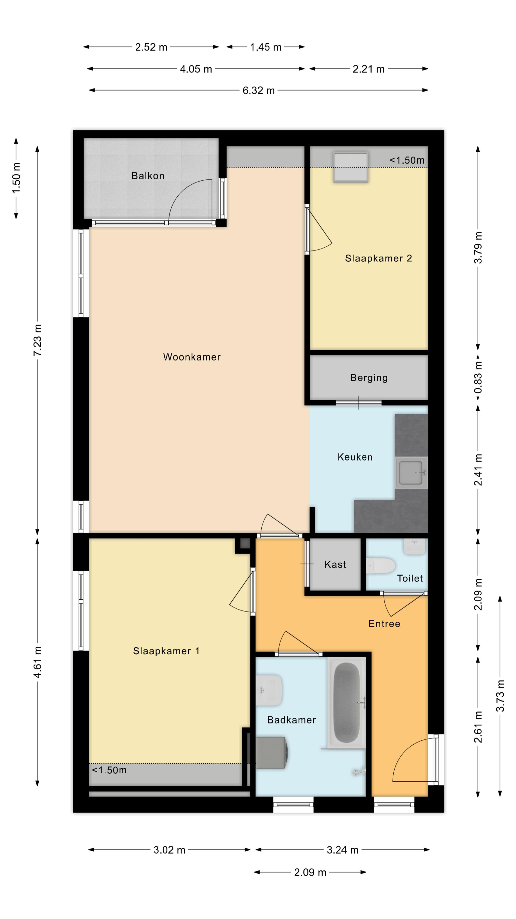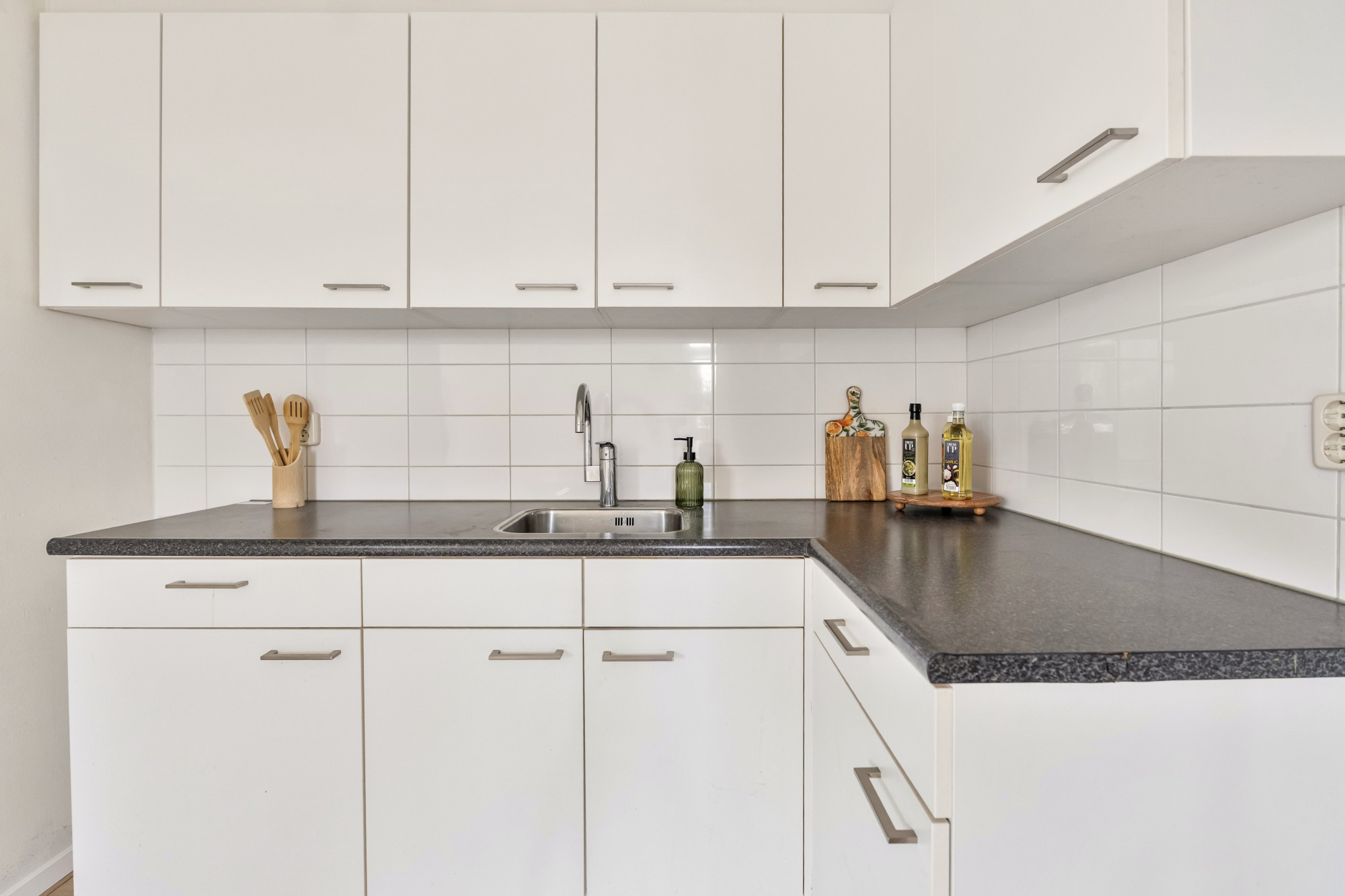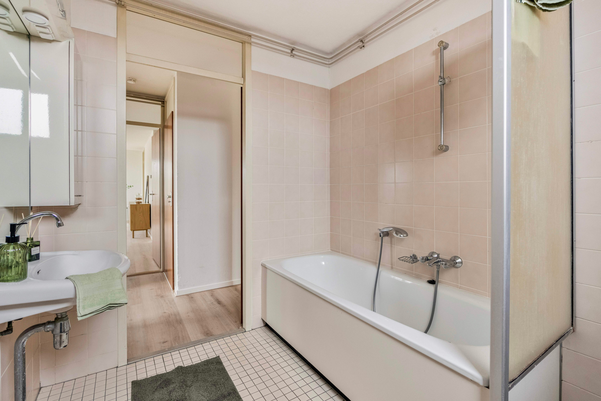Entree met hal, garderoberuimte en separaat toilet met fonteintje. De badkamer is voorzien van ligbad, douche, wastafel en witgoedaansluiting. Lichte woonkamer met open keuken (samen ca. 30 m²) aan de straatzijde, met ruimte voor een zit- en eethoek. Vanuit de woonkamer is er toegang tot het balkon (ca. 4 m²) op het oosten. Twee slaapkamers, waarvan de hoofdslaapkamer aan de rustige achterzijde ligt.