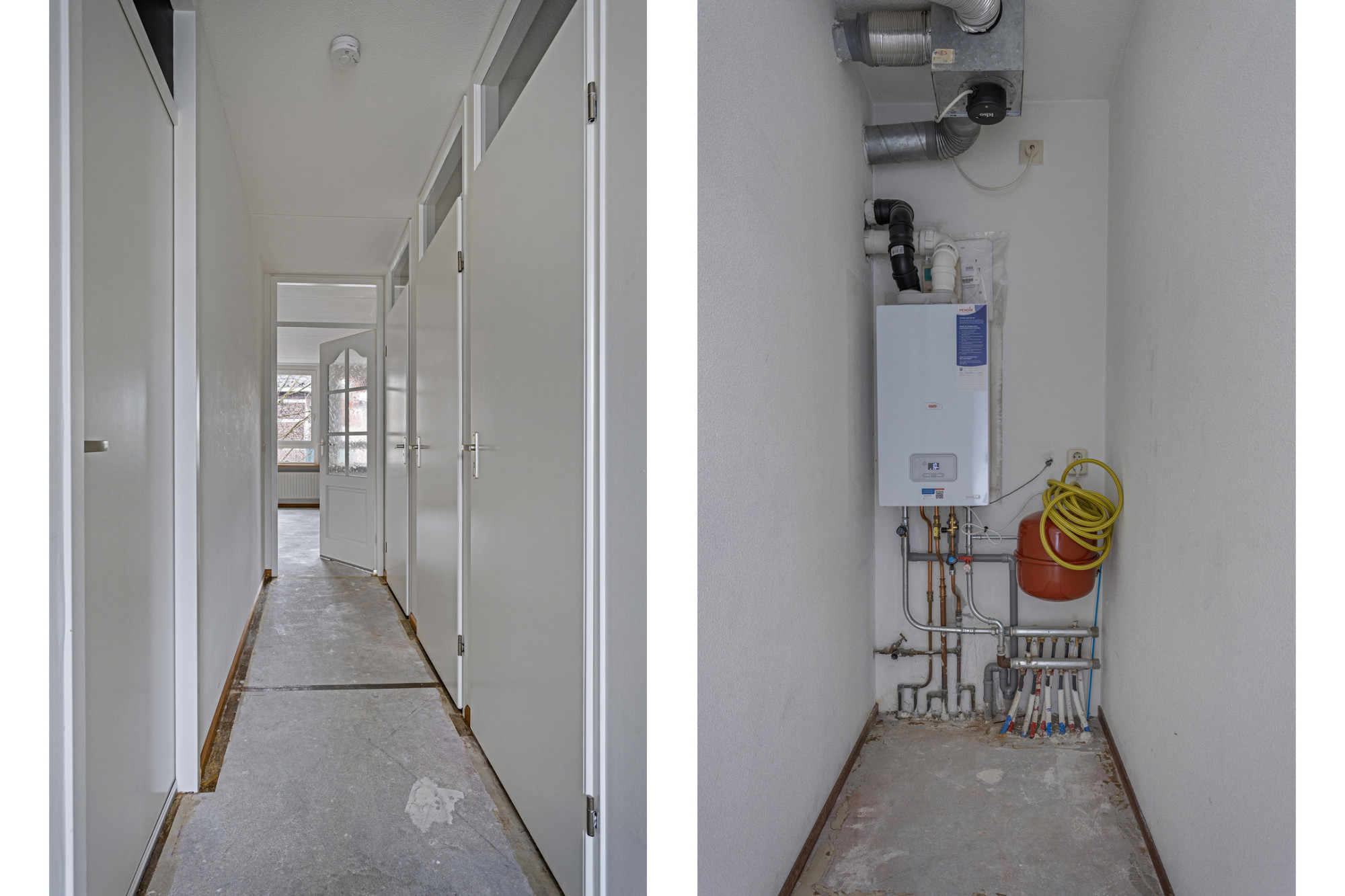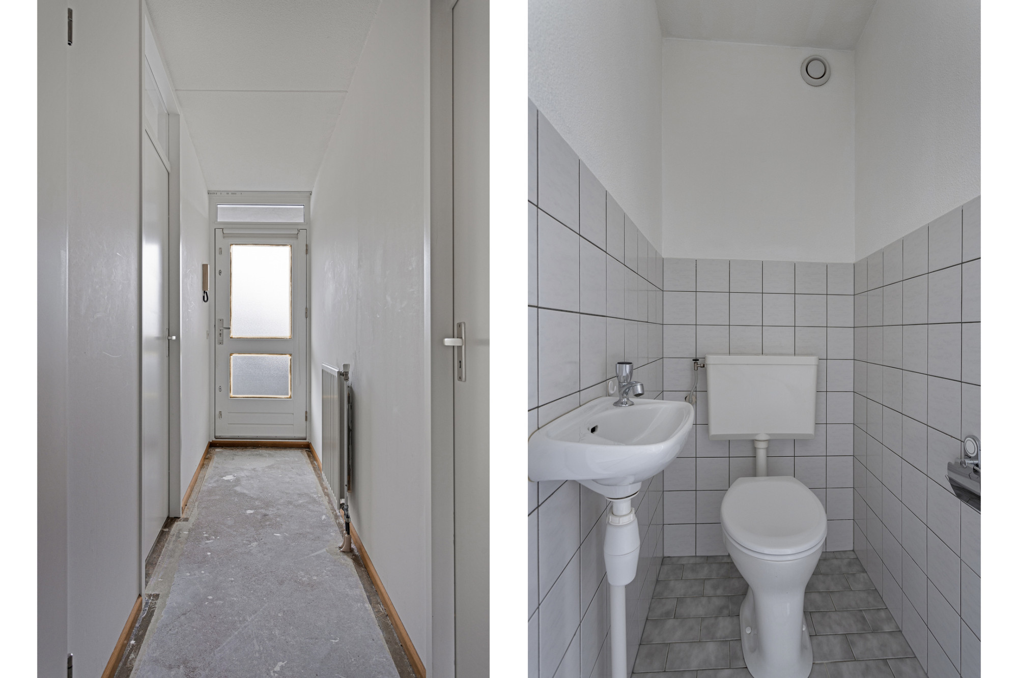 Op de eerste verdieping van het gebouw ligt dit appartement van ca. 65 m² met een hal naar 2 slaapkamers, cv-ruimte, toilet, badkamer en toegang tot de woonkamer.