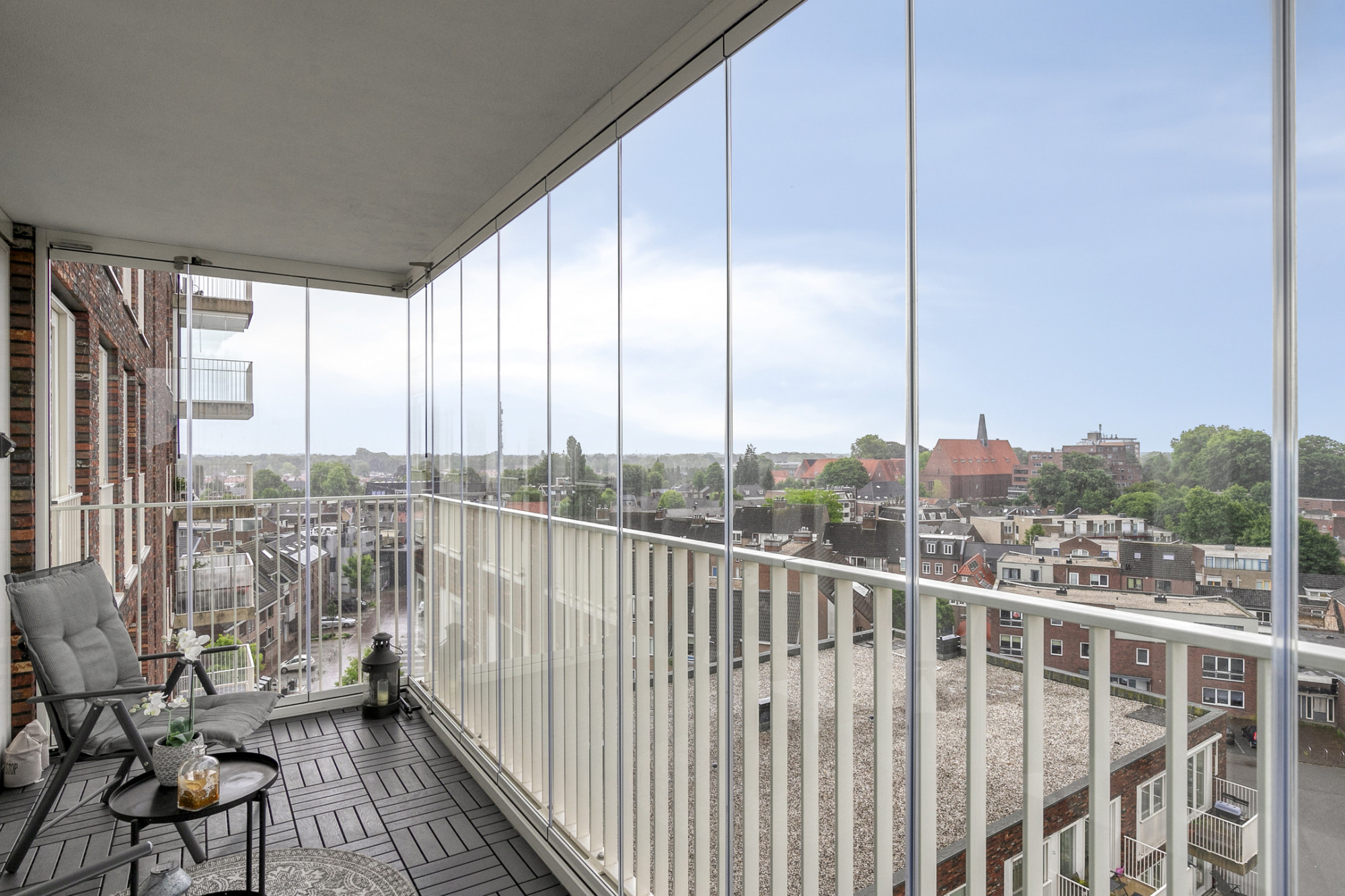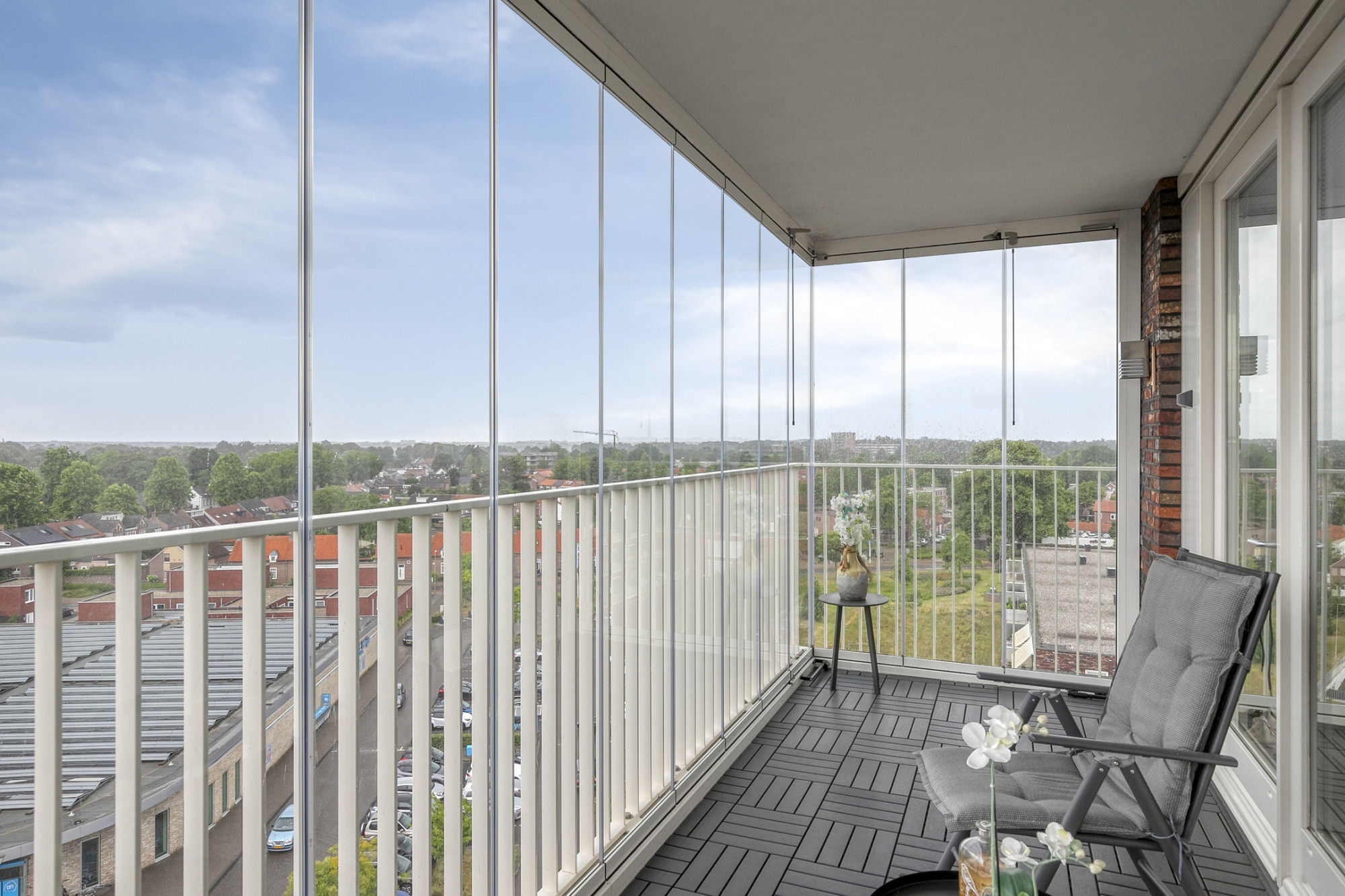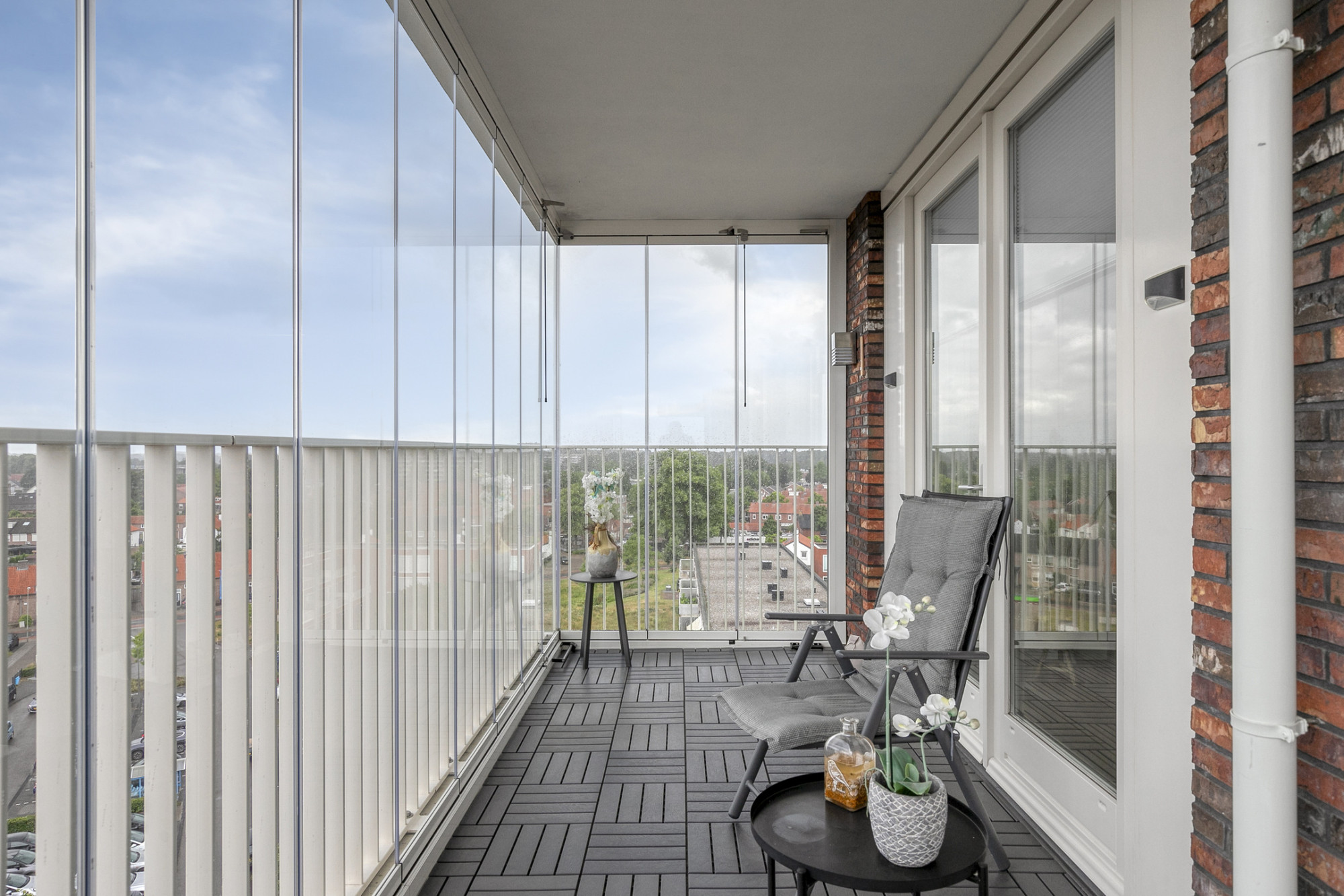 Het balkon van ca. 11 m² is gelegen op het zuidwesten en volledig afsluitbaar met glazen panelen. Hierdoor kunt u hier al vroeg in het jaar heerlijk zitten en tot laat in het seizoen genieten van het weidse uitzicht over Venray en de groene omgeving.