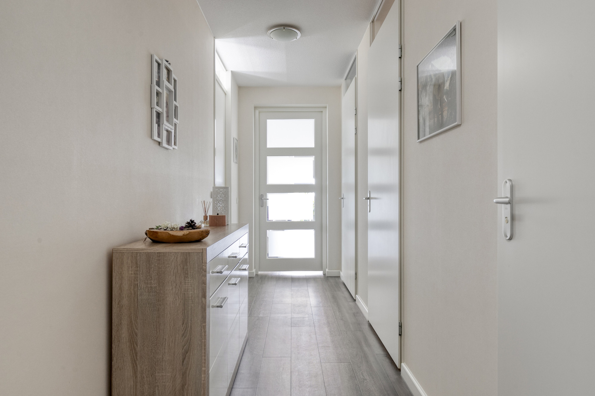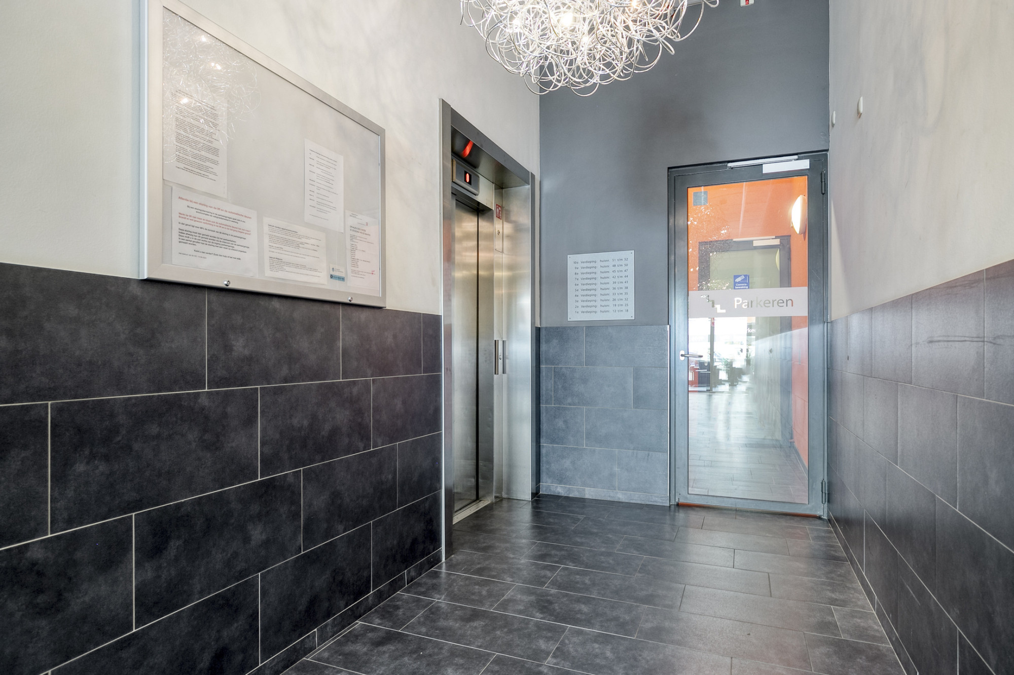 Het complex kent een ruime, statige entree, ingericht met een zitje voor gasten. Hier bevinden zich ook de brievenbussen en een automatische draaideur. Een dubbele trappartij en een lift brengen u naar de verdiepingen. De woontoren telt op elke etage slechts drie appartementen, waardoor u veel privacy geniet. De overloop is ruim van opzet en overal afgewerkt in een moderne, neutrale stijl. In het souterrain hebben de bewoners de beschikking over een afgesloten parkeergarage. U heeft hier een eigen parkeerplaats ter beschikking. Ook bevinden zich hier de afsluitbare bergingen.