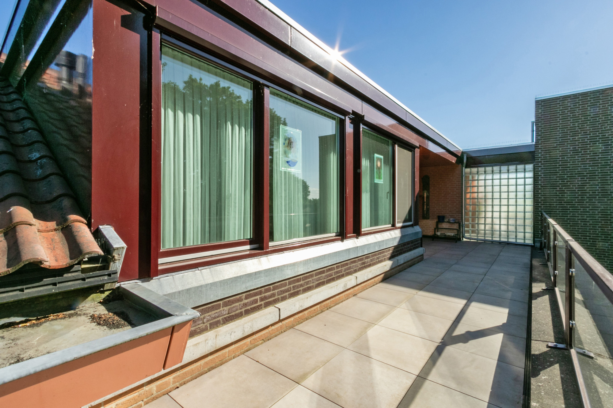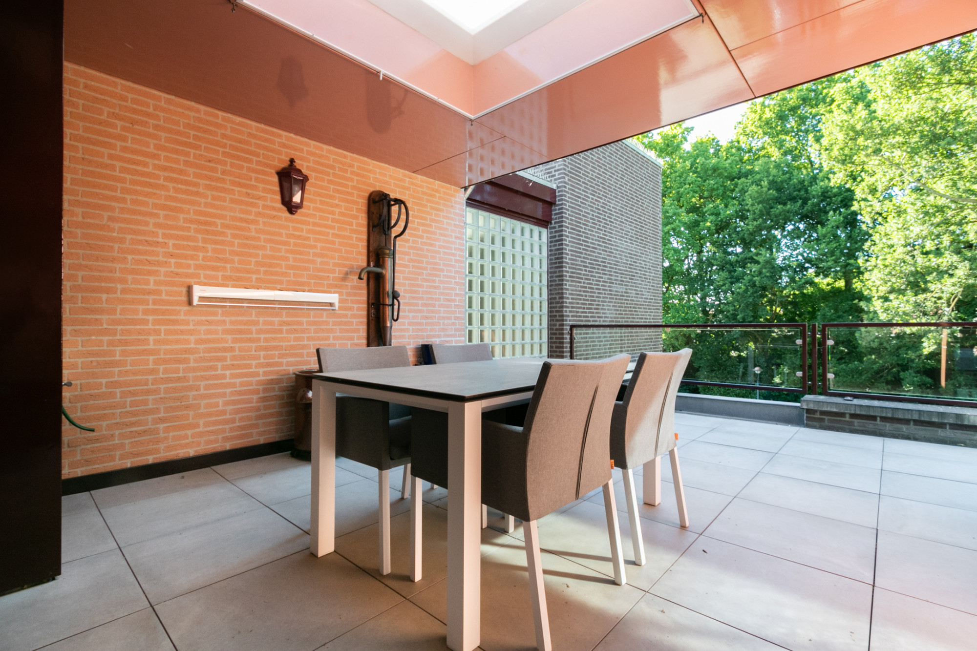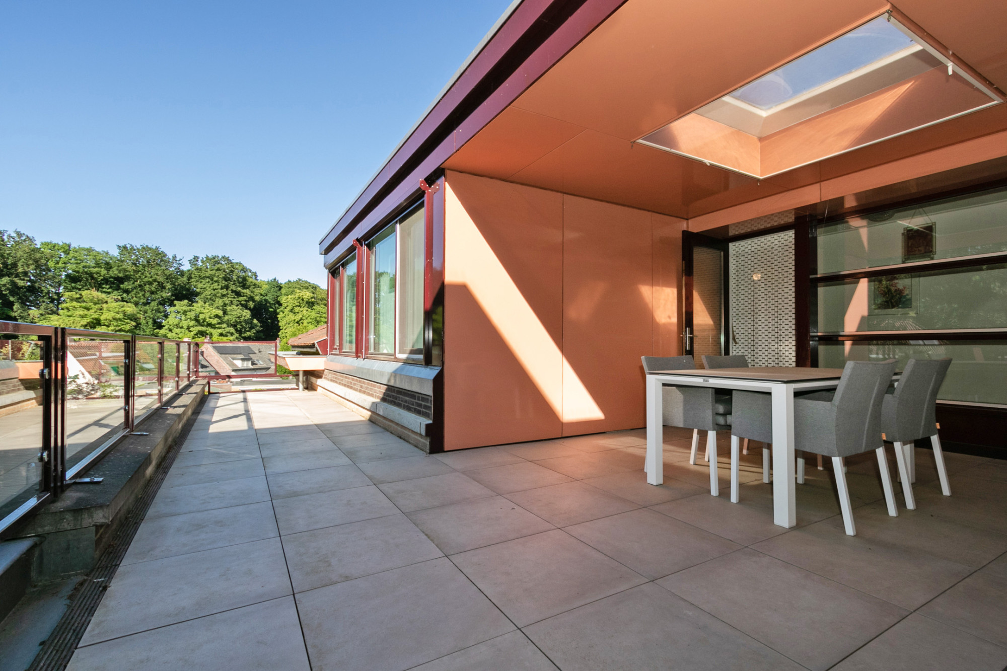 - Groot dakterras, deels overkapt