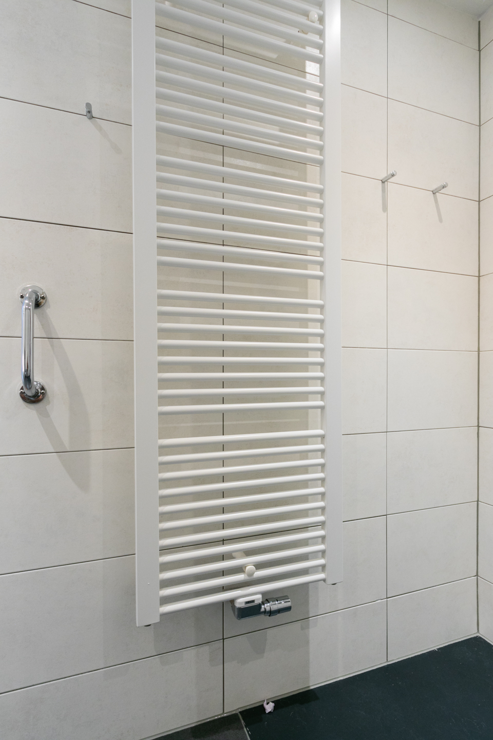 De moderne badkamer is voorzien van een toilet, wastafel en een ruime comfortabele inloopdouche. Een technische ruimte in het appartement doet tevens dienst als opbergruimte en is voorzien van een wasmachine-aansluiting.