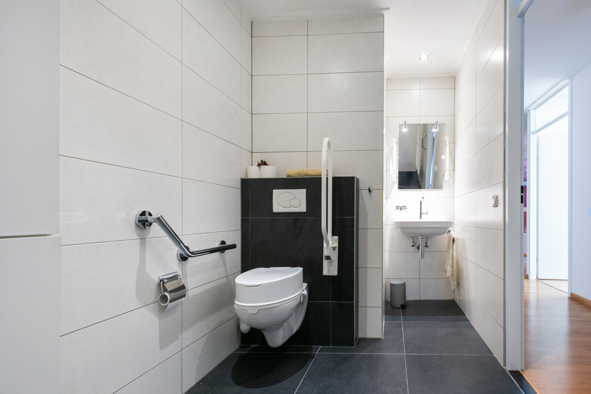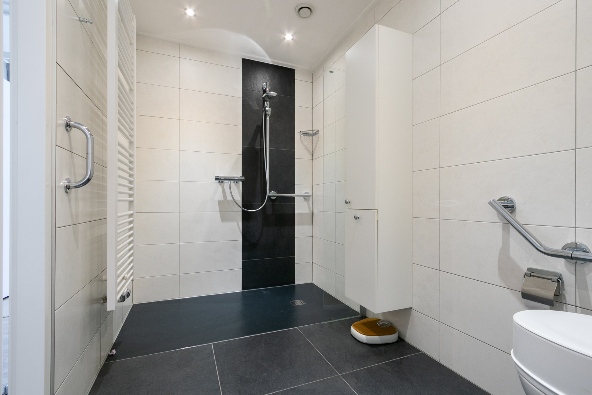 - Badkamer met toilet, wastafel en inloopdouche