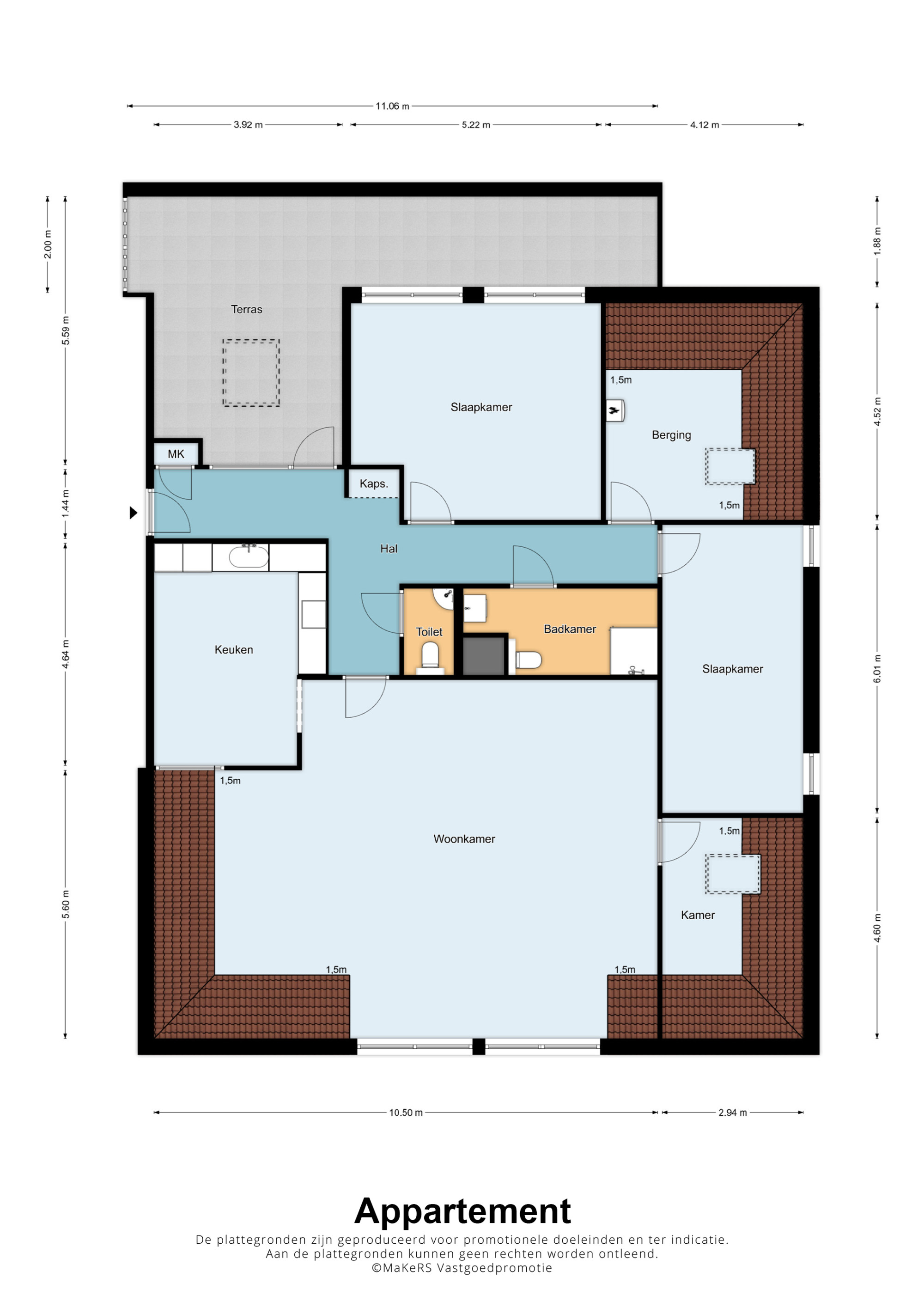 - Twee zeer ruime slaapkamers en de mogelijkheid een derde te realiseren