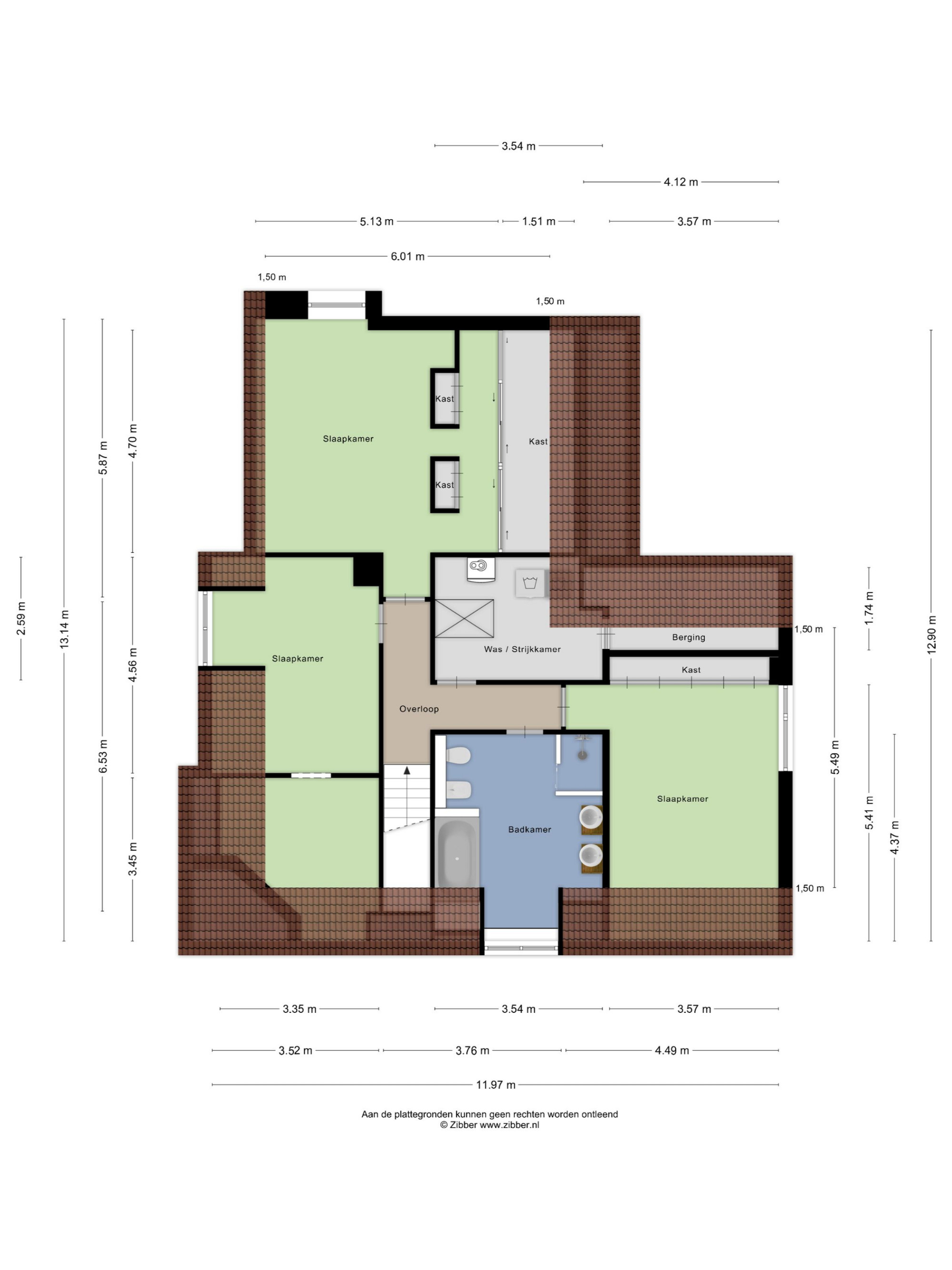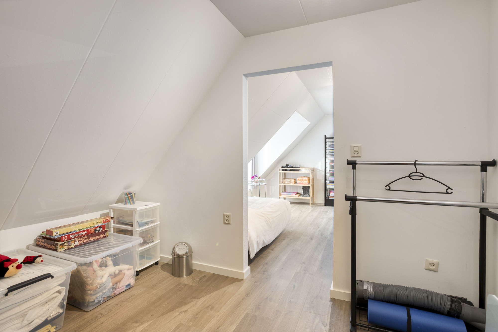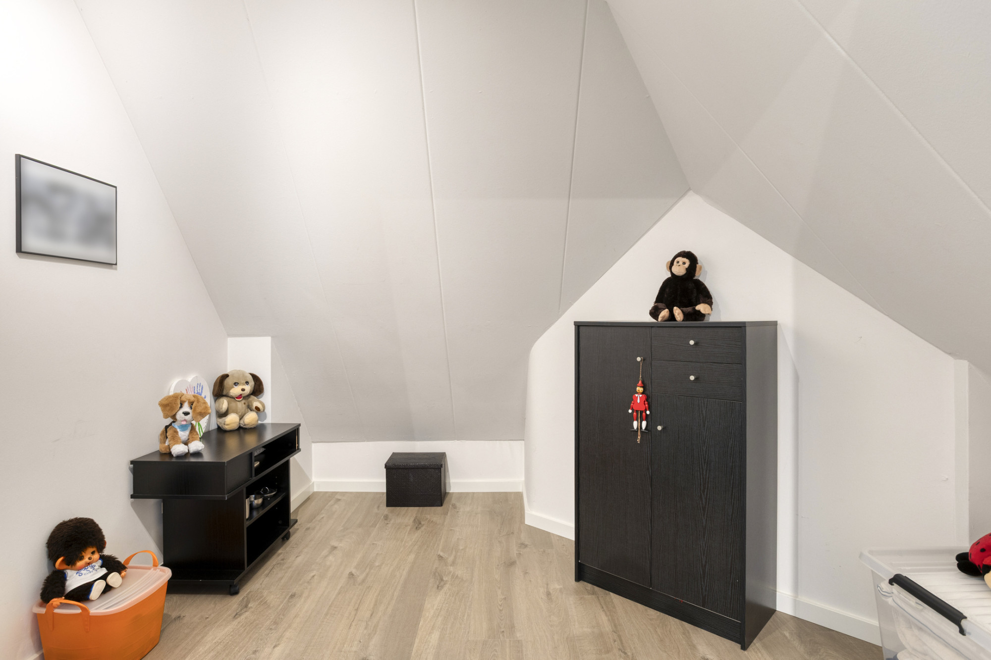 Via een vlizotrap in de wasruimte is de ruime bergzolder bereikbaar, die zich uitstrekt over de volledige woningbreedte.