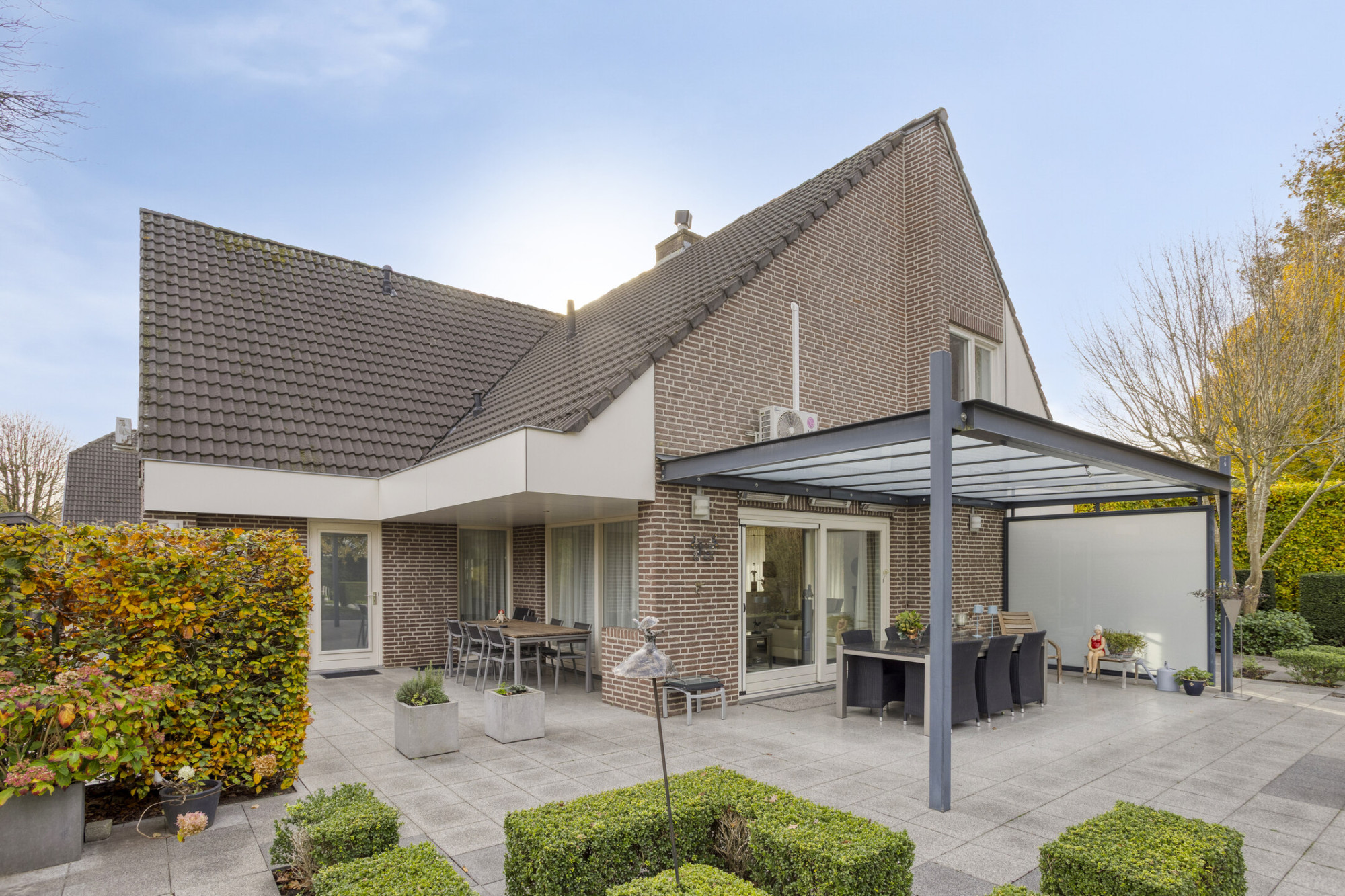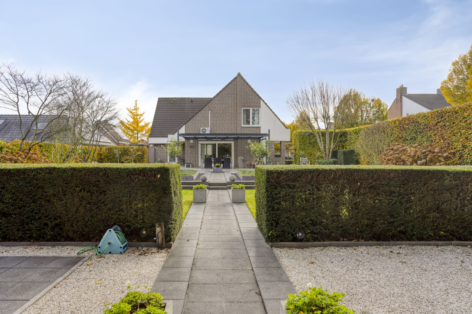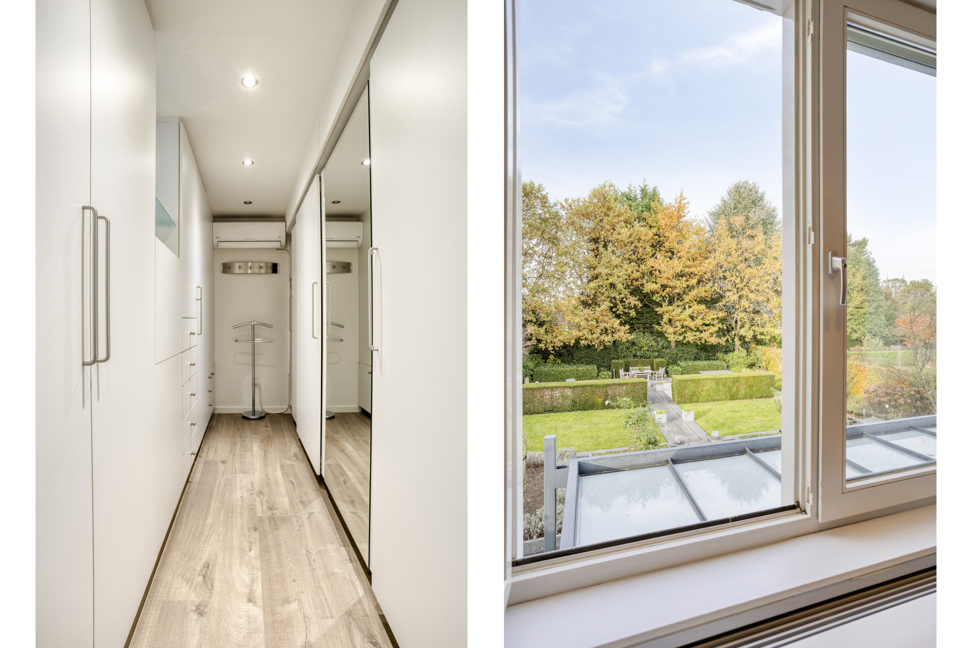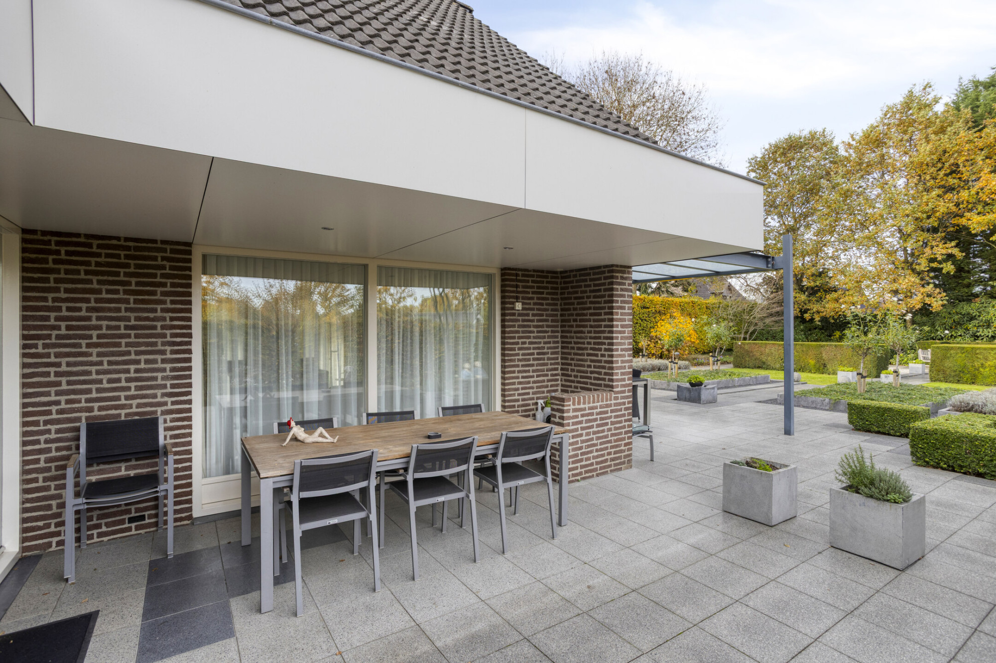 De fraai aangelegde, parkachtige tuin biedt een oase van rust met volwassen beplanting, diverse terrassen, strak onderhouden gazonpartijen en beukenhagen. De dubbele zijtoegang aan weerszijden van de woning biedt extra gemak; aan de rechterzijde bevinden zich twee houten tuinbergingen (2.96 x 1.94 m).