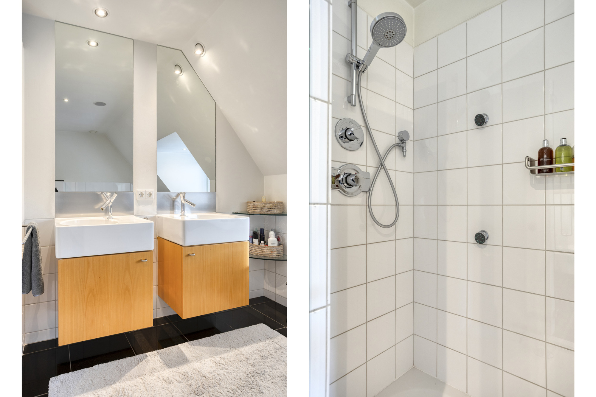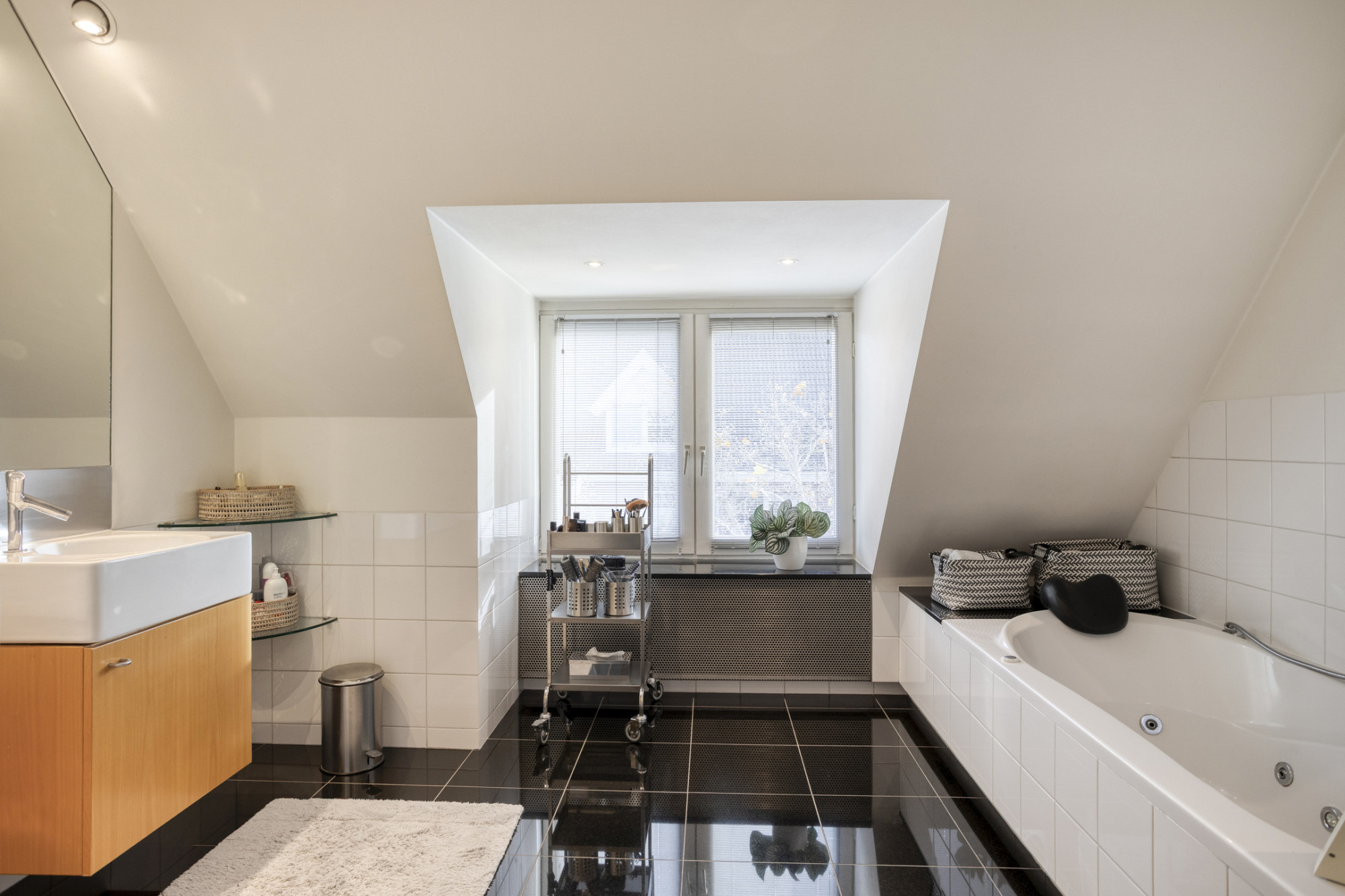 De riante luxe badkamer (4.37 x 3.54 m) is uitgevoerd met elektrische vloerverwarming, tweede wandcloset, bidet, dubbel wastafelmeubel, ruime inloopdouche en ligbad met whirlpoolfunctie.