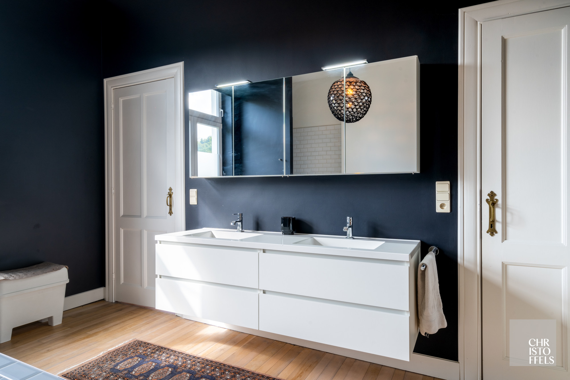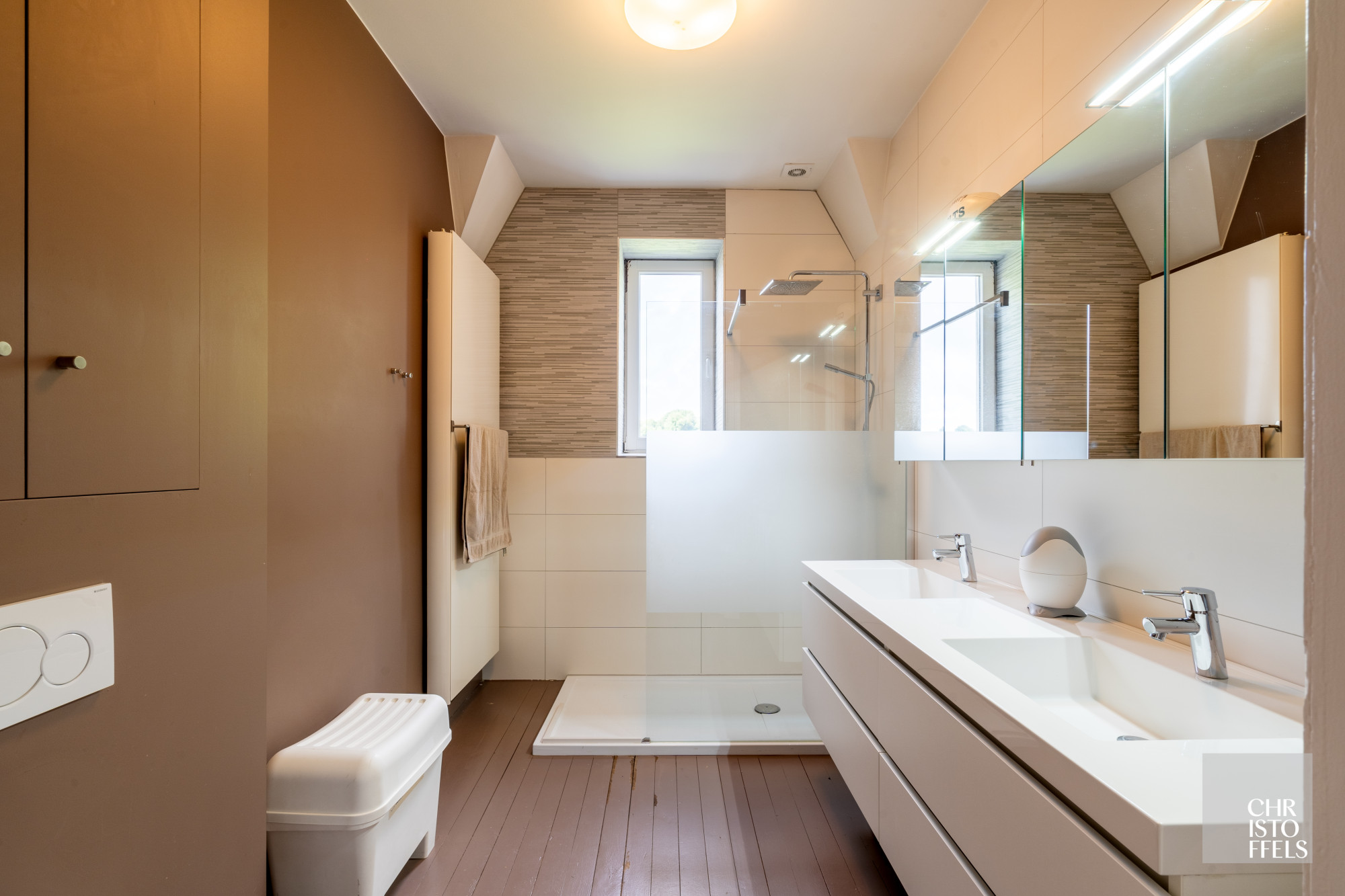 Badkamer 2 op het tweede verdiep is uitgerust met een dubbele wastafel en een douche. De 3de badkamer is uitgerust met een wastafel en een bad.
