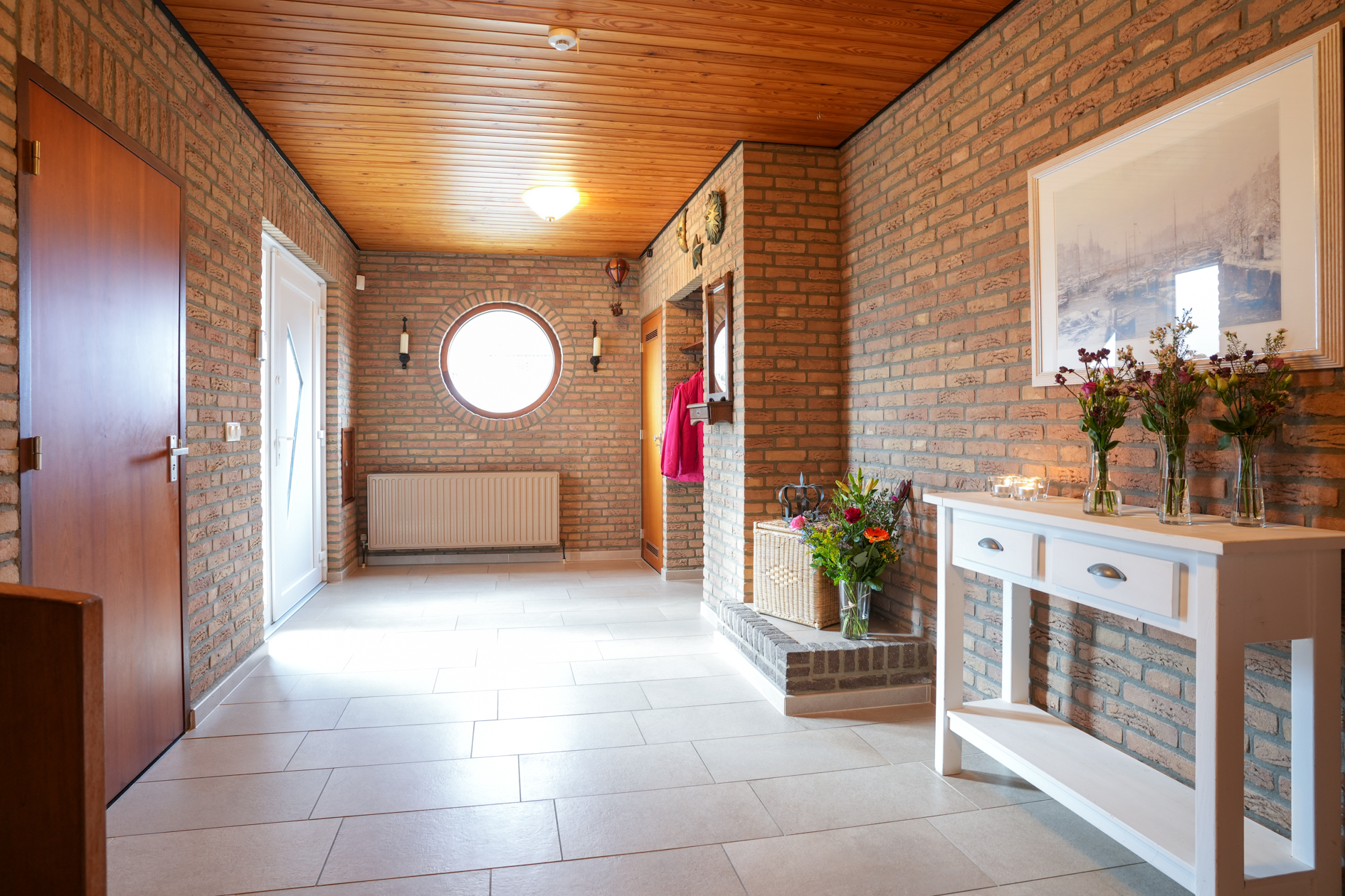 Dit object is ruim opgezet: grote entreehal met meterkast, toiletruimte met duoblok en fonteintje, toegangsdeur naar woonkamer.