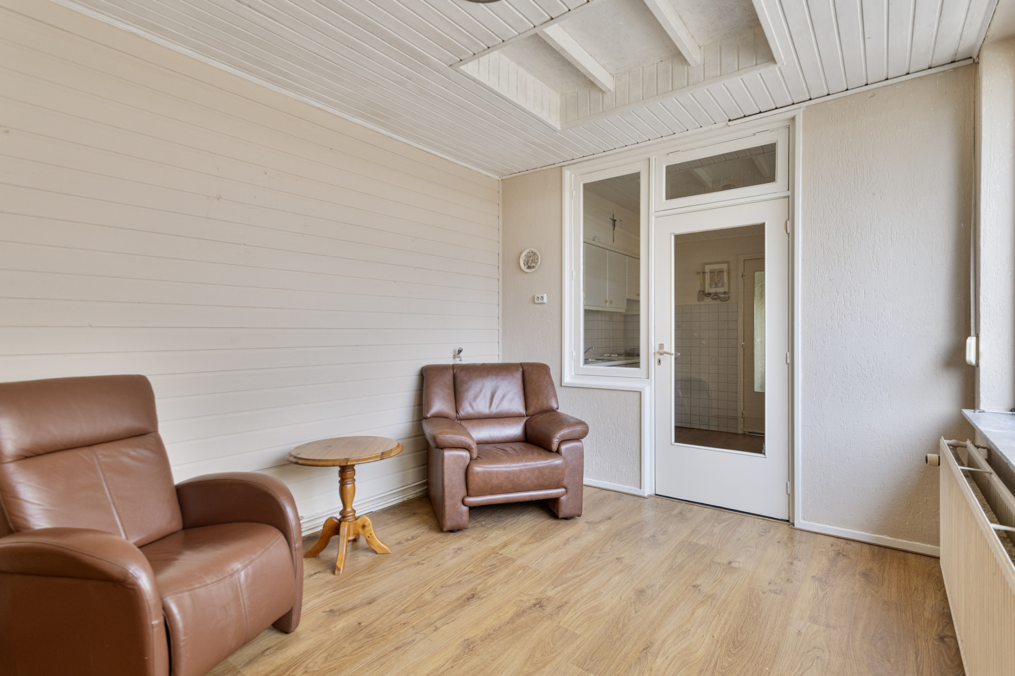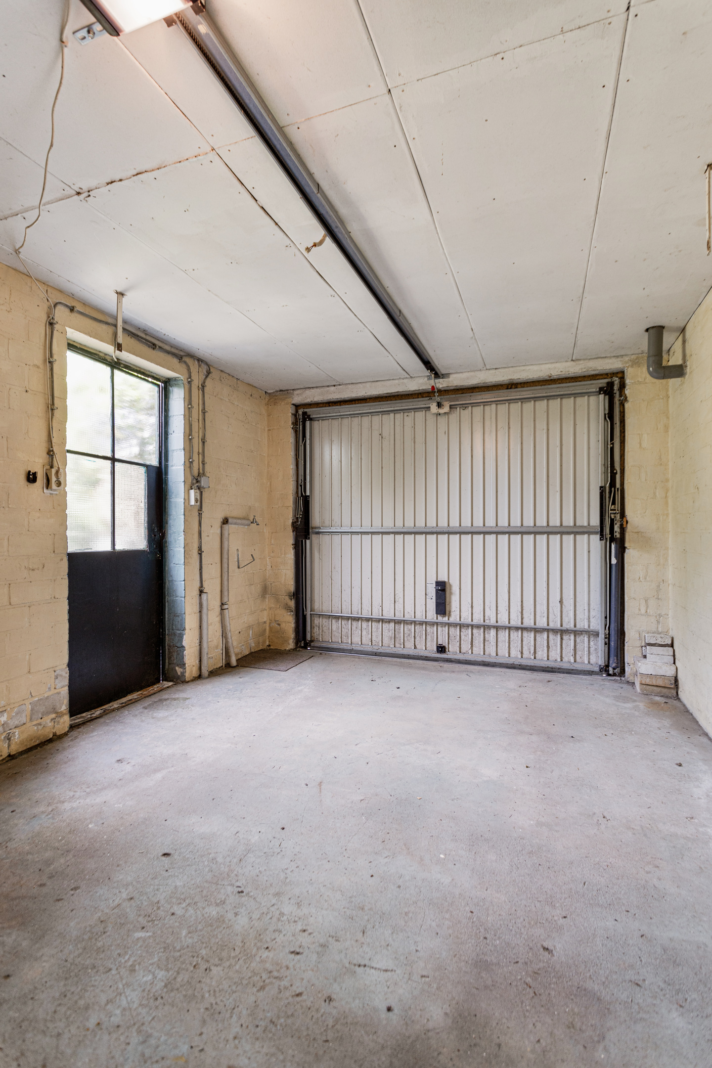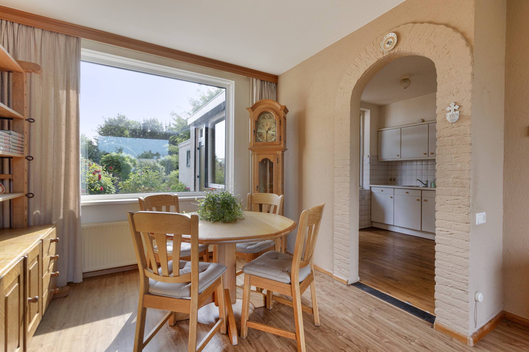 Hal, meterkast, betegeld toilet, woonkamer, keuken met eenvoudige keukeninstallatie voorzien van gaskookplaat en afzuigkap, serre, berging/wasruimte en achterom gelegen garage met electrisch bedienbare sectionaalpoort. Voor de garage bevindt zich een inrit waardoor achterom parkeren op eigen terrein eveneens mogelijk is.