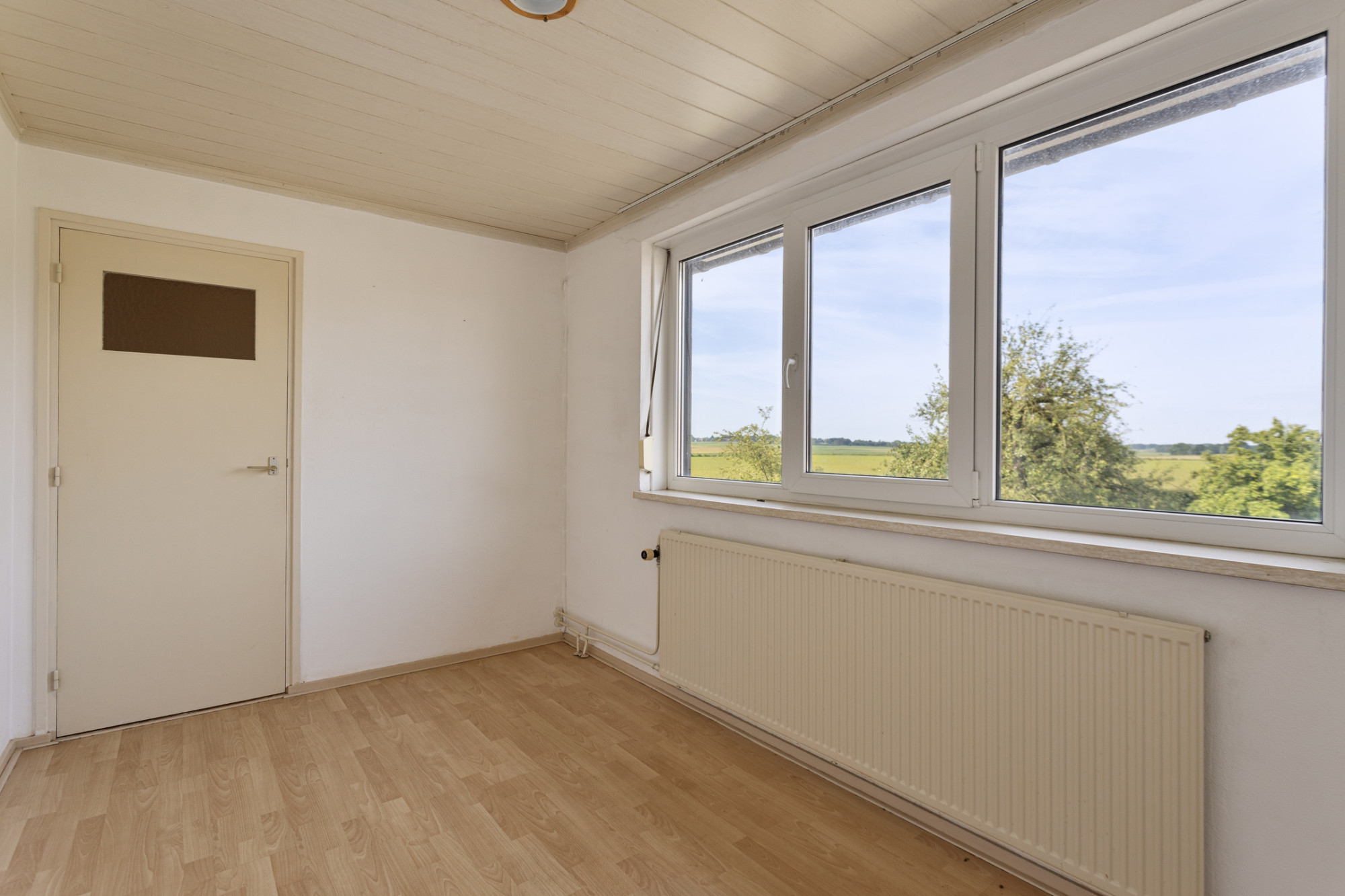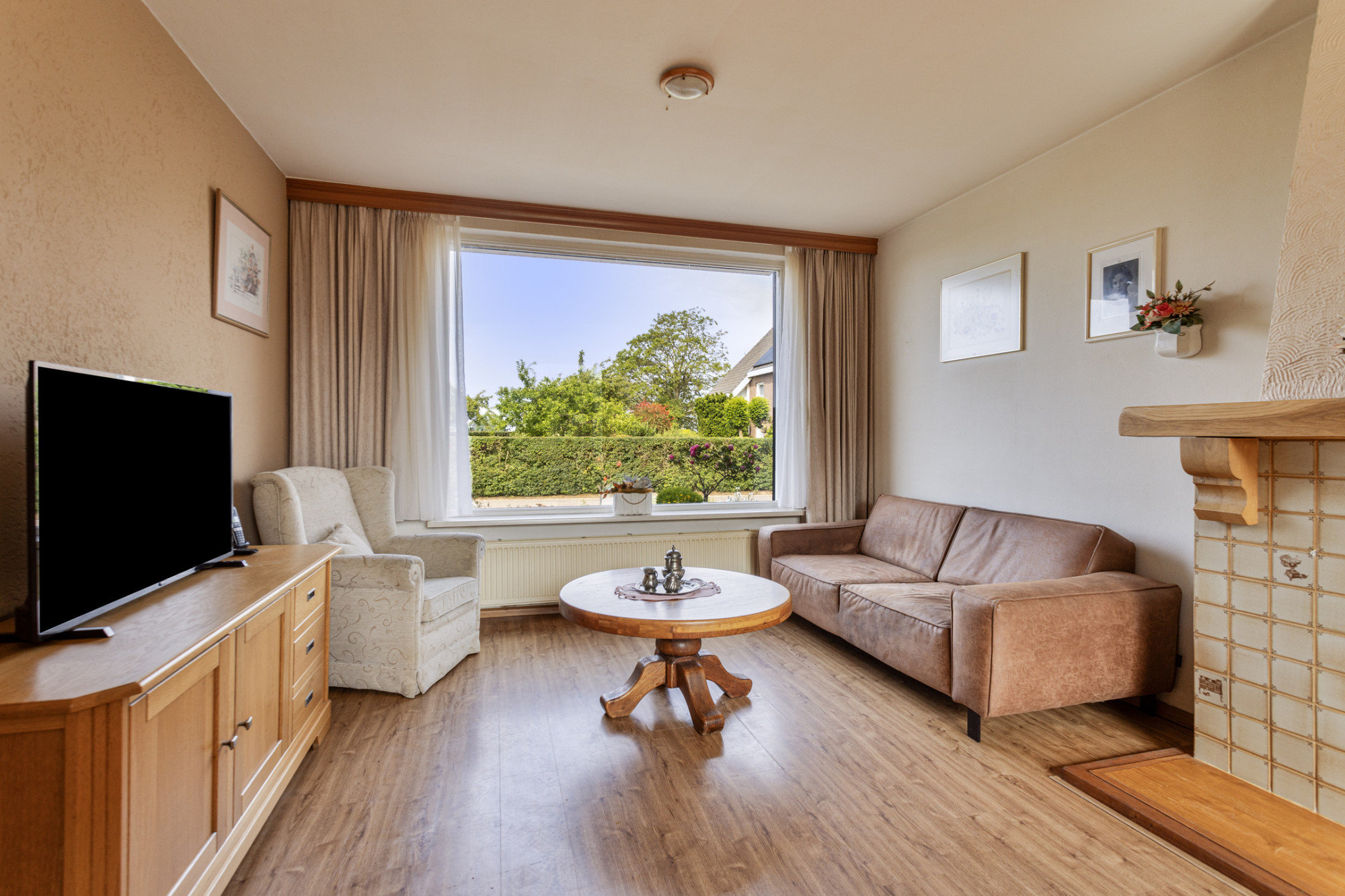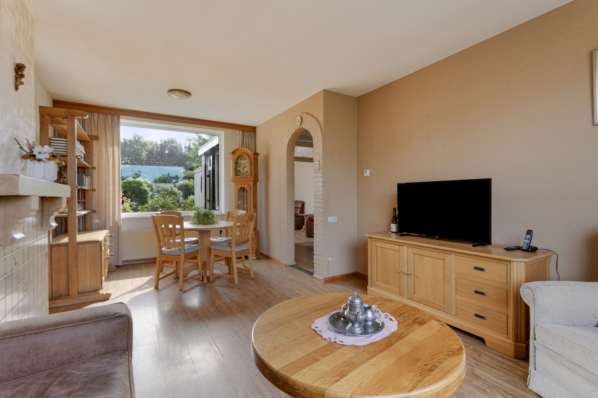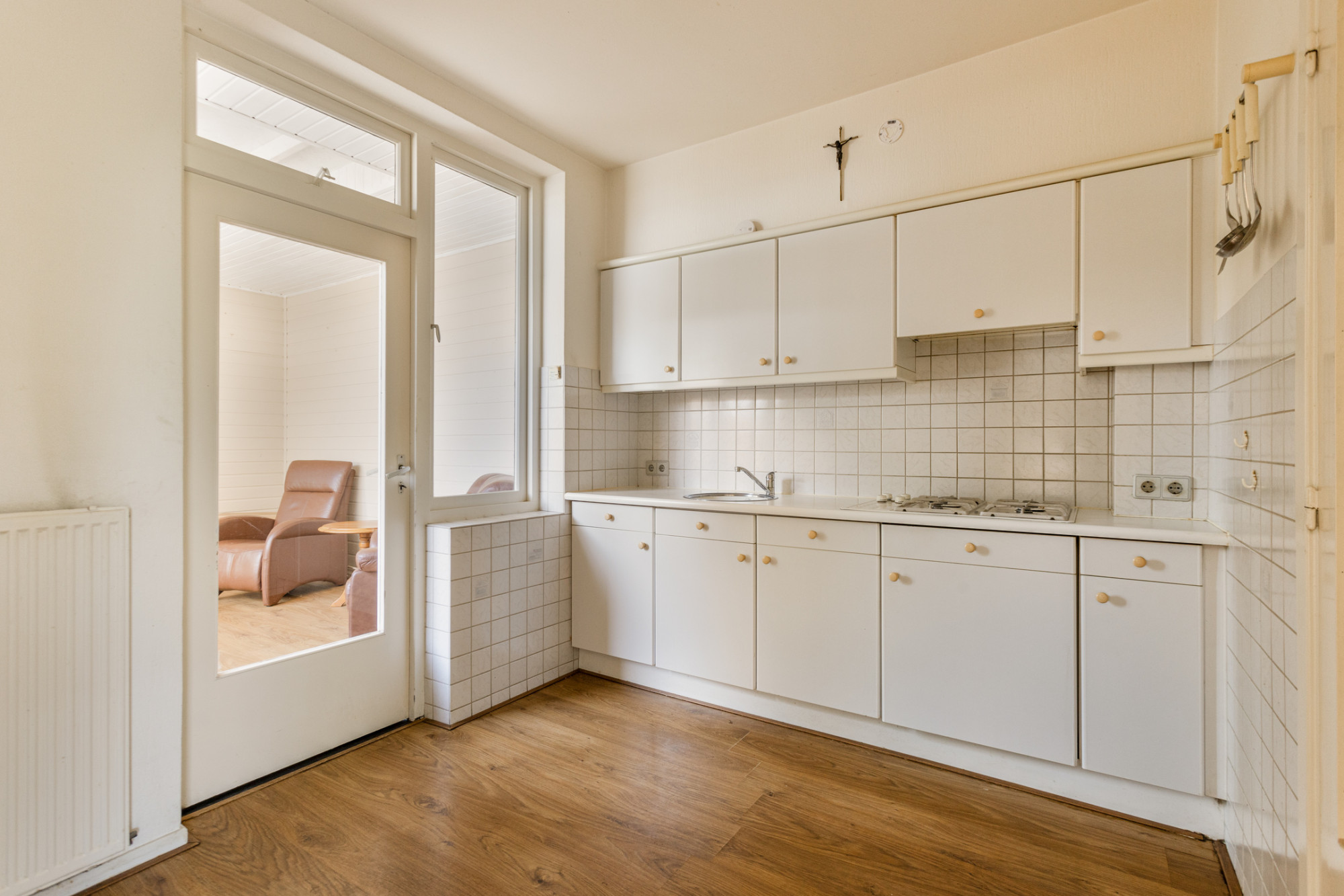 Hal, meterkast, betegeld toilet, woonkamer, keuken met eenvoudige keukeninstallatie voorzien van gaskookplaat en afzuigkap, serre, berging/wasruimte en achterom gelegen garage met electrisch bedienbare sectionaalpoort. Voor de garage bevindt zich een inrit waardoor achterom parkeren op eigen terrein eveneens mogelijk is.