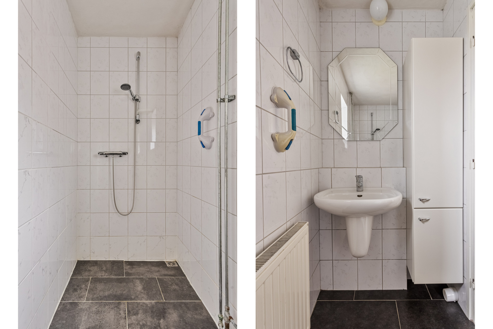 Overloop, twee slaapkamers, badkamer en diverse vaste kasten.