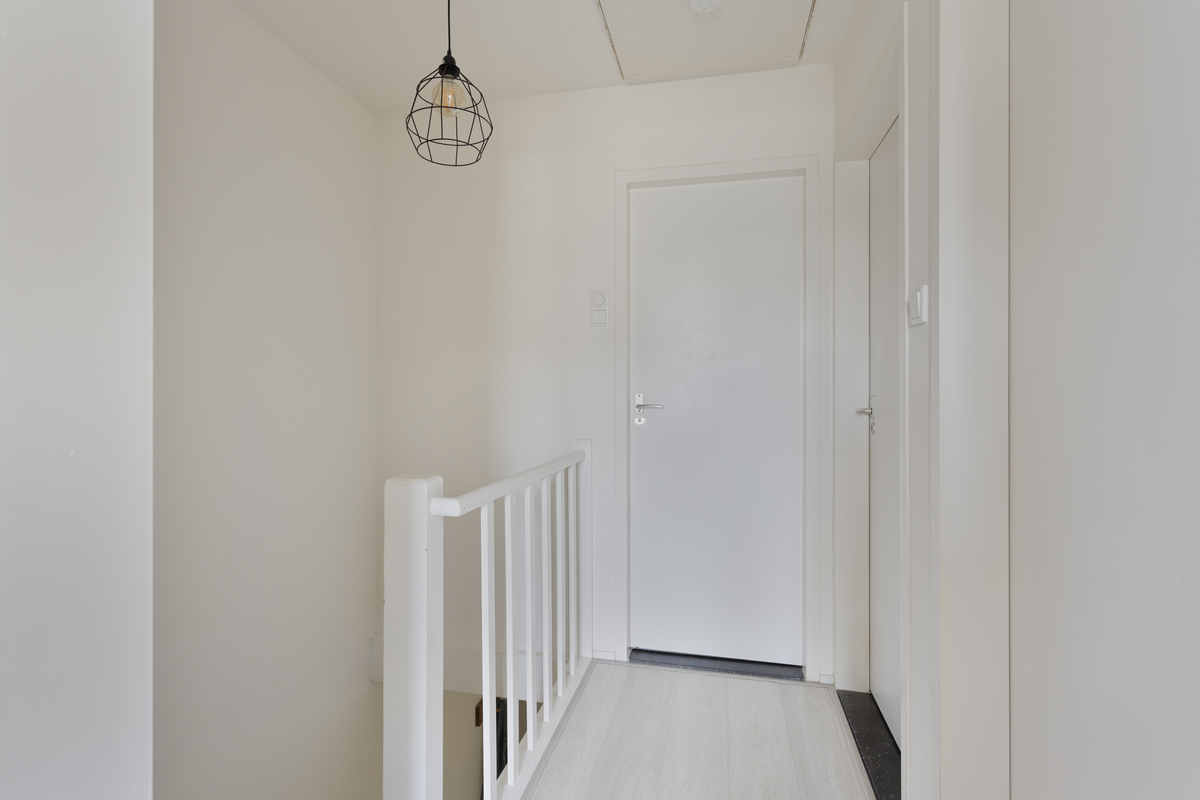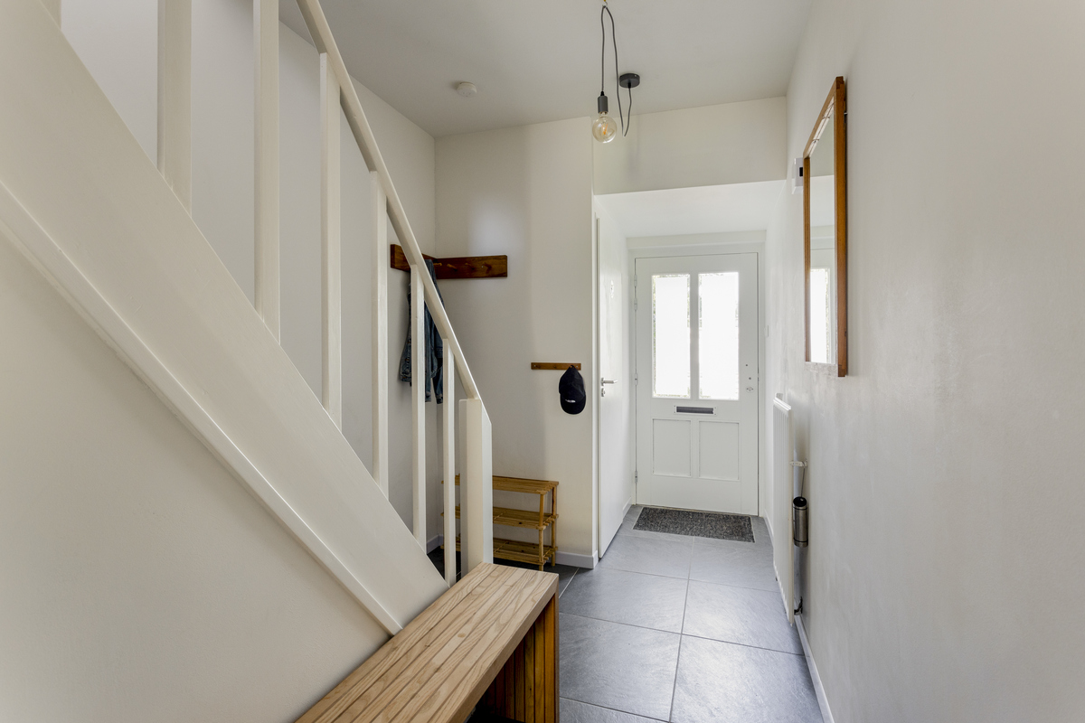 Verder bevindt zich in de hal nog een handige trap/opbergkast en de vernieuwde meterkast.
