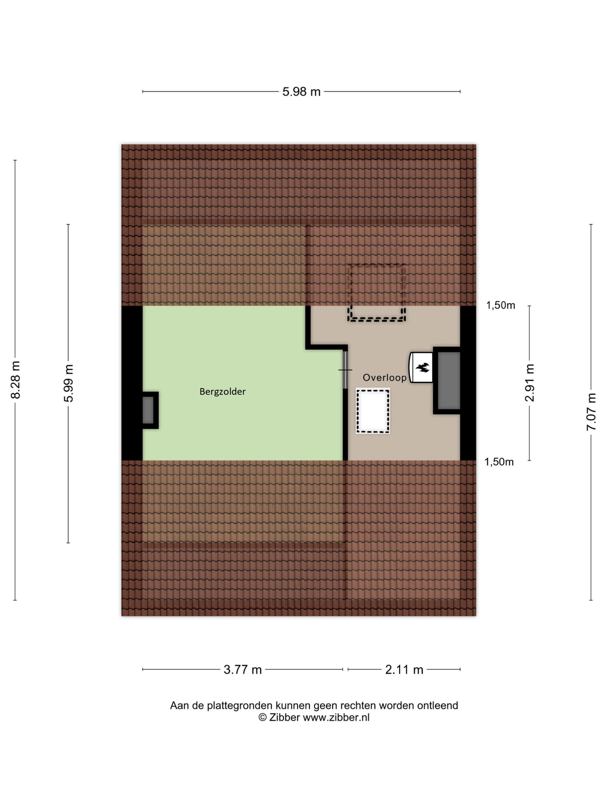 De nokhoogte op zolder bedraag 2,28 m. Het zou dus absoluut de moeite waard kunnen zijn om een vaste trap naar de zolder te realiseren.