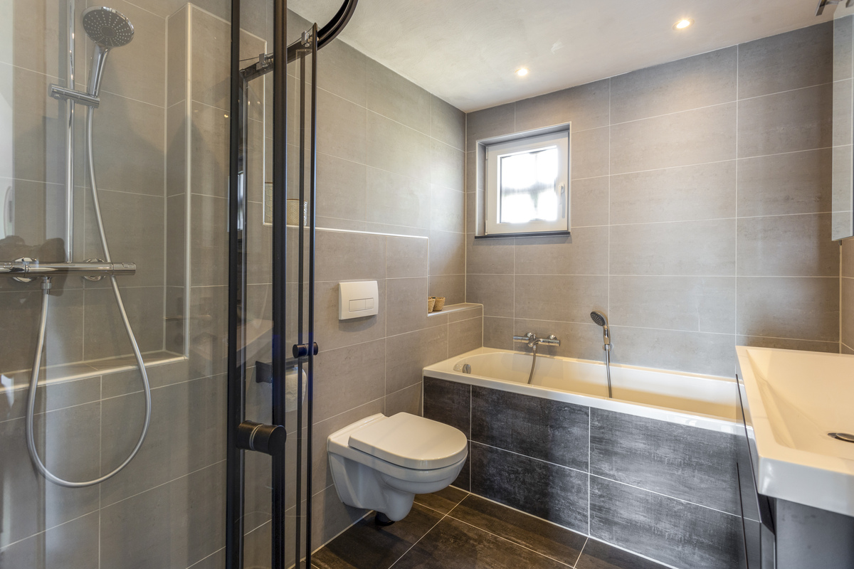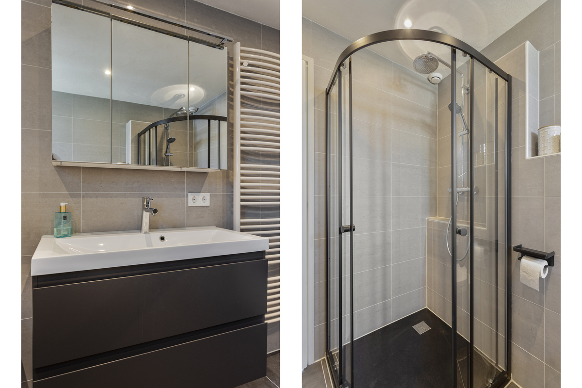 De badkamer is in 2023 geheel vernieuwd. Deze is voorzien van een designradiator, ruim ligbad, wastafel meubel, douche(cabine) en hangcloset.
