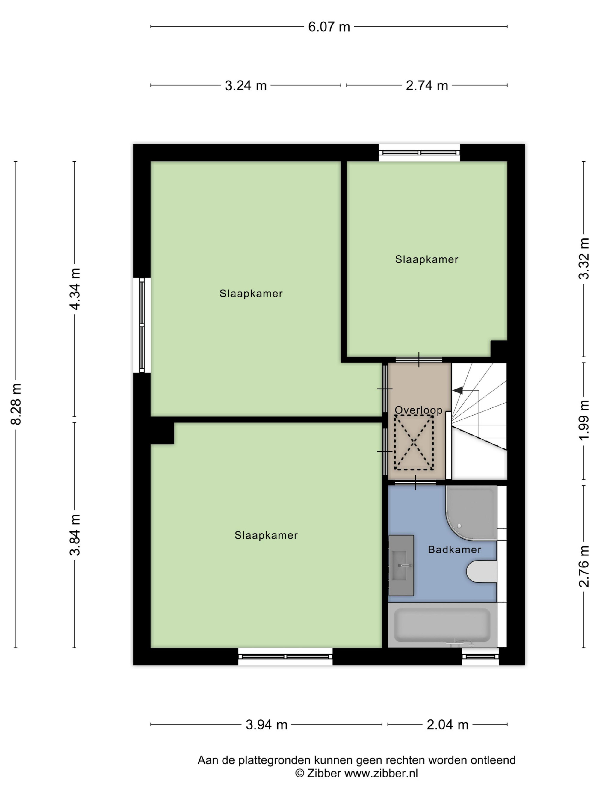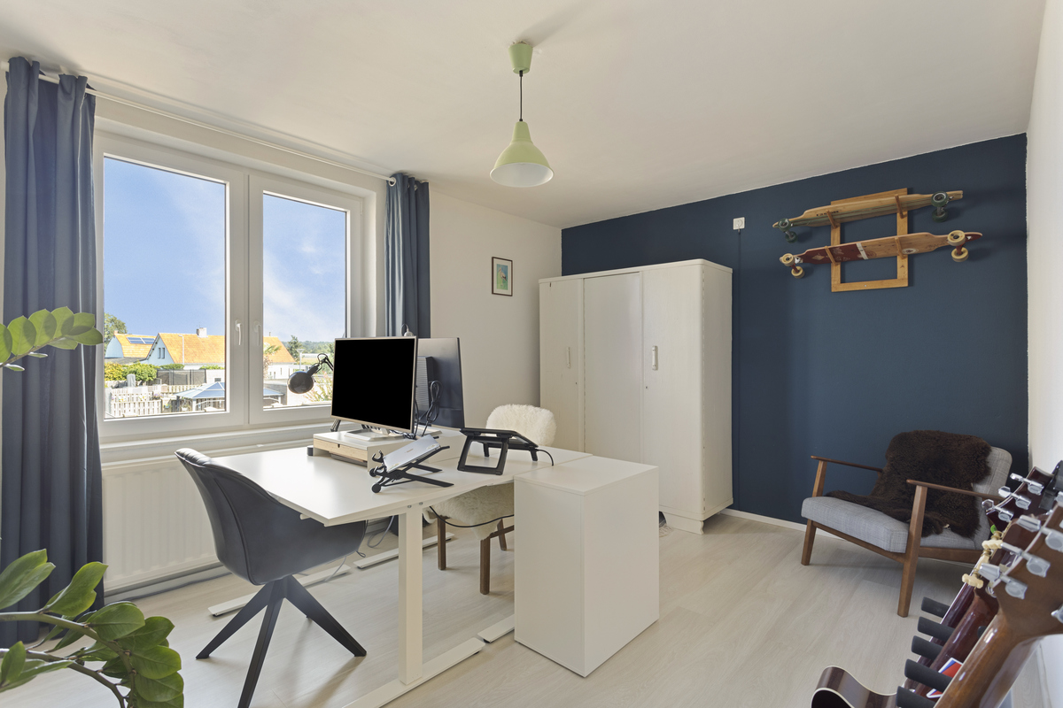 Op de verdieping zijn via de overloop drie ruime slaapkamers en een badkamer bereikbaar.