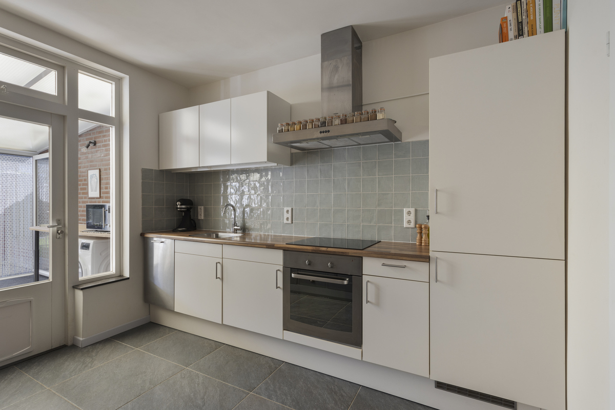 De aparte keuken is voorzien van een keukeninrichting (2017) met vaatwasmachine, koel/vriescombinatie, inductie kookplaat en oven.