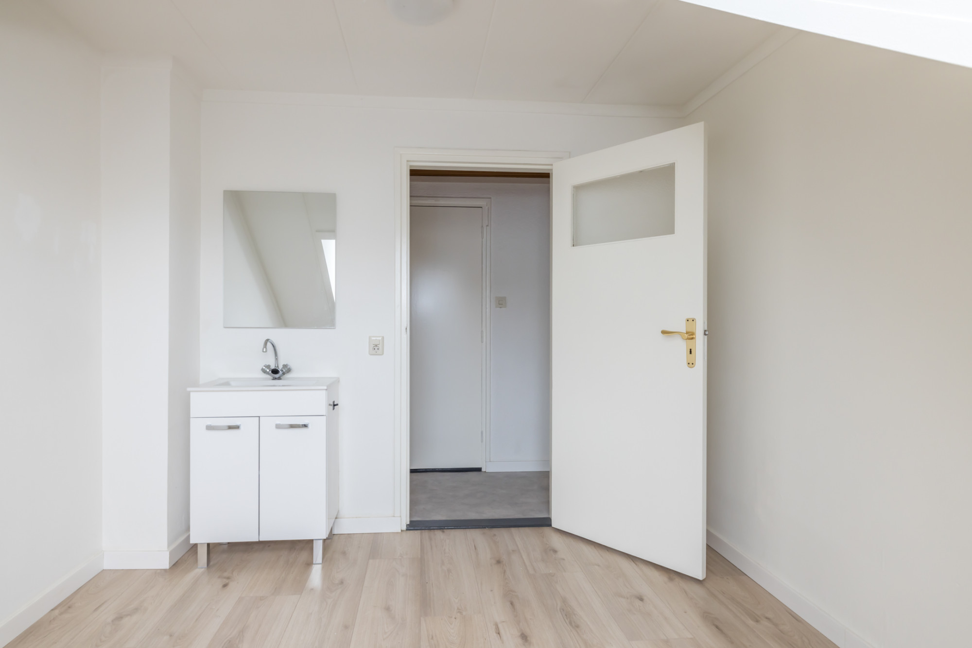 - slaapkamer 2.92x3.62 voorzien van laminaatvloer, met vaste wastafel en dakkapel