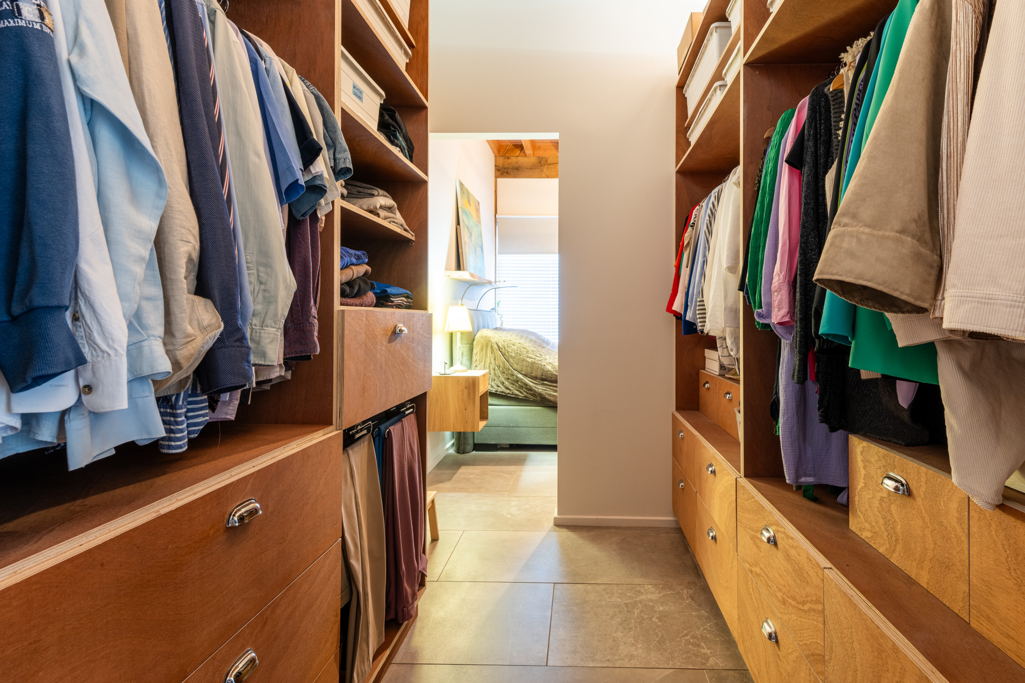 Walk in closet bereikbaar vanuit de slaapkamer.