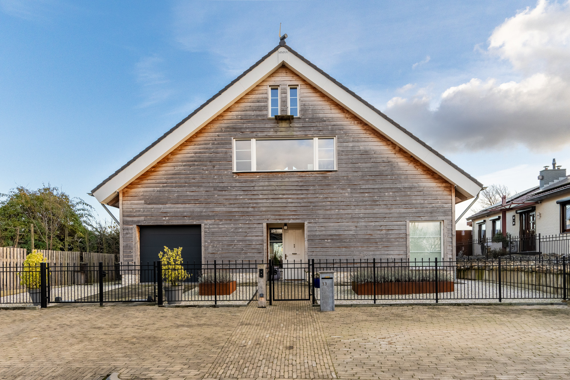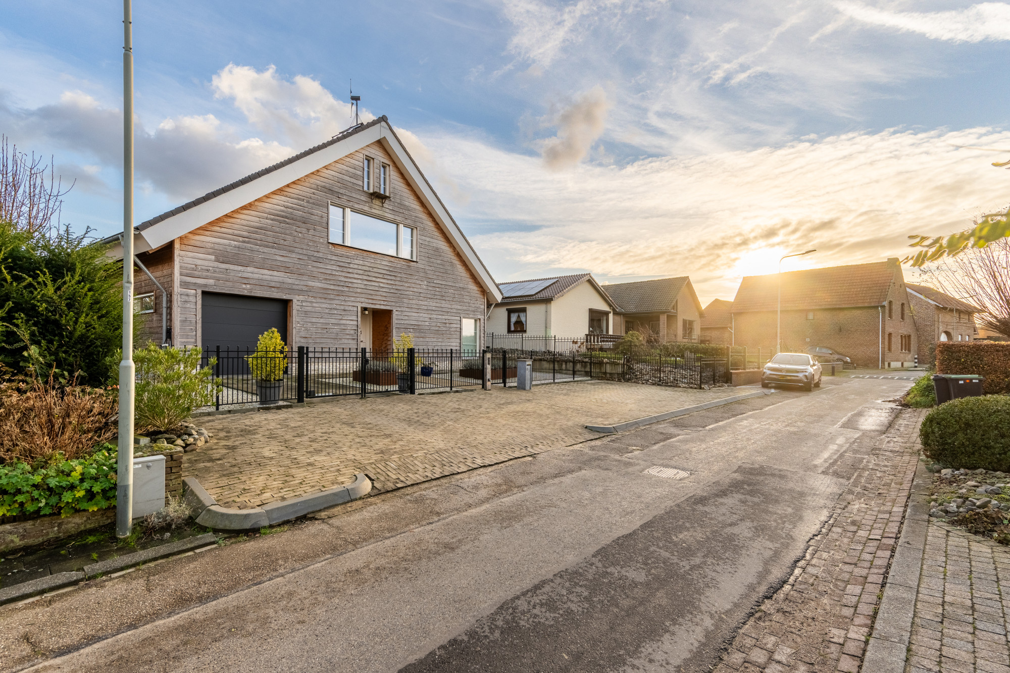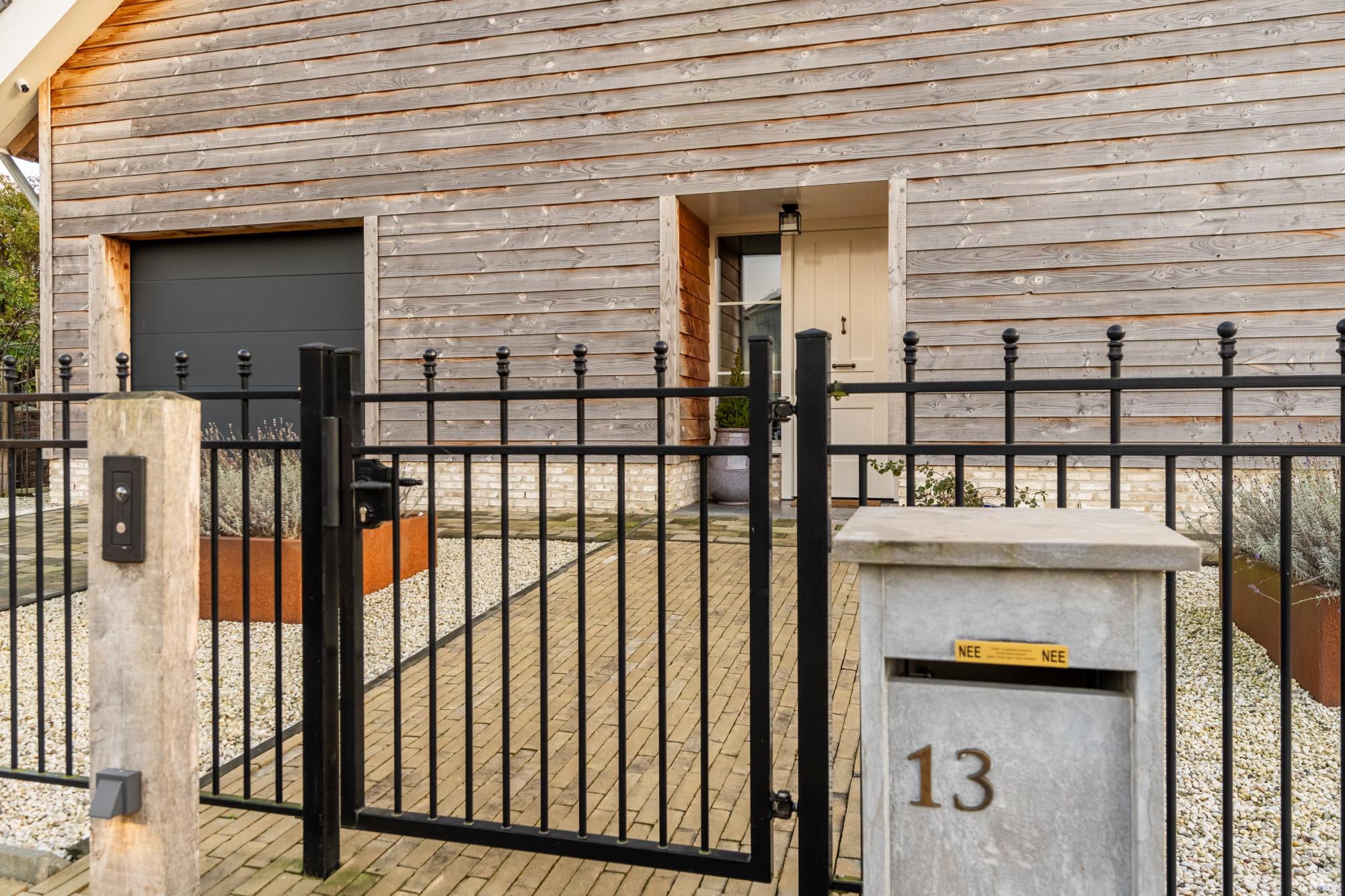 Ruime oprit, geschikt voor meerdere personenauto's. Voorzien van zwart sierhekwerk met looppoort en elektrische poort voor de oprit ingang. Er zijn 2 laadpalen aanwezig t.b.v. elektrische auto's.