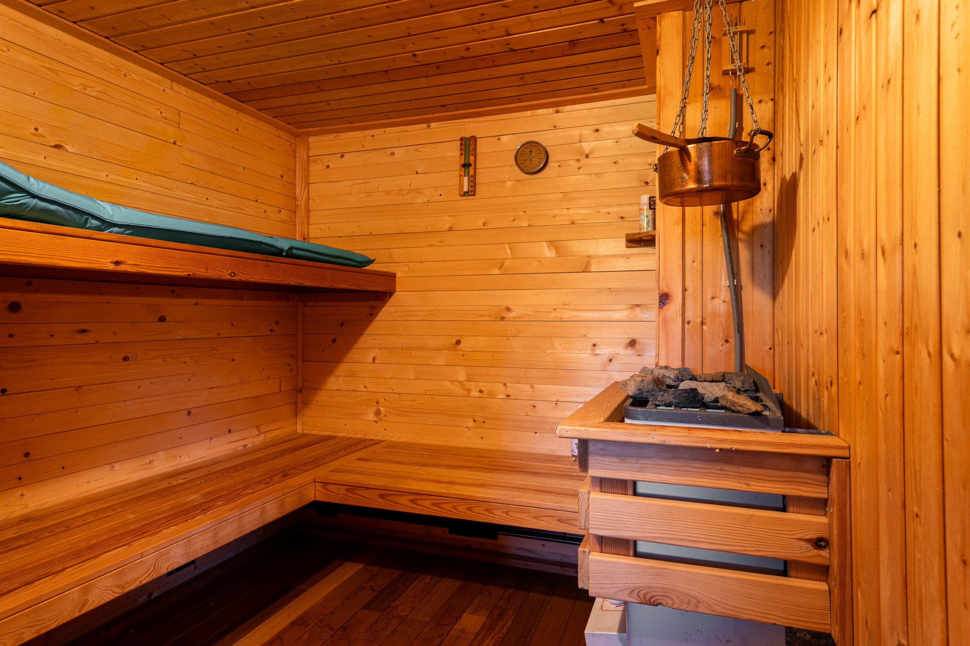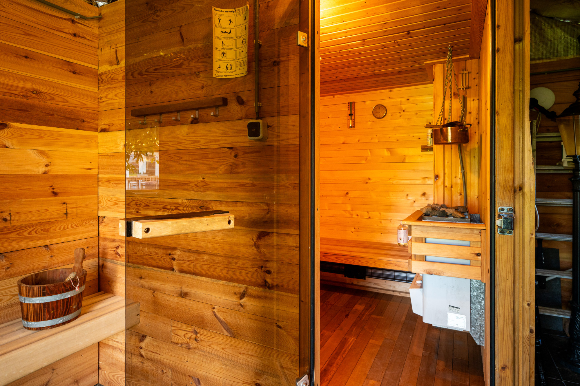 Er is een sauna aanwezig in het luxe chaletje in de tuin.