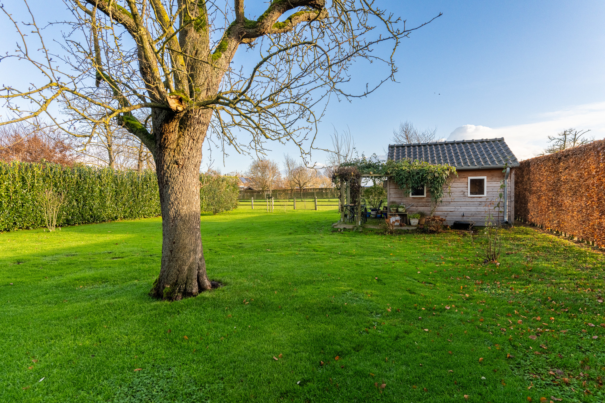 Prachtig aangelegde en super goed verzorgde achtertuin met ruime terras overkapping (13.27 x 3.59 m), terrassen.