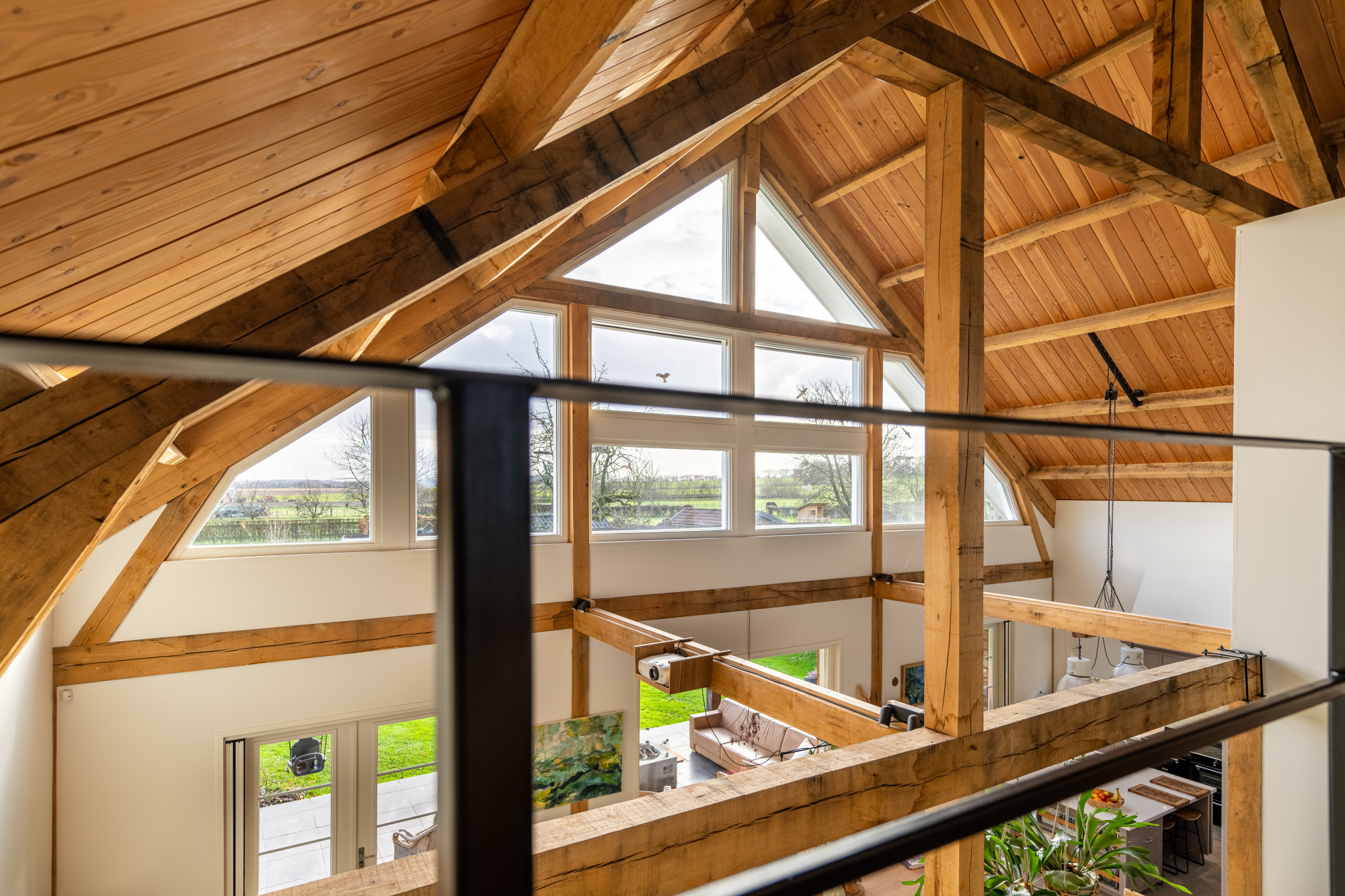 Deze unieke woning is door de huidige bewoners in in 2020 gebouwd onder een zeer bijzondere architectuur waarbij de landelijke ligging ook van binnenuit goed voelbaar is en heel veel rust en ruimte uitstraalt.