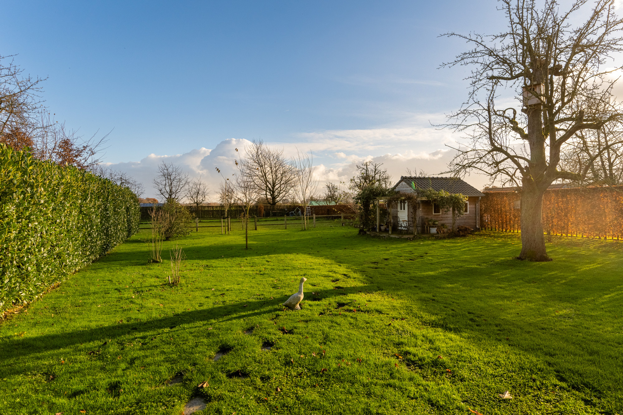 De ruime oprit biedt voldoende parkeergelegenheid en de rondom gelegen, sfeervolle tuin waarborgt een ongestoord woongenot; dit mede gezien de grootte van het perceel van circa 1.132 m2.