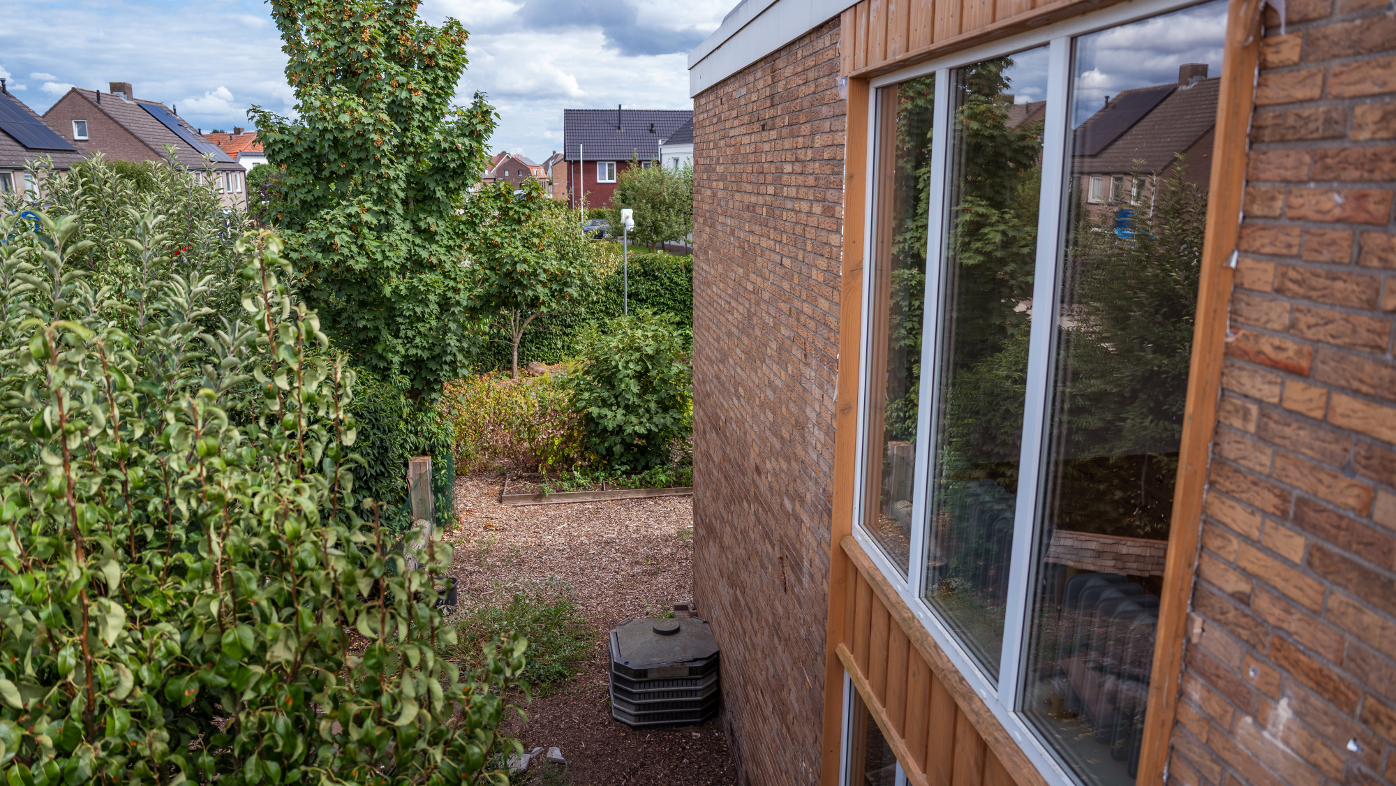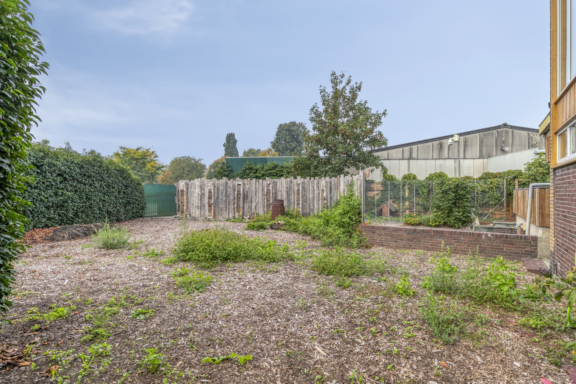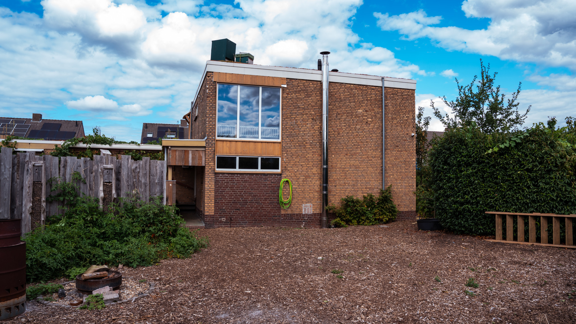 De tuin is ruim opgezet en biedt volop privacy. Er is veel groen aanwezig en diverse plekken om te zitten en te genieten van de buitenruimte. Aan de zuidzijde staat een houten schutting met insectenhotels en er is een kippenren, een buitendouche en een groot terras. Vanuit de achtertuin wandel je direct natuurgebied de Hooge Heide in, met ’t Sohr en de Maasduinen op korte afstand. Het naastgelegen garagebedrijf is verhuisd; de gebouwen worden verwijderd en de grond gesaneerd.