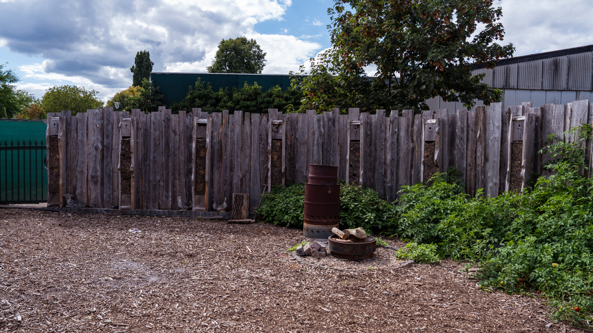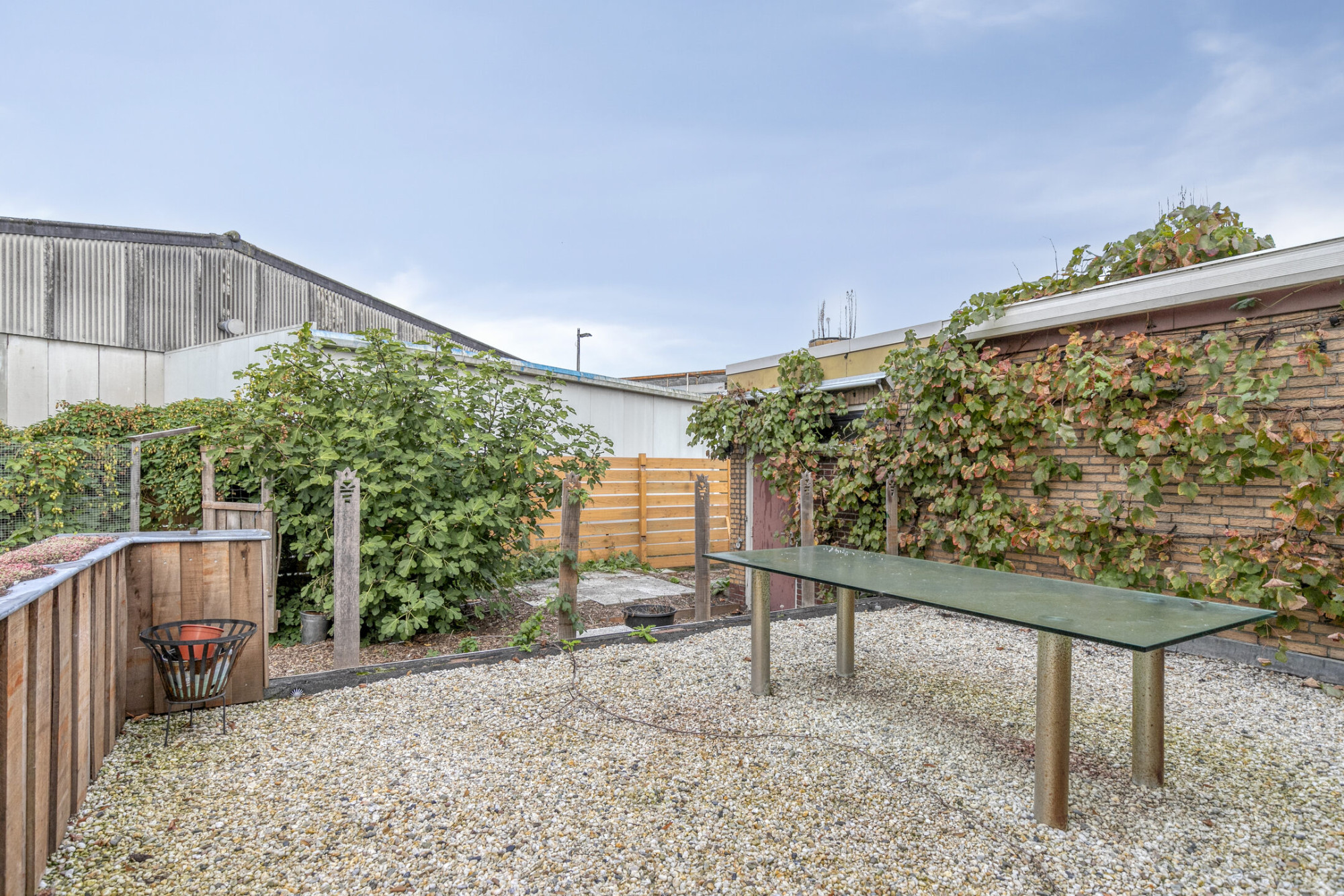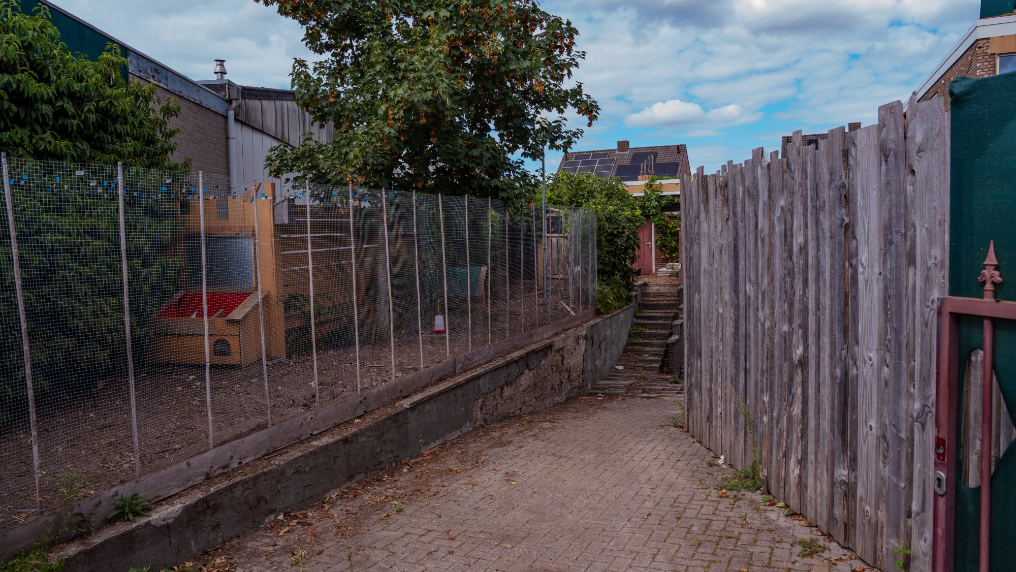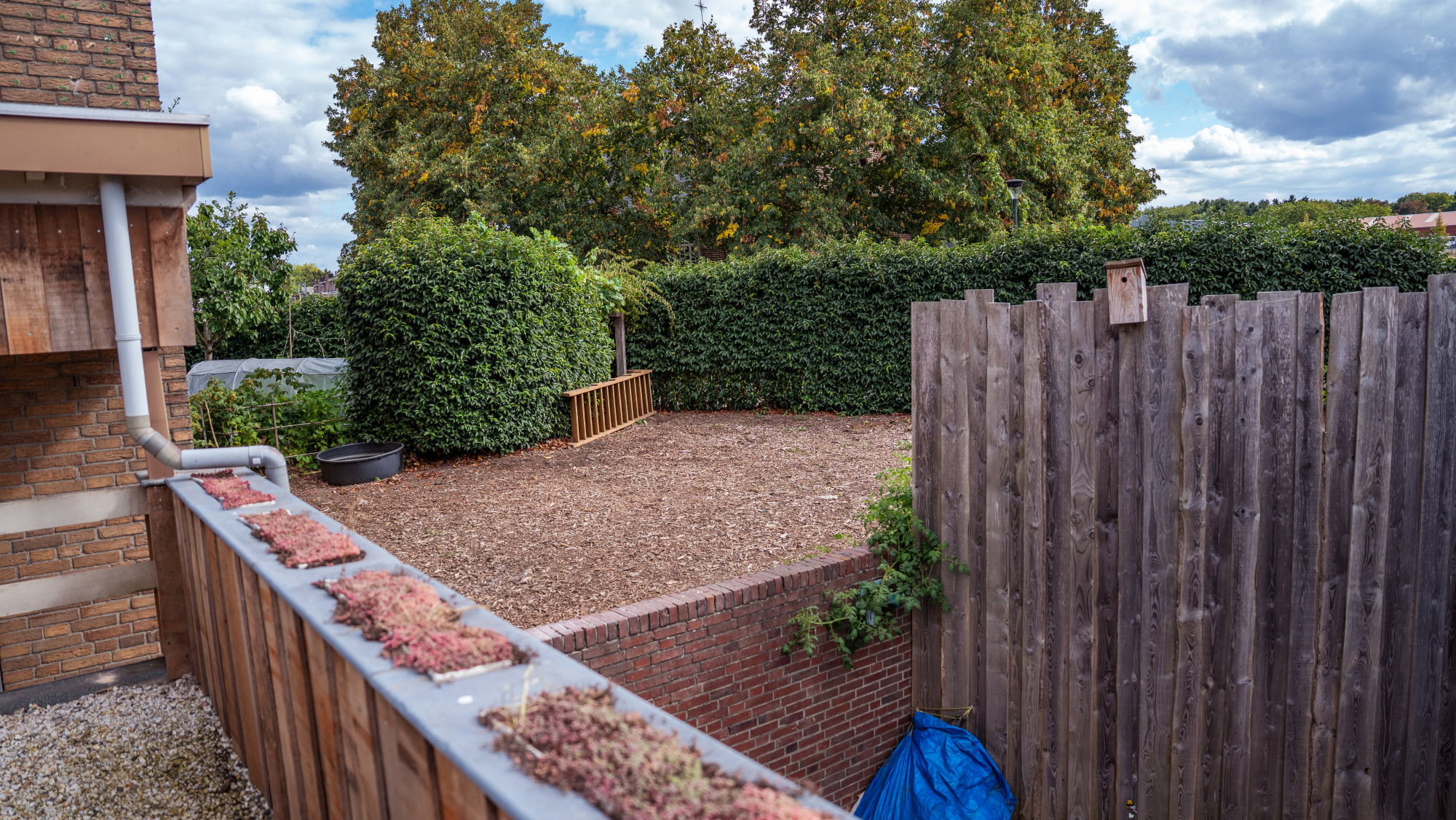 De tuin is ruim opgezet en biedt volop privacy. Er is veel groen aanwezig en diverse plekken om te zitten en te genieten van de buitenruimte. Aan de zuidzijde staat een houten schutting met insectenhotels en er is een kippenren, een buitendouche en een groot terras. Vanuit de achtertuin wandel je direct natuurgebied de Hooge Heide in, met ’t Sohr en de Maasduinen op korte afstand. Het naastgelegen garagebedrijf is verhuisd; de gebouwen worden verwijderd en de grond gesaneerd.