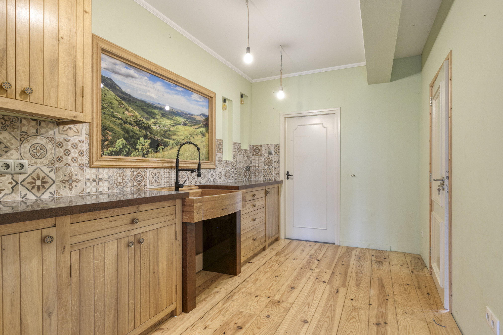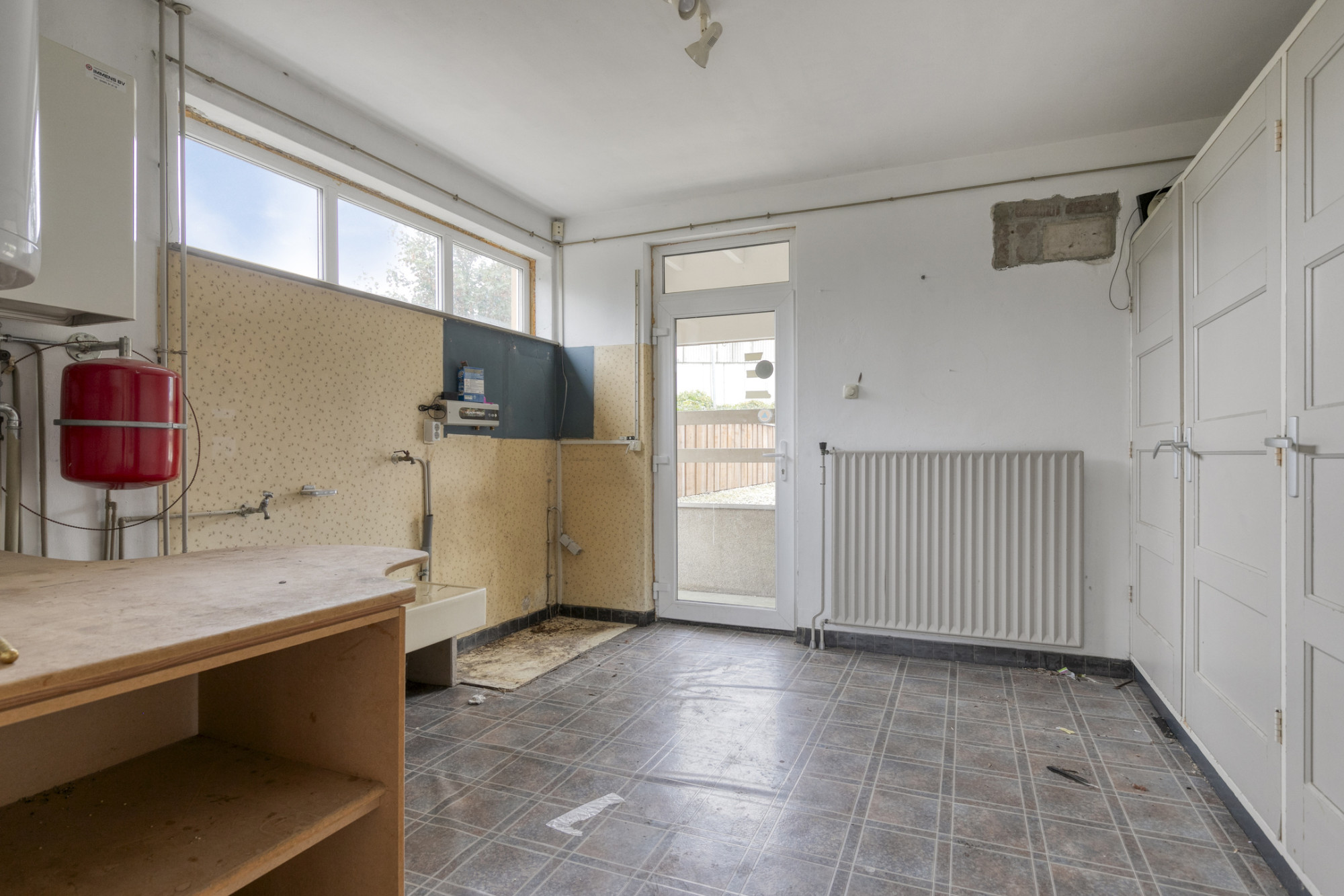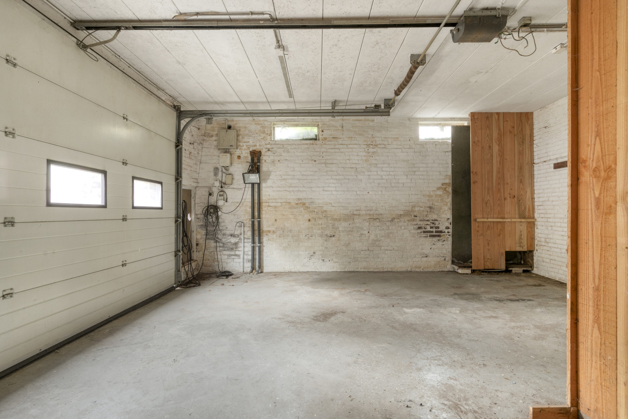 Het hoofdhuis heeft een praktische indeling met een L-vormige woonkamer (ca. 43 m²), een eetkeuken (16 m²), een bijkeuken (15 m²) en vier slaapkamers van respectievelijk 19, 16, 15 en 13 m². Onder het hele huis ligt een kelder met inpandige garage. De tuin rondom biedt veel privacy en groen.