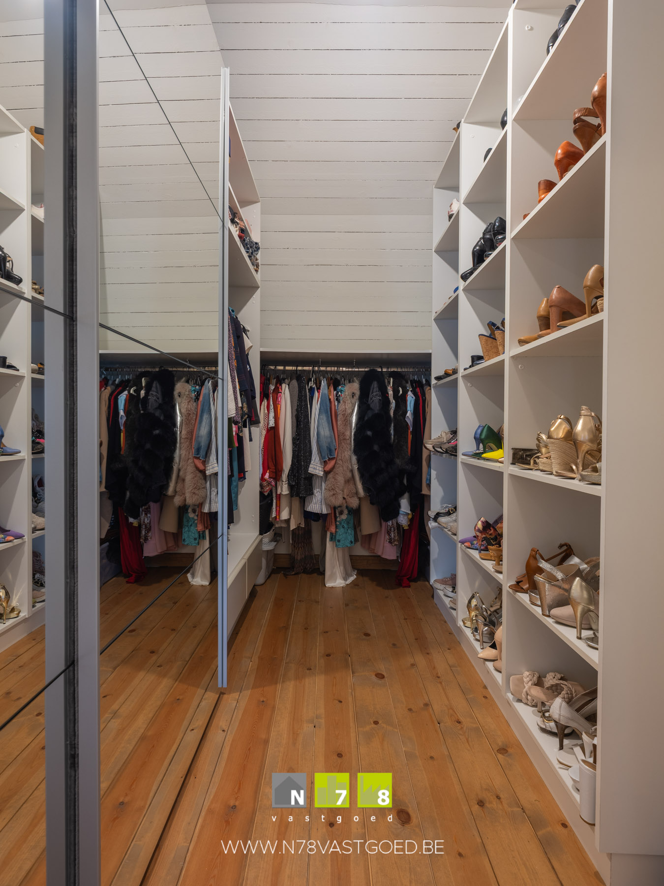 - Dressing aan slaapkamer 4 (2,10m x 4,00m = 8,40m²): houten vloer.