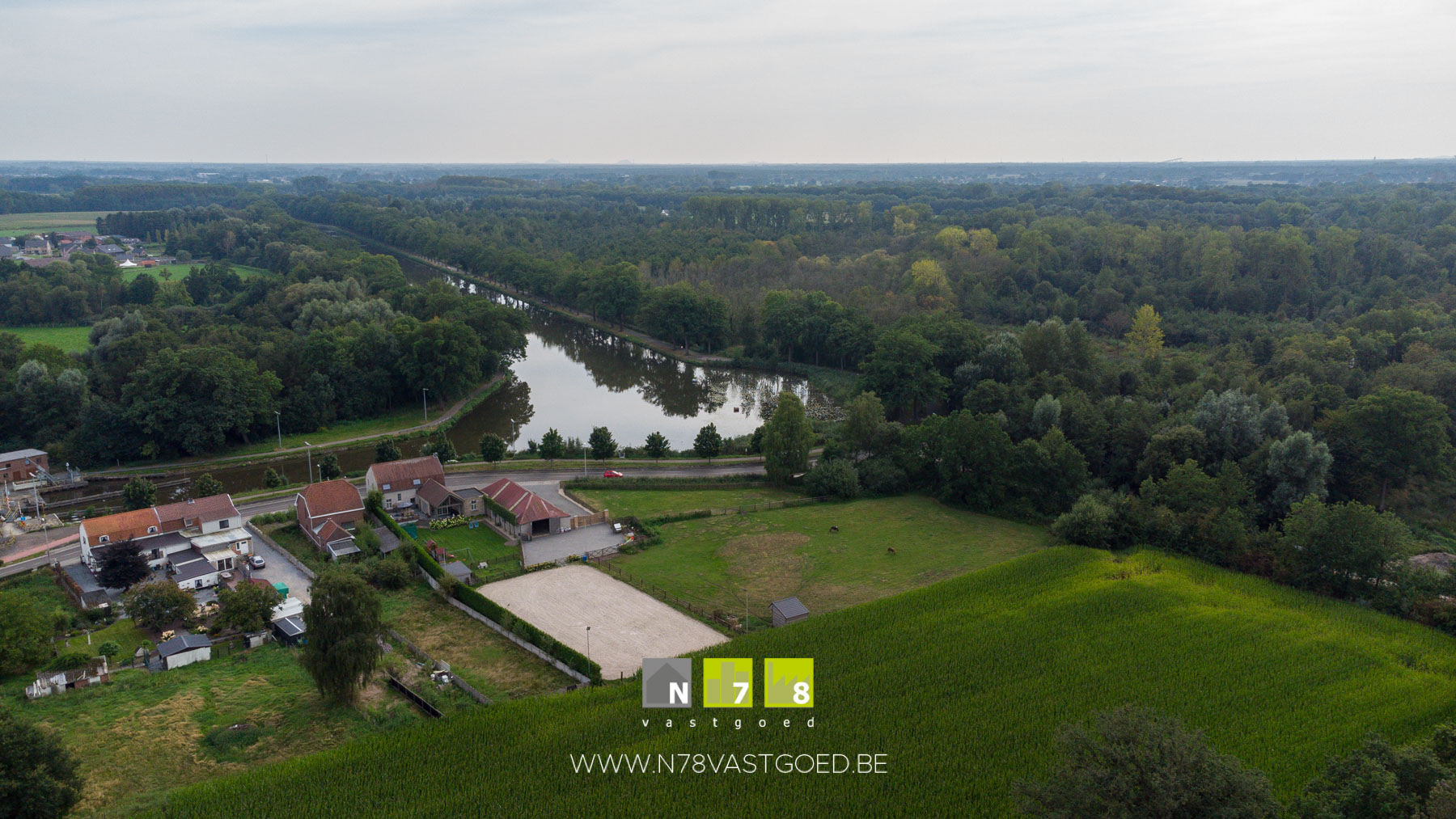 - Weilanden (paarden): voorzien van geautomatiseerde drinkbakken (2), volledig omheind, paddock (40x20m, verlicht (4 lampen) en voorzien van drainage en geopat).