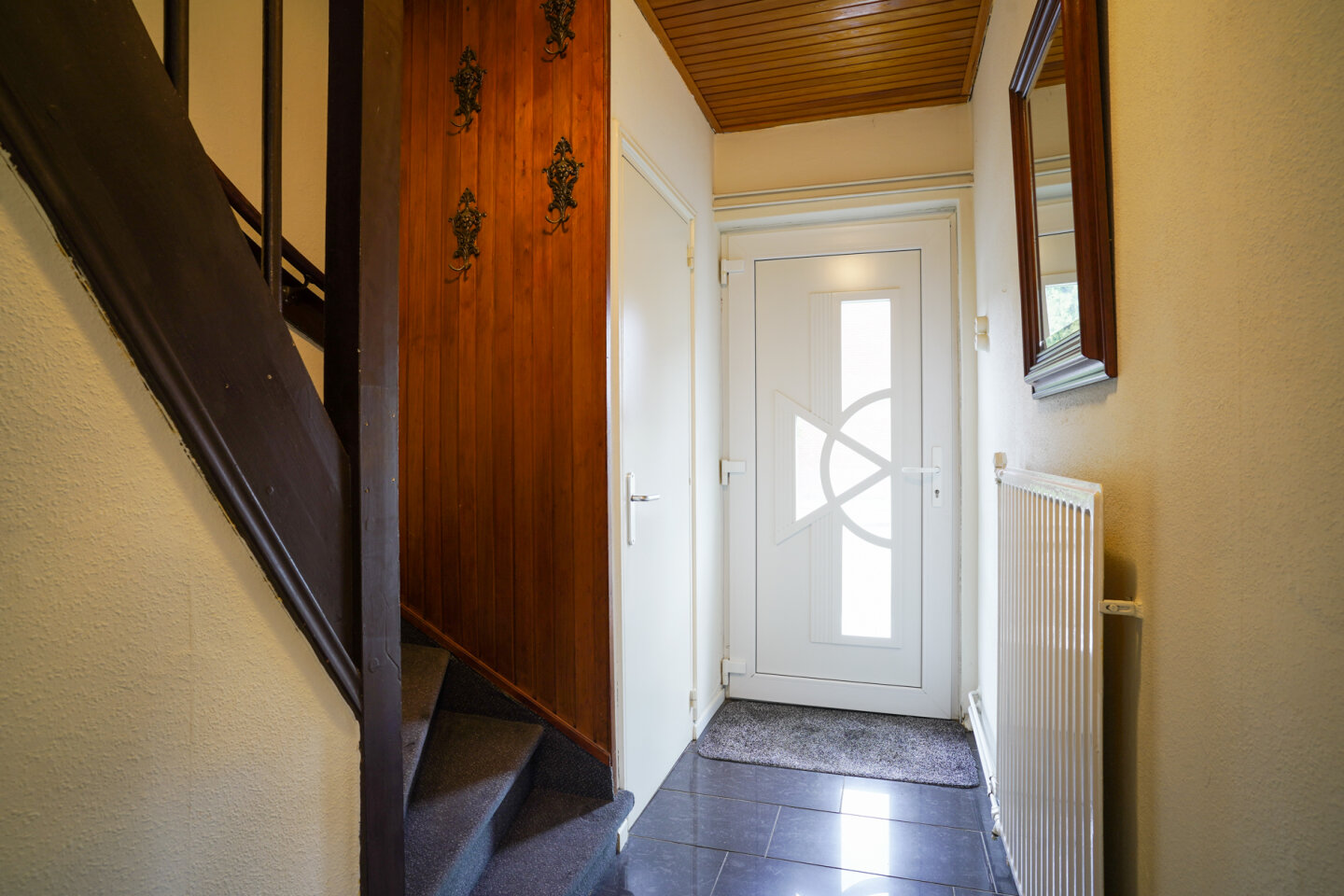Entree met trap naar de eerste verdieping, toiletruimte, meterkast en toegang tot de woonkamer.