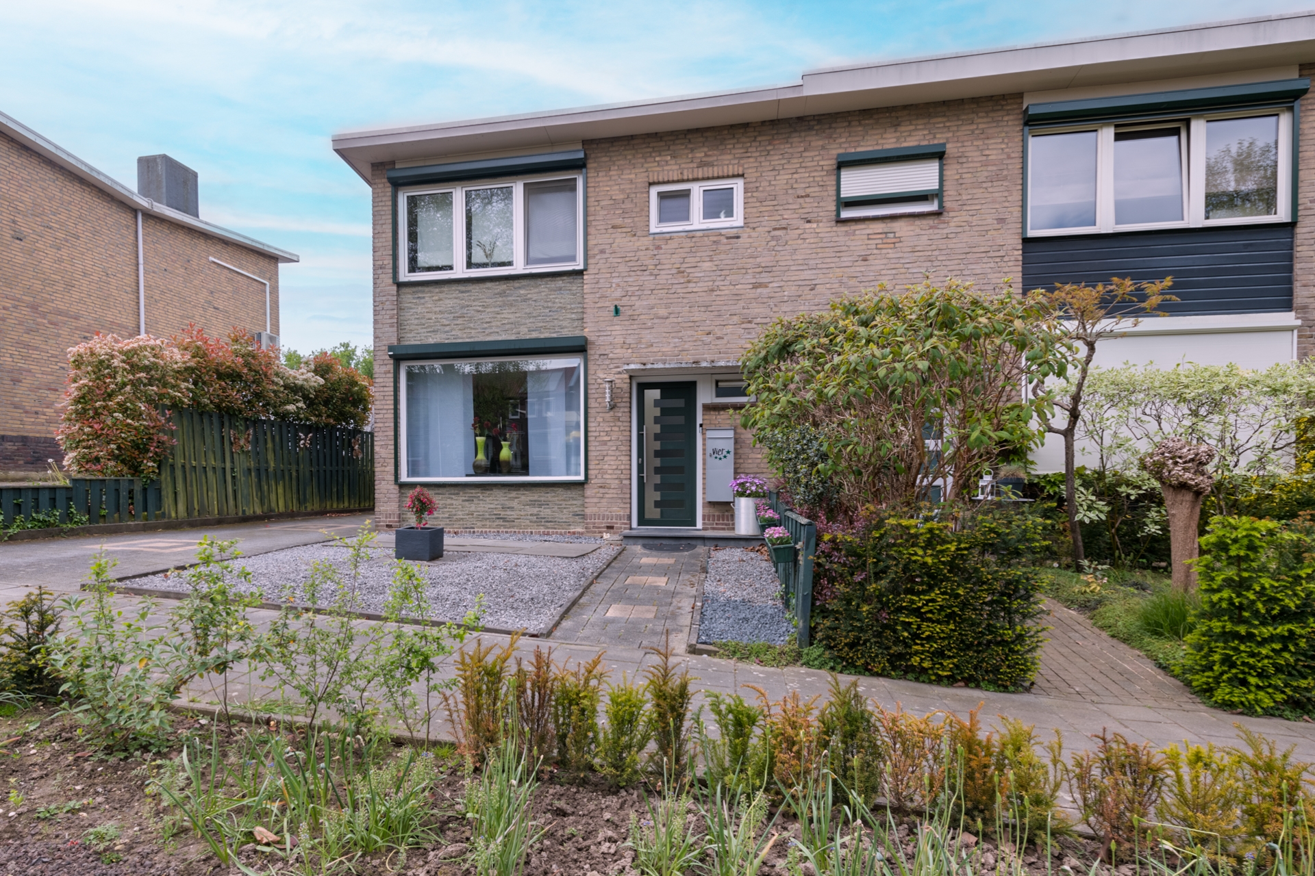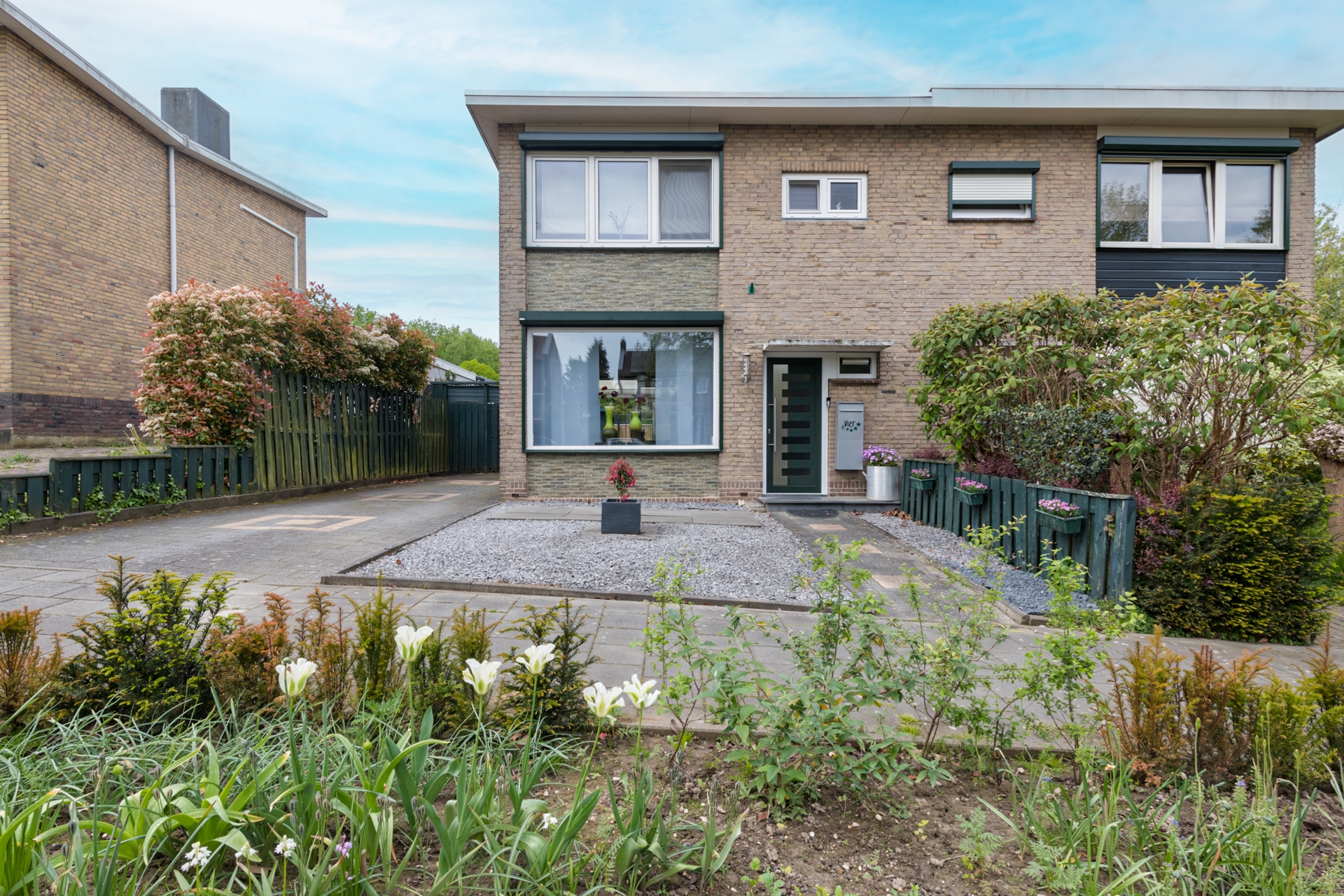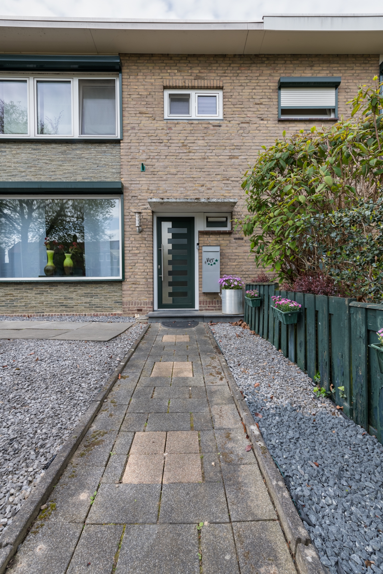 De voortuin is door de huidige bewoners ook geheel onderhoudsvrij ingericht.