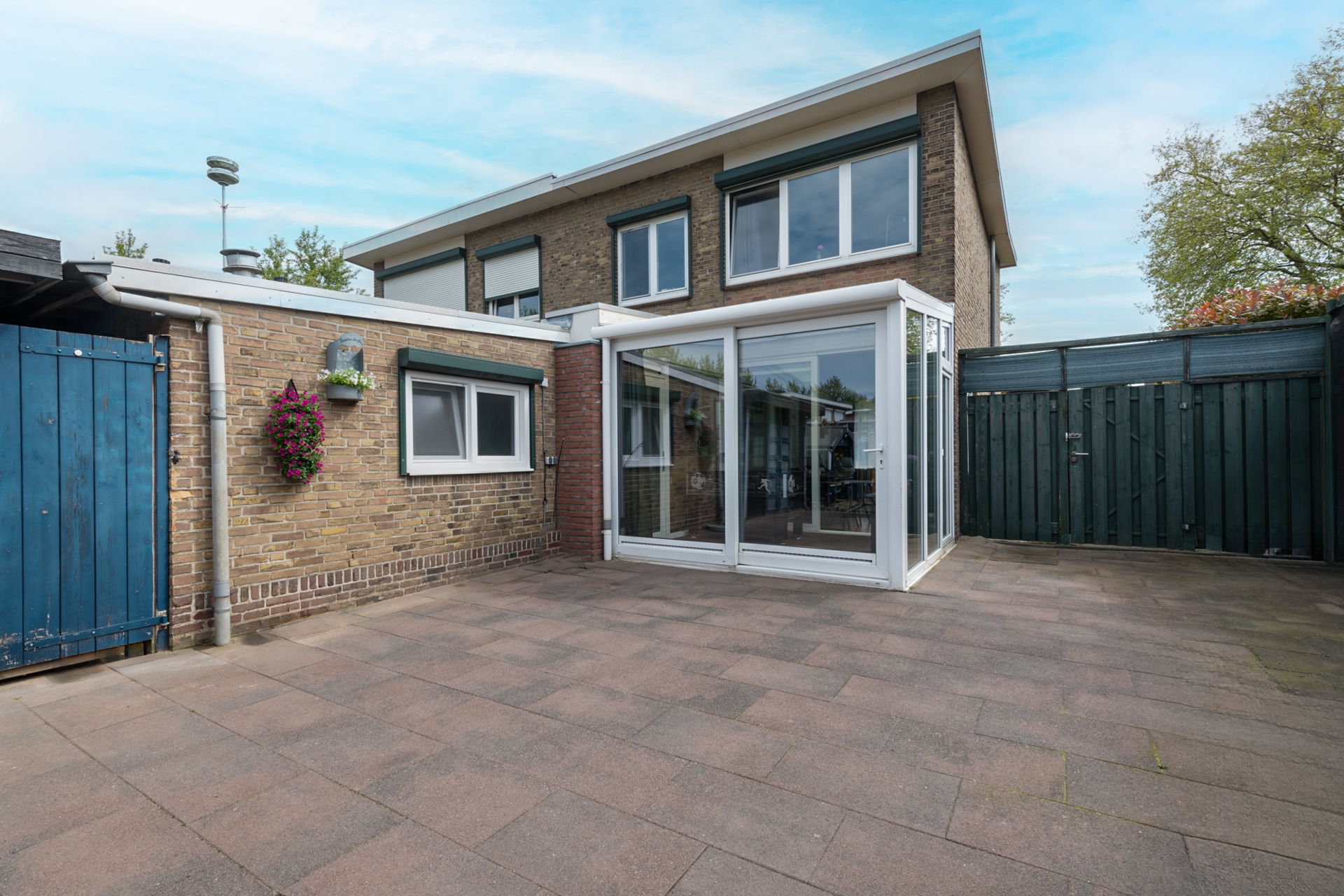 Aan de achterzijde is de lichte serre met schuifpui naar de tuin. De extra ruimte welke benut kan worden als speelkamer, maar ook kan worden ingericht als wintertuin, terras o.i.d. In ieder geval een fraaie verbinding vanuit de woonkamer naar de achtertuin.