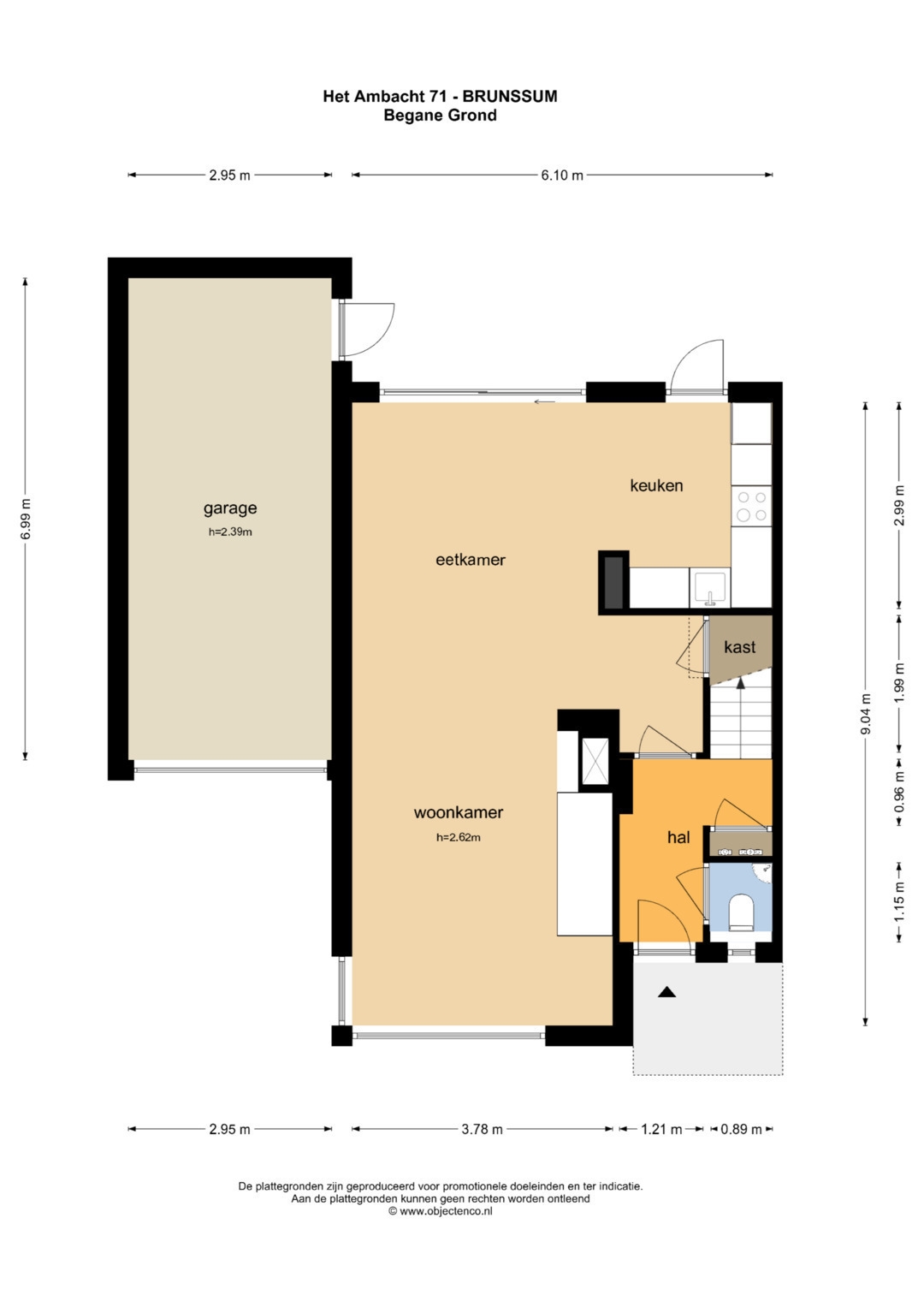 Langs deze weg komen we ook in de deels aangebouwde garage (699 x 295cm). Ruim genoeg voor zeker 1 personenauto en fietsen, scooter. Of te gebruiken als berging etc.