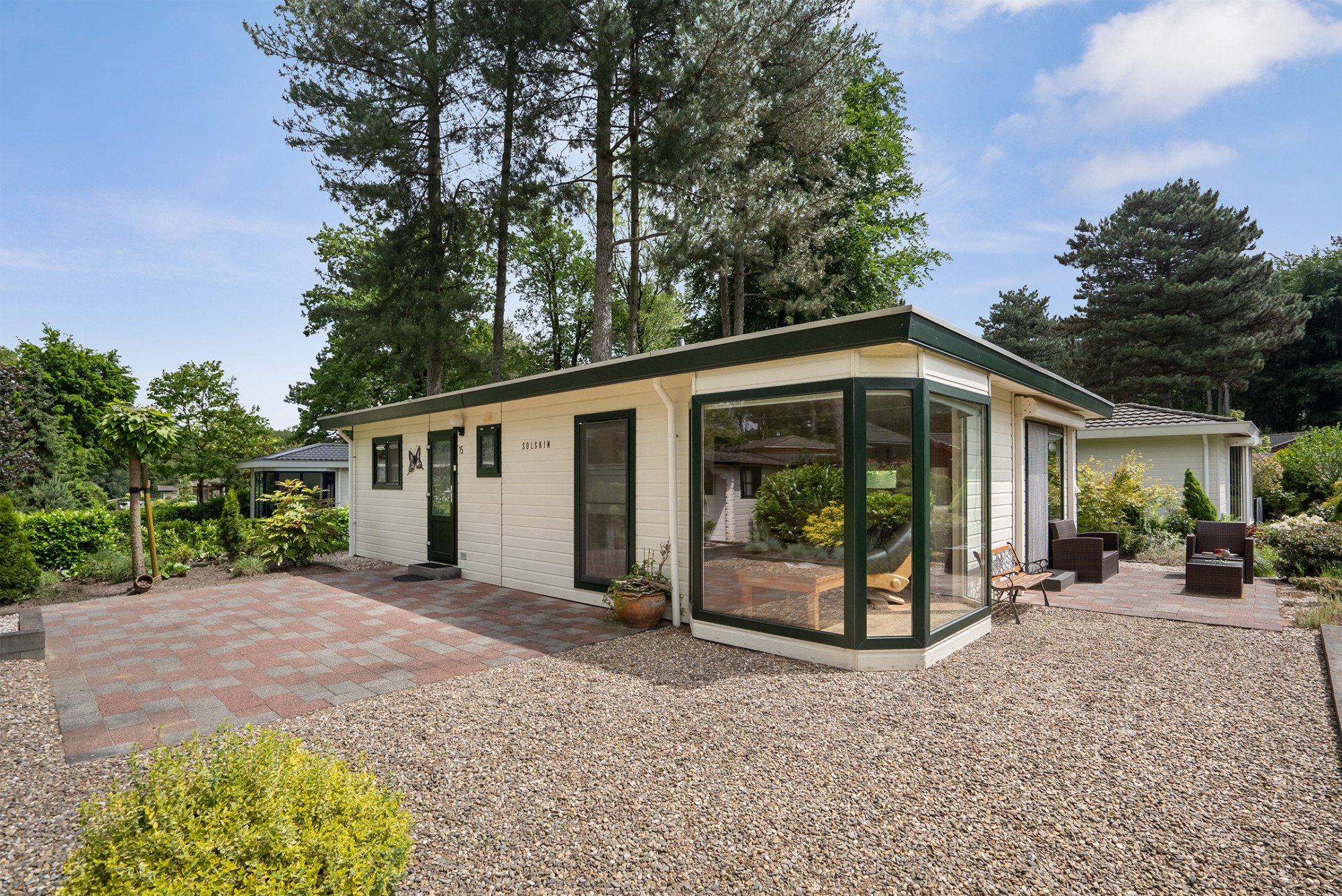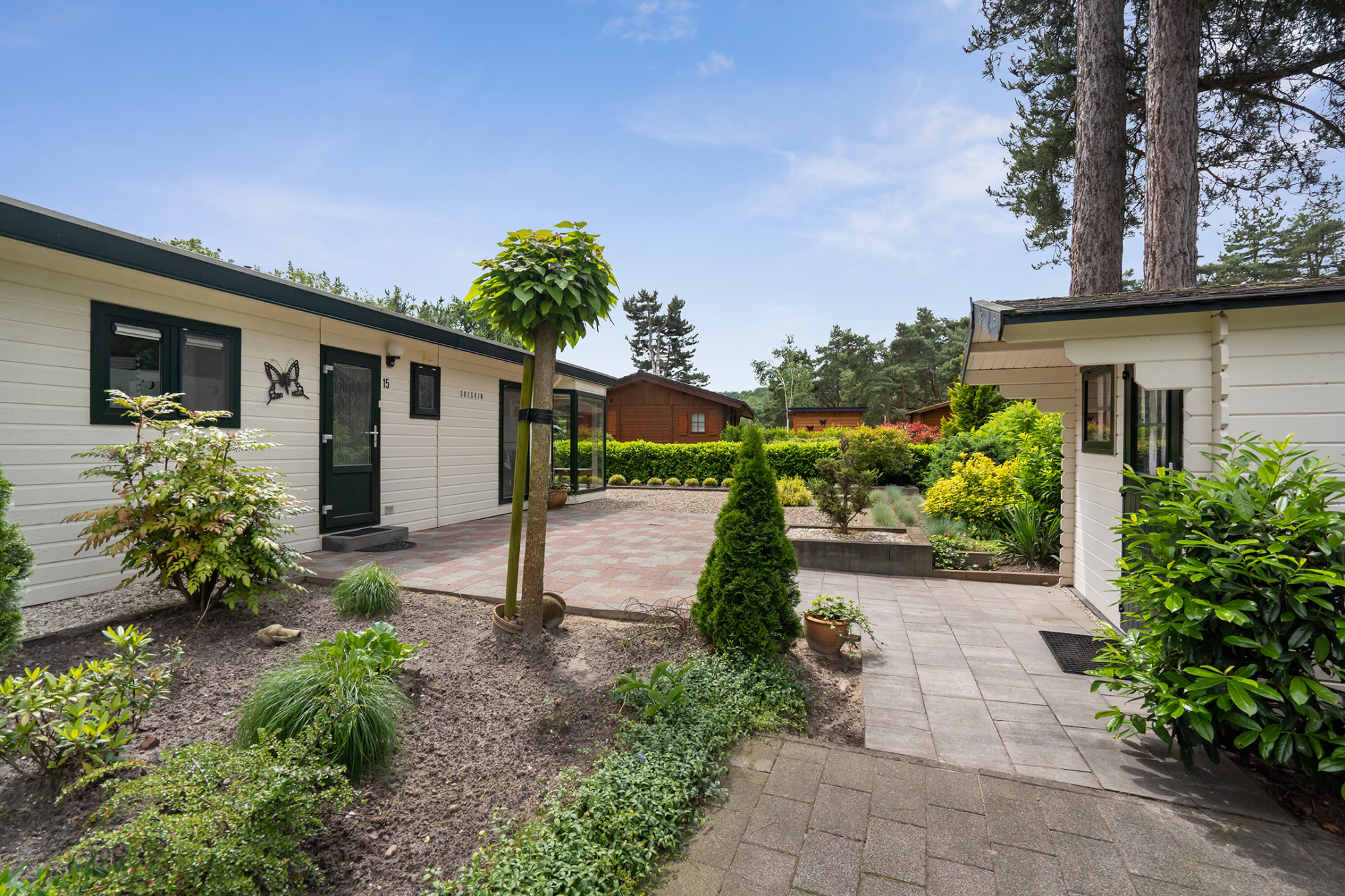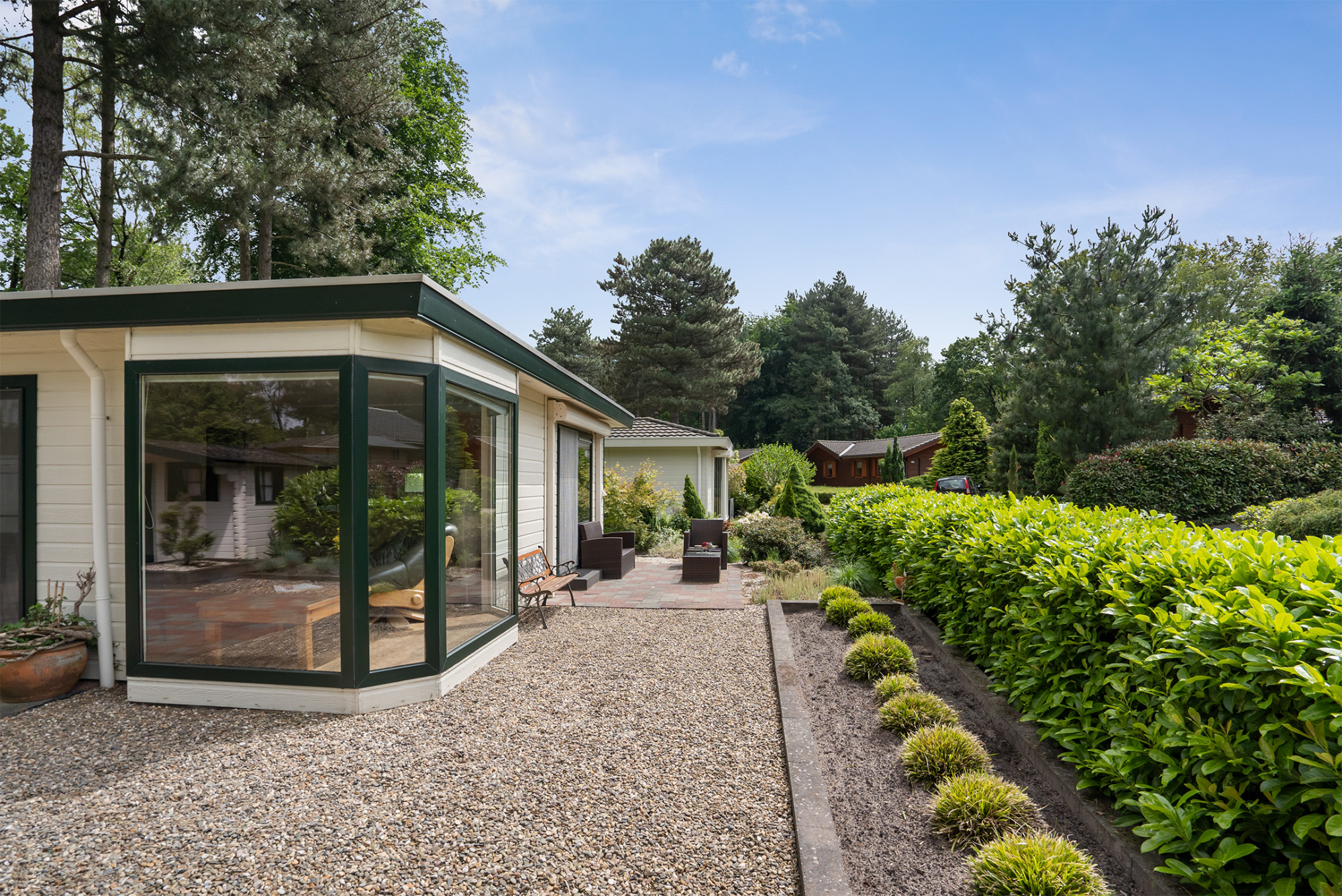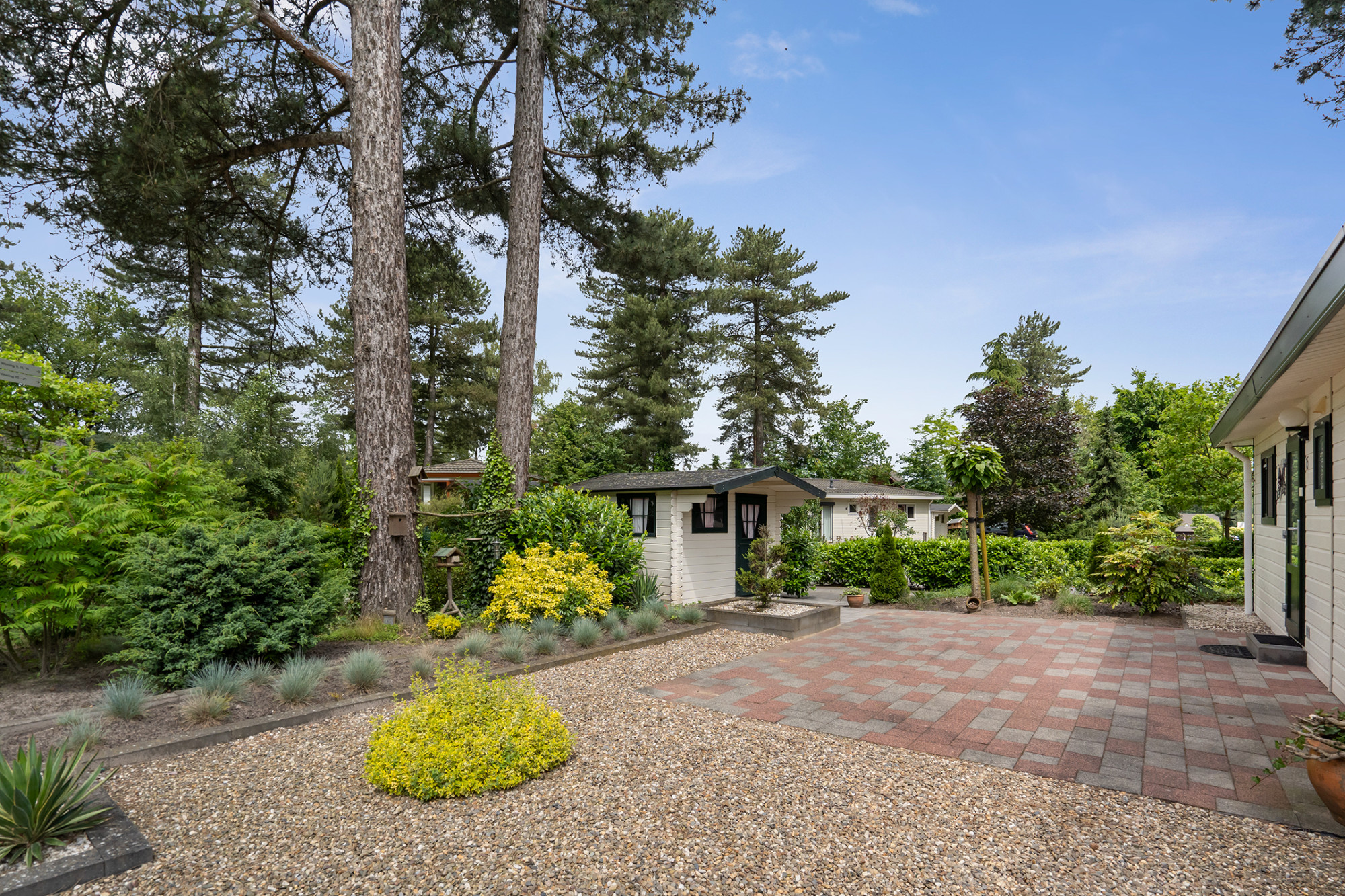 De recreatiewoning is op een groen gedeelte van het park gelegen met oog voor de rust. Daarnaast is de tuin voorzien van diverse sierbeplanting en een heerlijk terras op het zuidoosten een plek om te genieten! Daarnaast is er nog een extra buitenberging ideaal voor tuinmeubels en fietsen.