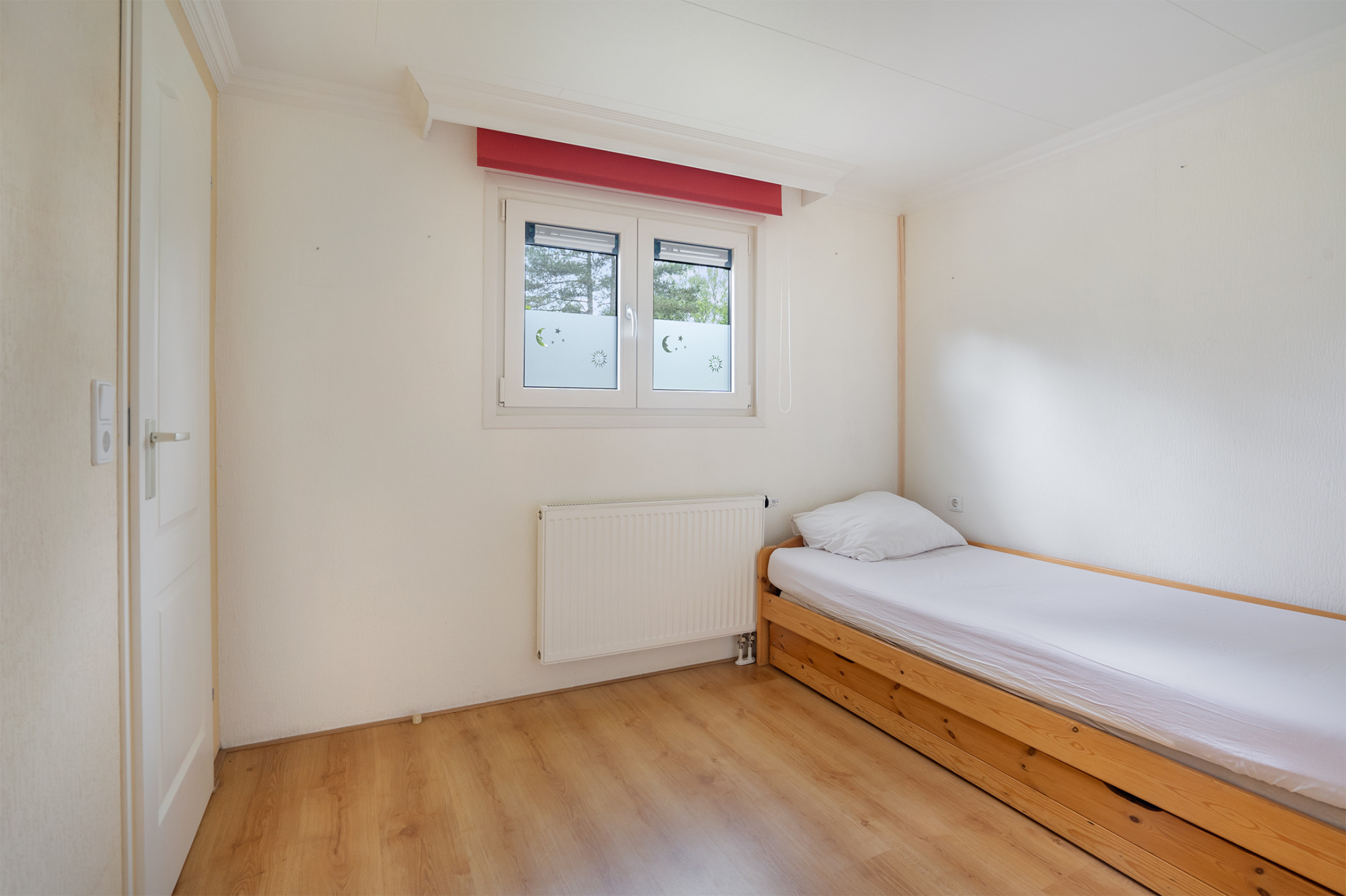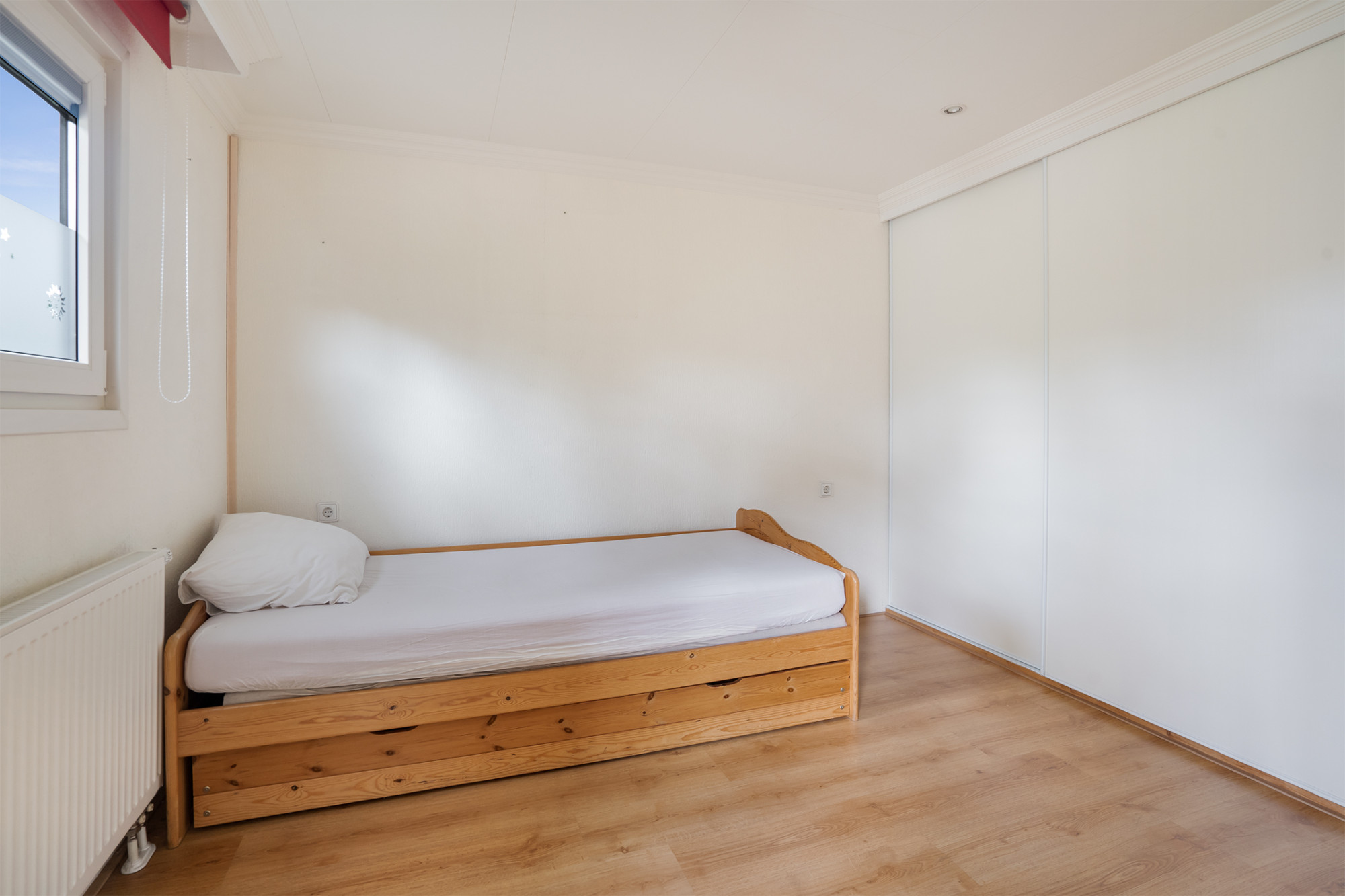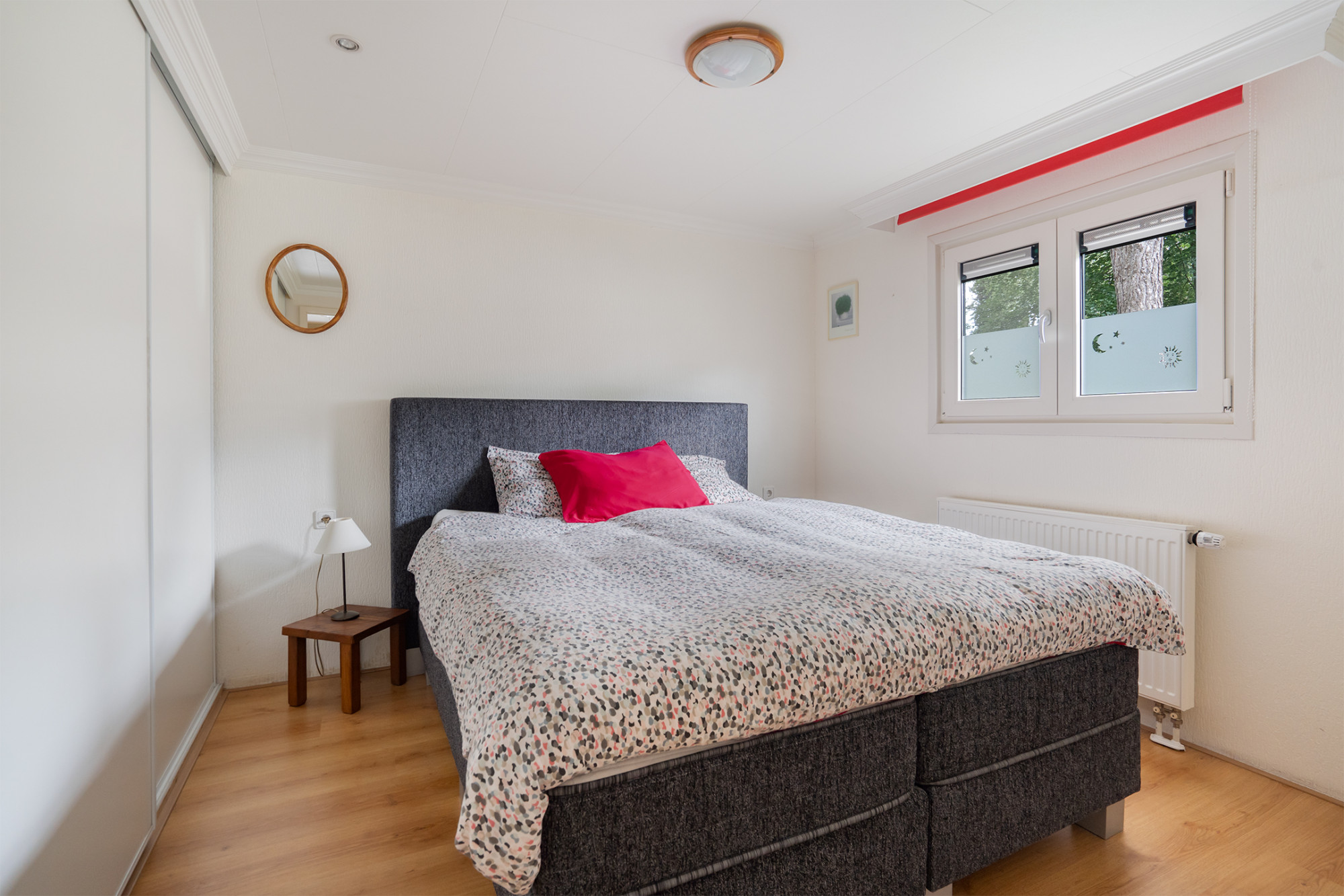 De woning beschikt over twee slaapkamers met in totaal vier slaapplekken. De hoofdslaapkamer is voorzien van een tweepersoonsbed en een vaste inbouwkast. De andere slaapkamer beschikt ook over een tweepersoonsbed.