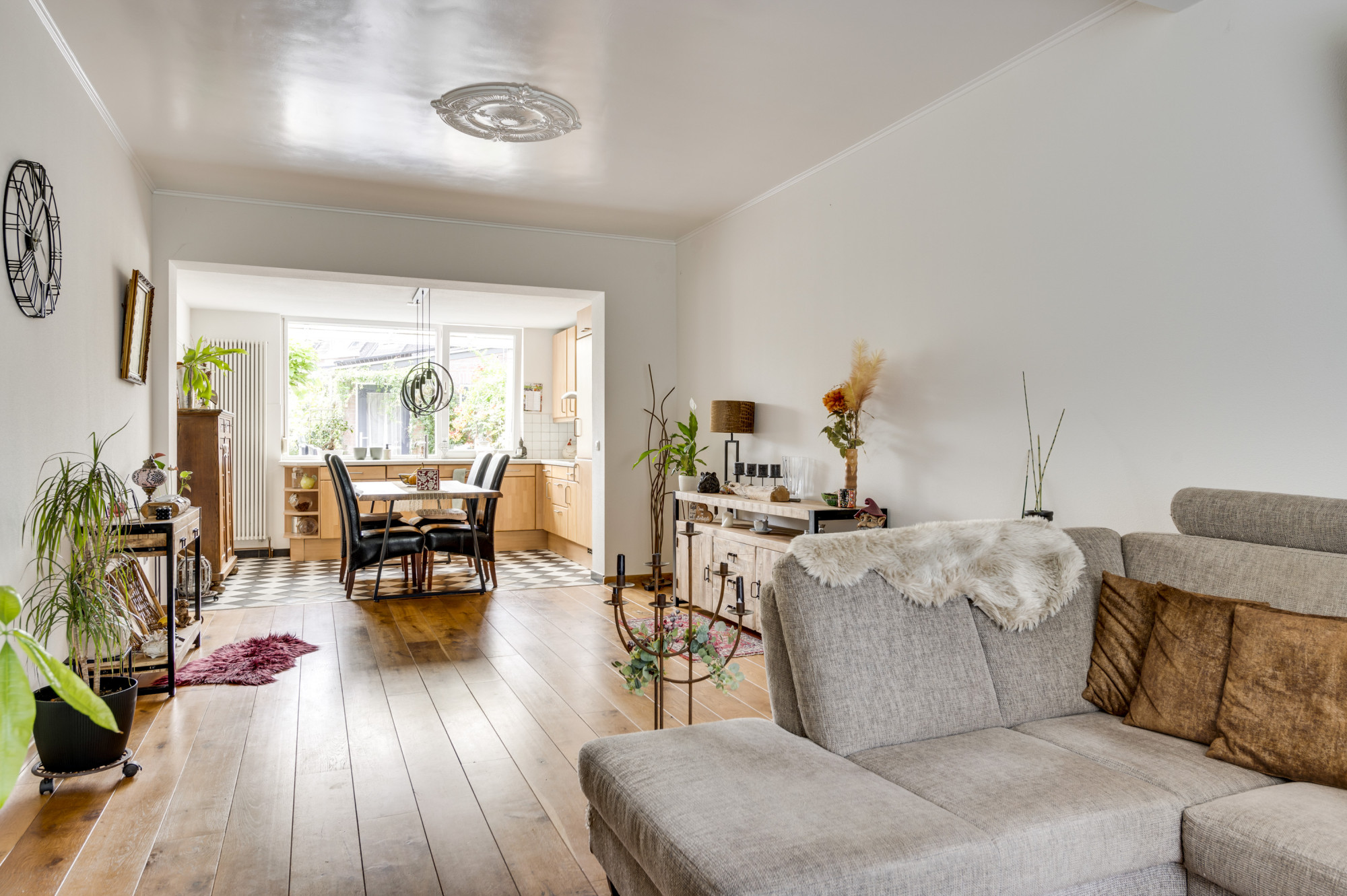 * SFEERVOLLE WOONKAMER MET EIKENHOUTENPLANKENVLOER