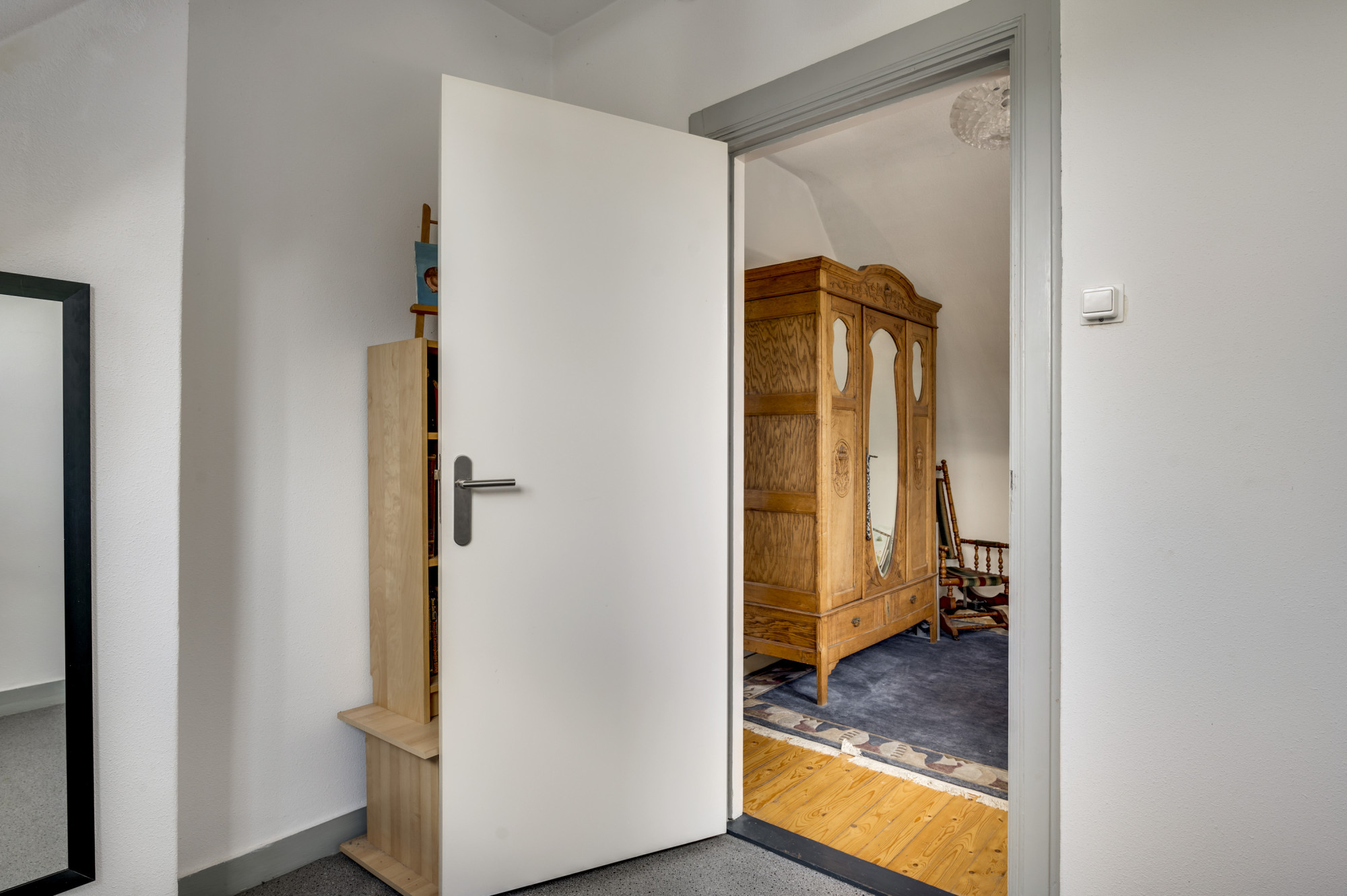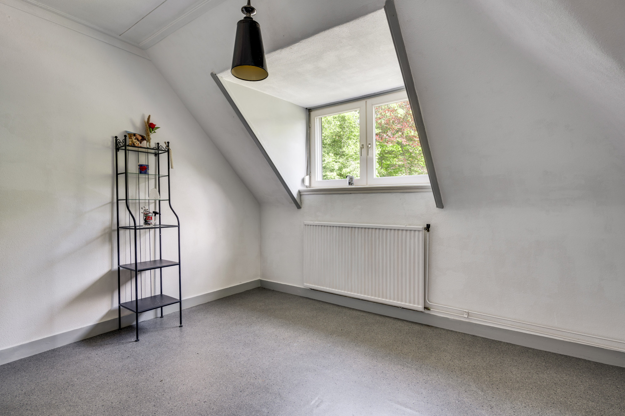Linksachter gelegen slaapkamer heeft een dakkapel.