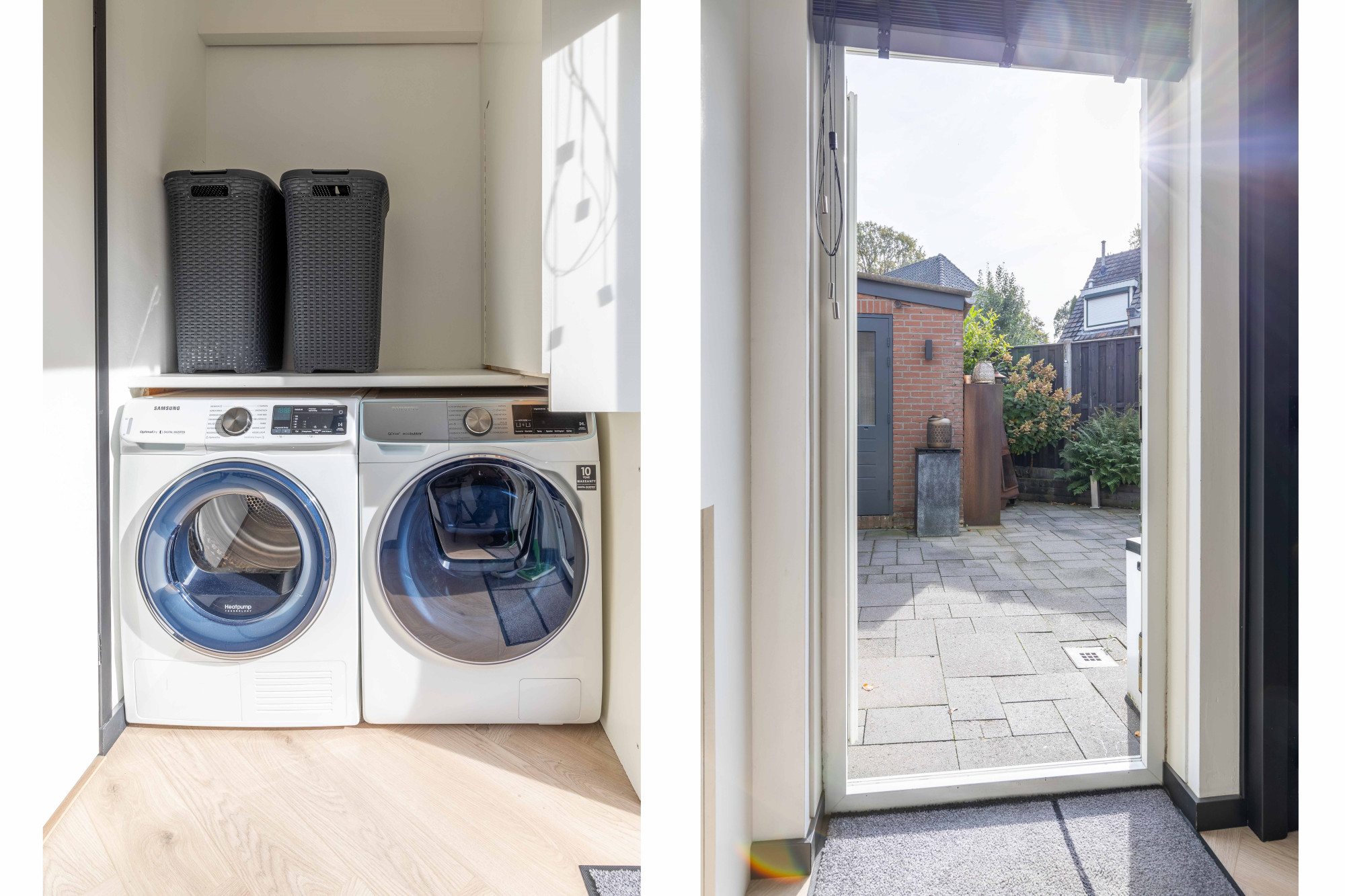 Bijkeuken met aansluitingspunten voor wasmachine en droger en standplaats C.v.-installatie (Bosch, huur) en buitendeur naar het achtergelegen terras.